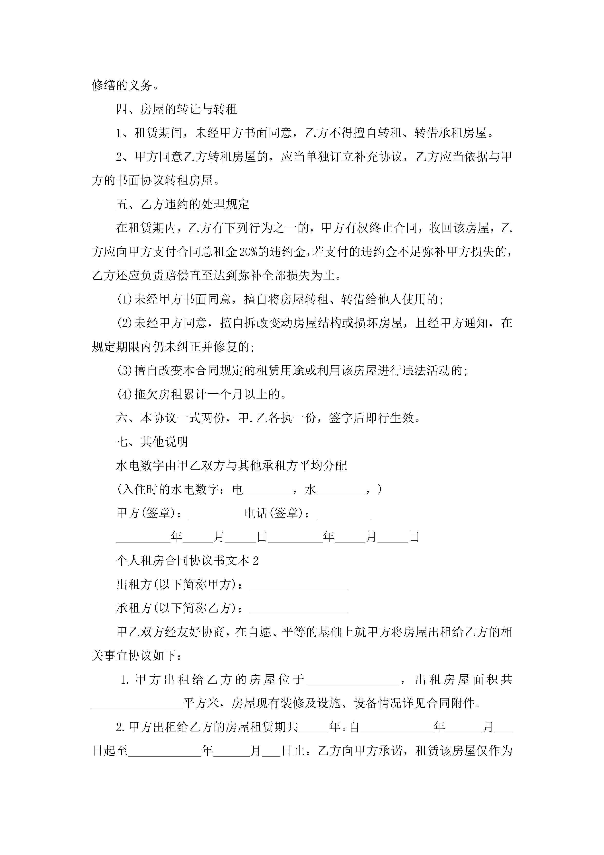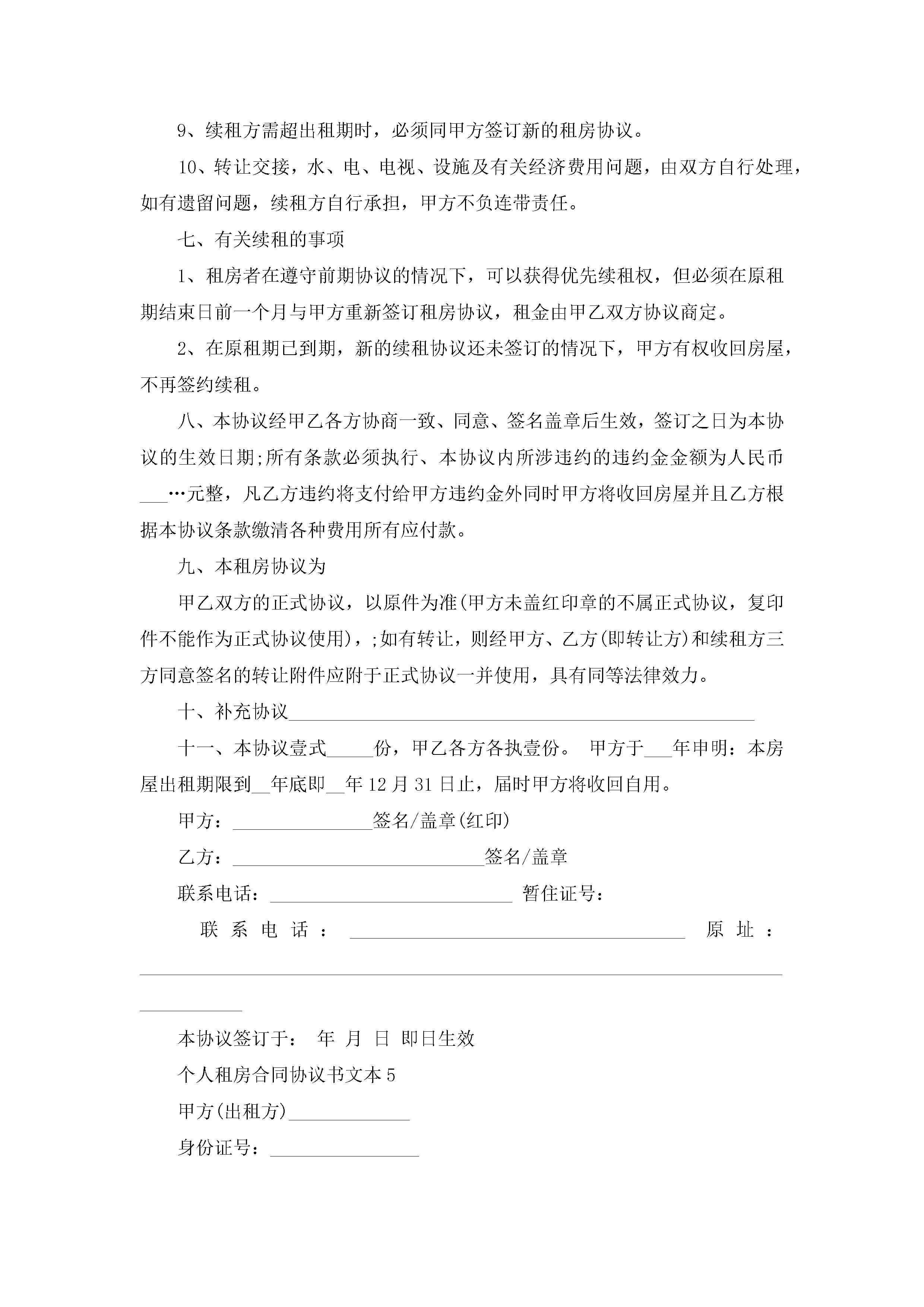 关于个人租房合同协议书文本5篇jugei3月23日 01:48发布关注263 关于个人租房合同协议书文本5篇此内容为付费资源,请付费后查看¥10.9 单篇文档限时特惠¥15个人会员开通企业会员开通立即下载无需登陆!可直接快捷下载单个模板付费资源© 版权声明THE ENDWord模板# 实用文档# 实用模板# 合同模板# 租房合同 如有问题,可点击最底部“联系我们”联系客服 分享QQ空间微博QQ好友海报分享复制链接收藏