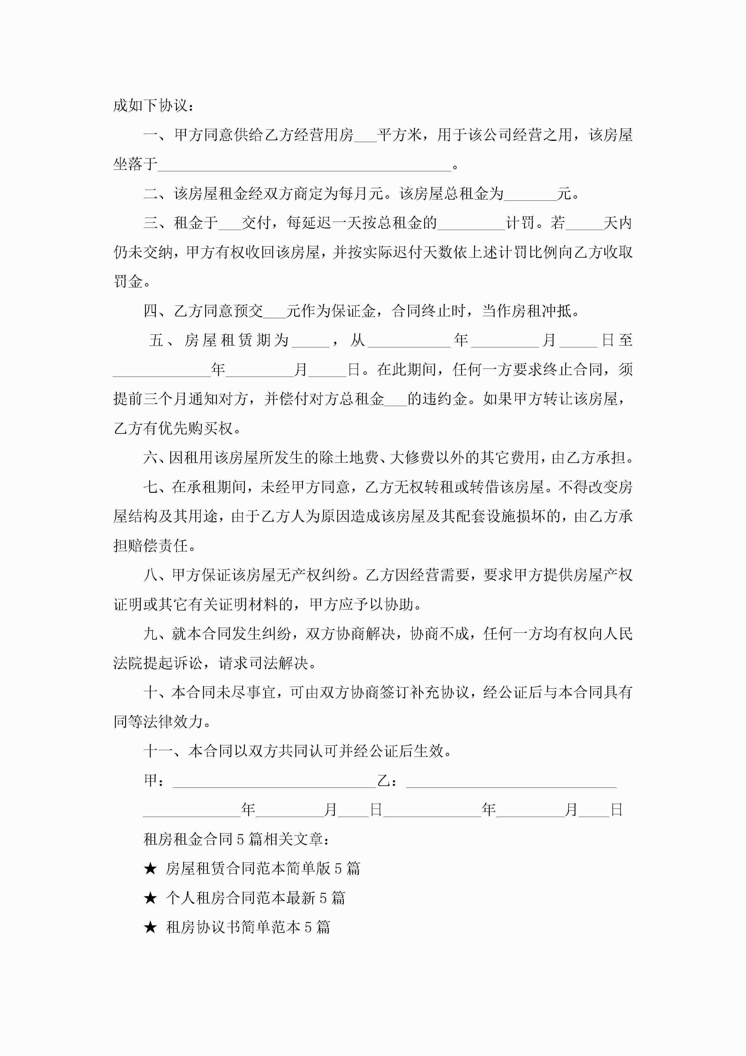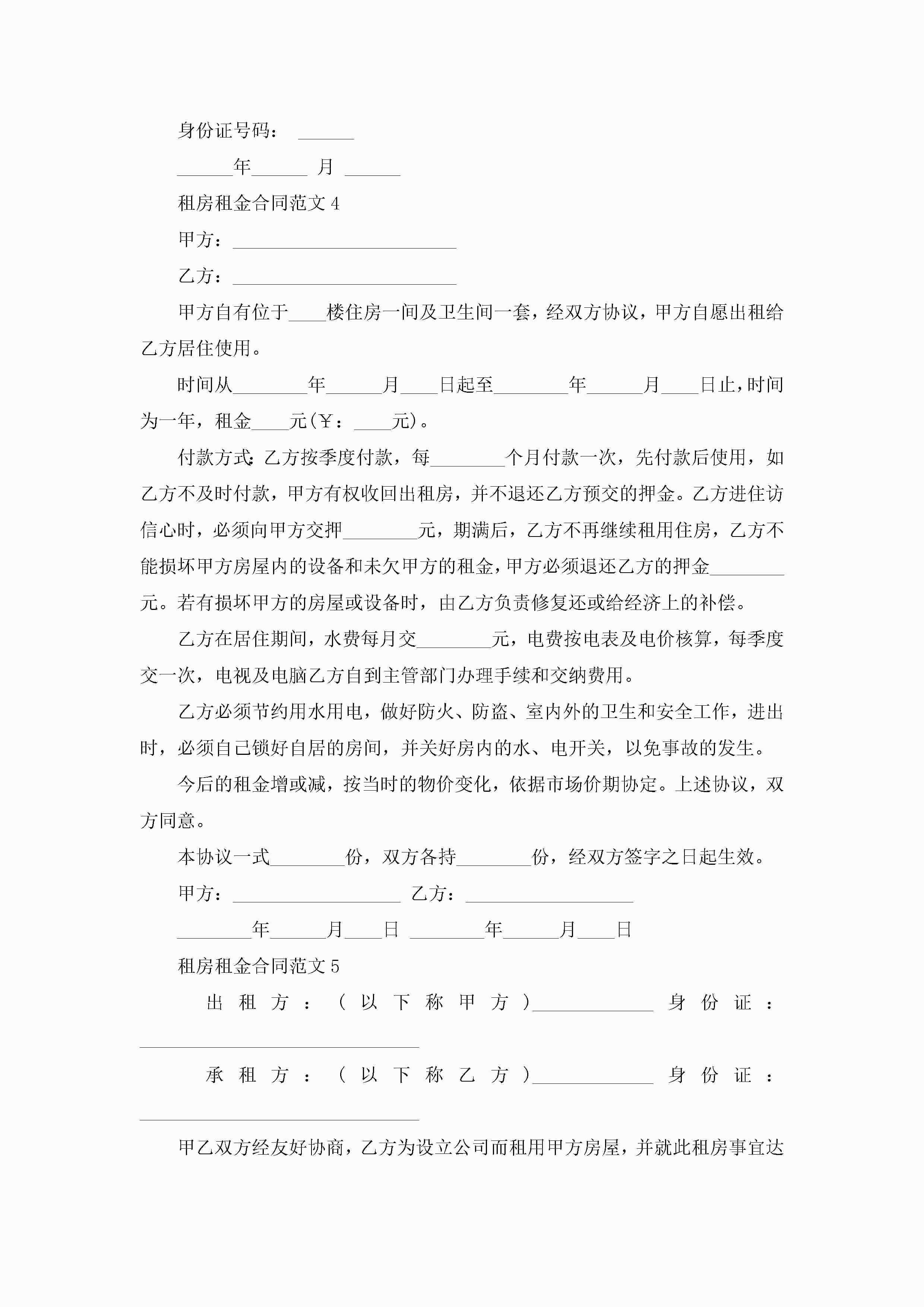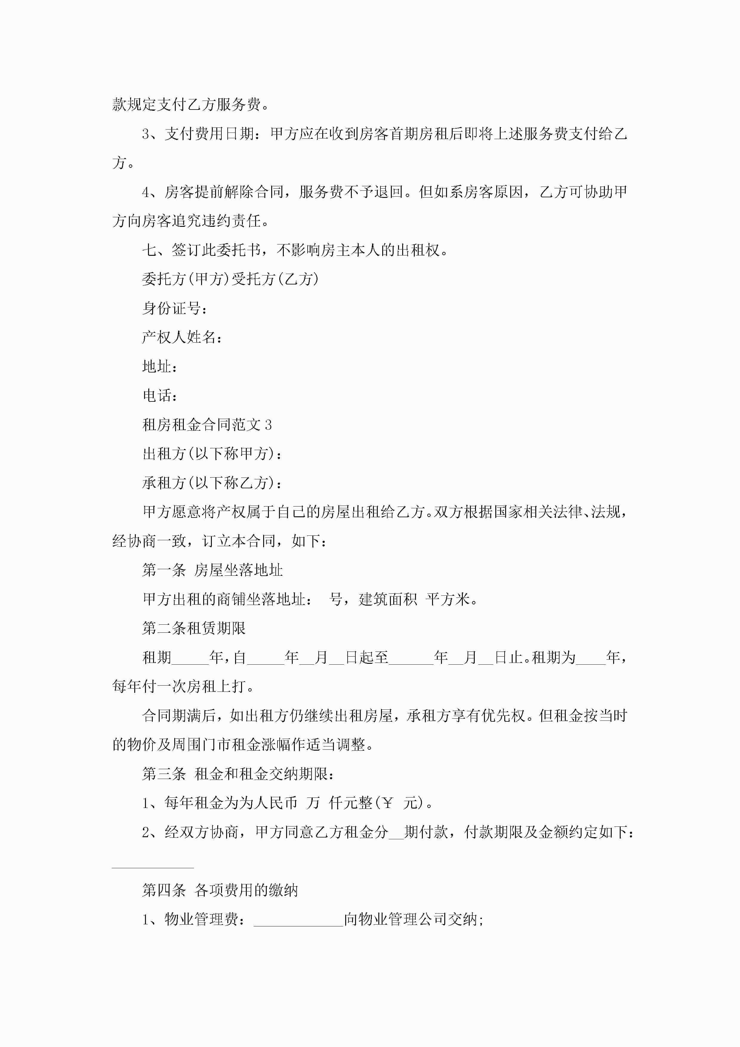 租房租金合同范文5篇jugei3月23日 01:48发布关注214 租房租金合同范文5篇此内容为付费资源,请付费后查看¥10.9 单篇文档限时特惠¥15个人会员开通企业会员开通立即下载无需登陆!可直接快捷下载单个模板付费资源© 版权声明THE ENDWord模板# 实用文档# 实用模板# 合同模板# 租房合同 如有问题,可点击最底部“联系我们”联系客服 分享QQ空间微博QQ好友海报分享复制链接收藏