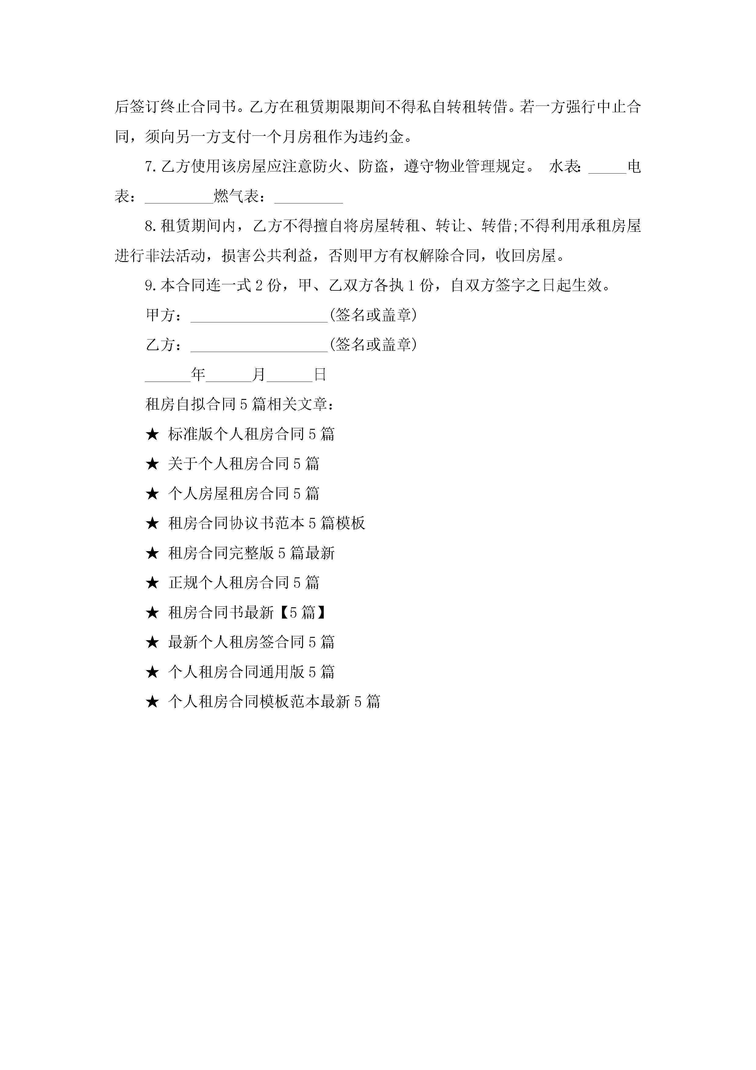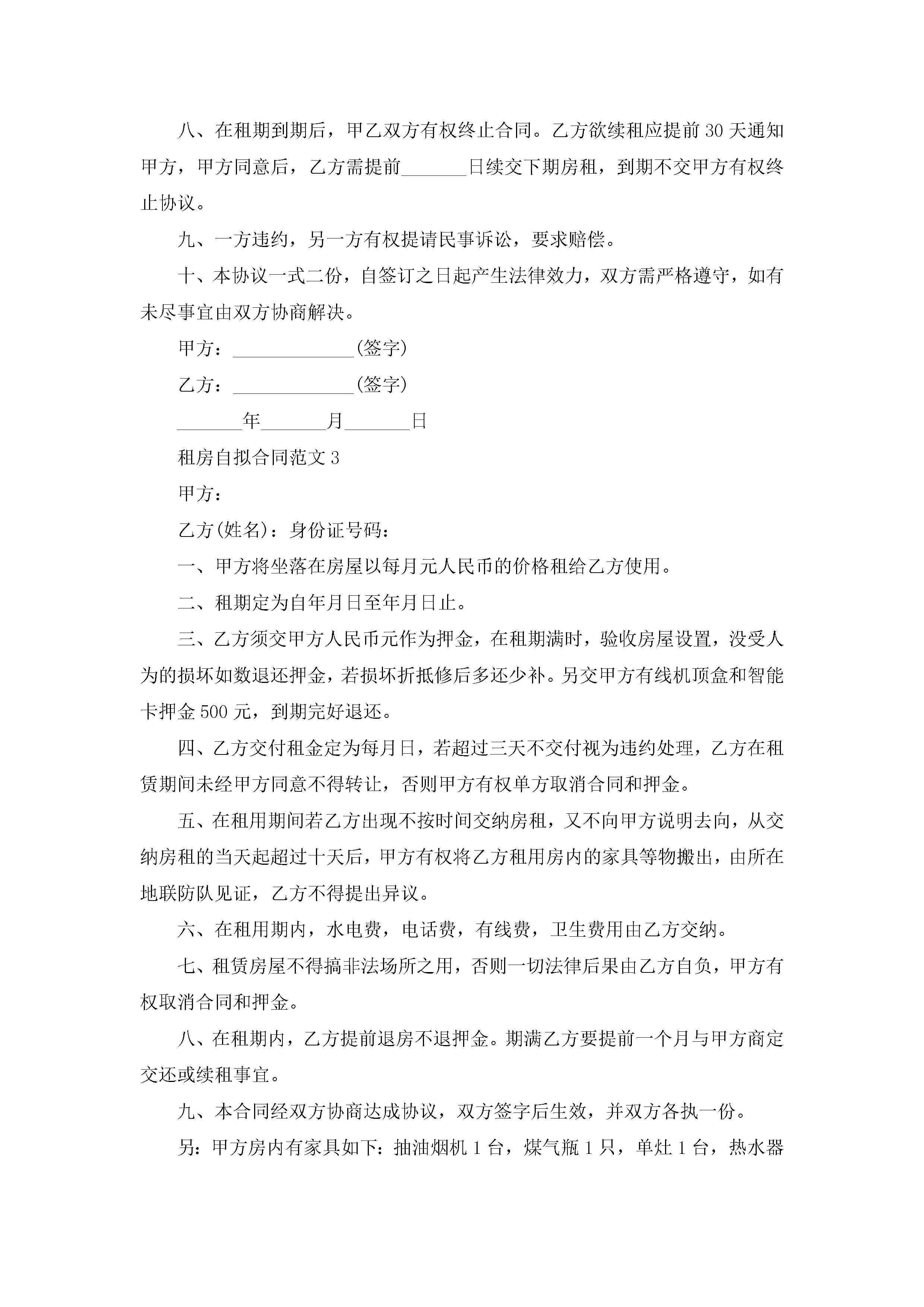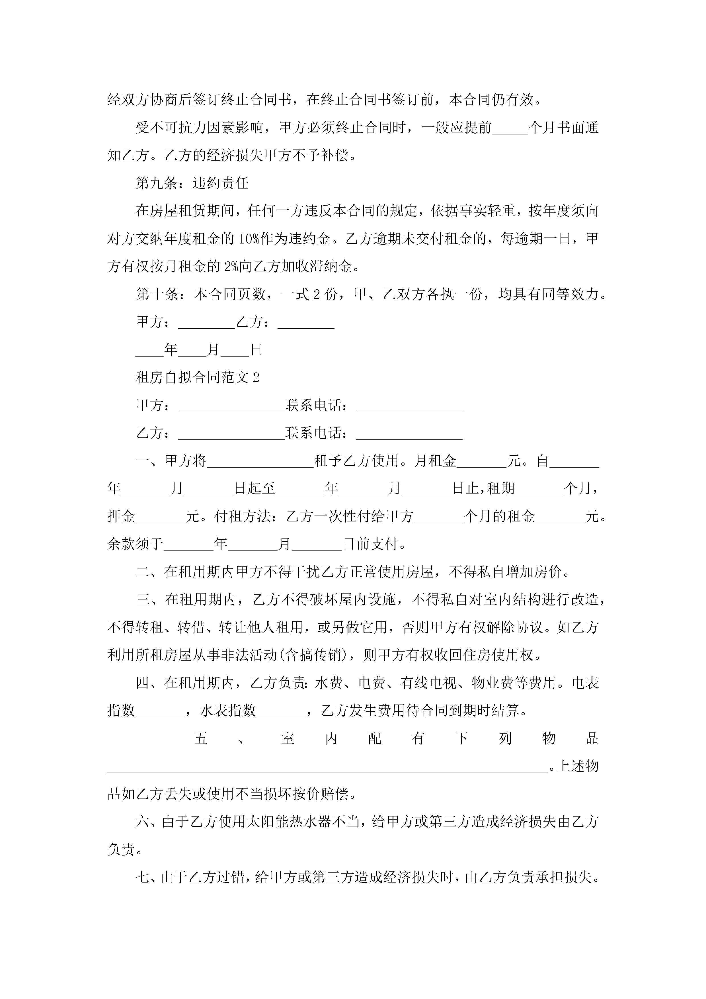 租房自拟合同范文5篇jugei3月23日 01:48发布关注224 租房自拟合同范文5篇此内容为付费资源,请付费后查看¥10.9 单篇文档限时特惠¥15个人会员开通企业会员开通立即下载无需登陆!可直接快捷下载单个模板付费资源© 版权声明THE ENDWord模板# 实用文档# 实用模板# 合同模板# 租房合同 如有问题,可点击最底部“联系我们”联系客服 分享QQ空间微博QQ好友海报分享复制链接收藏