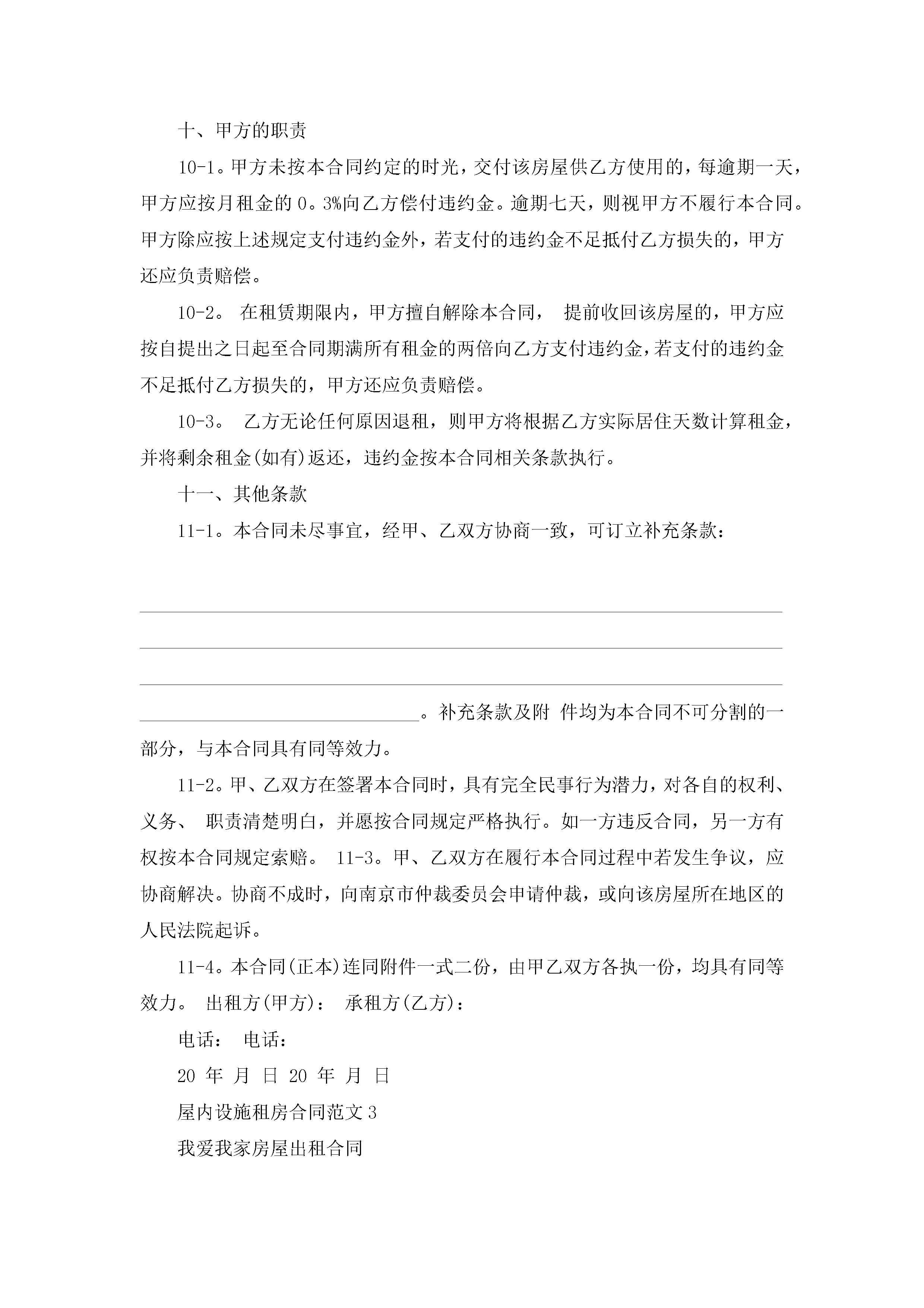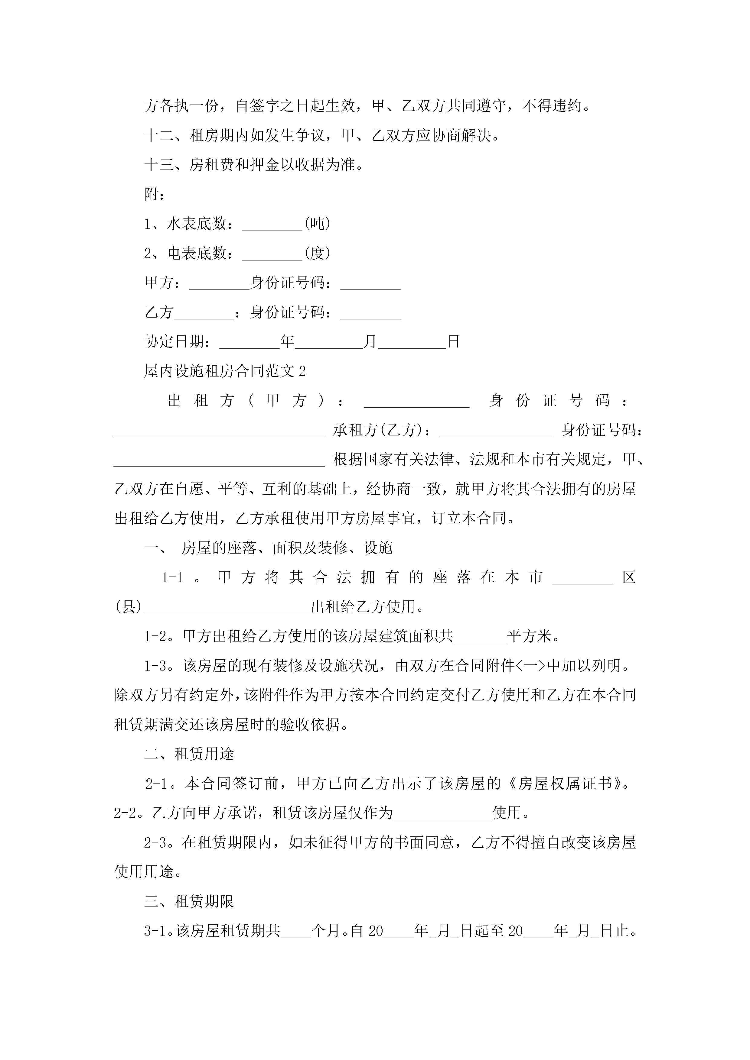 屋内设施租房合同范文5篇jugei3月23日 01:48发布关注226 屋内设施租房合同范文5篇此内容为付费资源,请付费后查看¥10.9 单篇文档限时特惠¥15个人会员开通企业会员开通立即下载无需登陆!可直接快捷下载单个模板付费资源© 版权声明THE ENDWord模板# 实用文档# 实用模板# 合同模板# 租房合同 如有问题,可点击最底部“联系我们”联系客服 分享QQ空间微博QQ好友海报分享复制链接收藏
