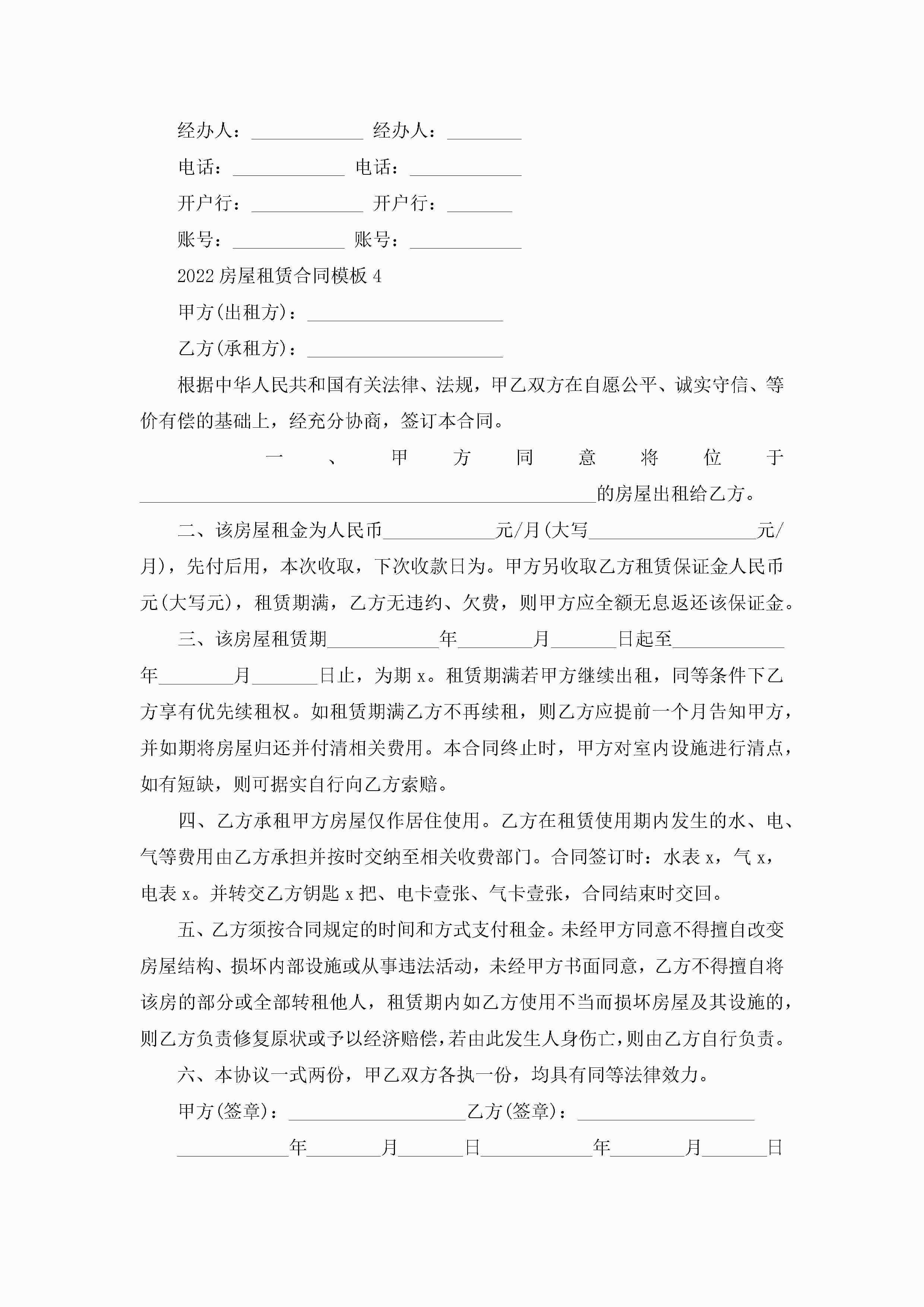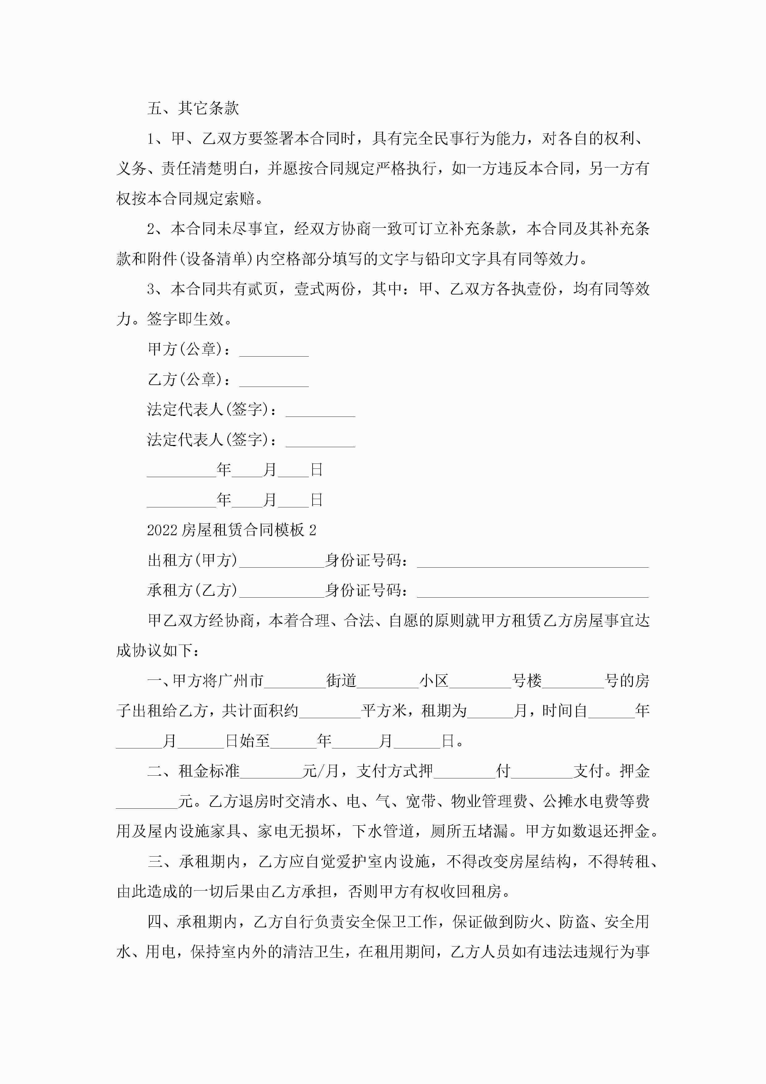 2022房屋租赁合同模板(精选12篇)jugei3月23日 01:48发布关注186 2022房屋租赁合同模板(精选12篇)此内容为付费资源,请付费后查看¥10.9 单篇文档限时特惠¥15个人会员开通企业会员开通立即下载无需登陆!可直接快捷下载单个模板付费资源© 版权声明THE ENDWord模板# 实用文档# 实用模板# 合同模板# 租房合同 如有问题,可点击最底部“联系我们”联系客服 分享QQ空间微博QQ好友海报分享复制链接收藏