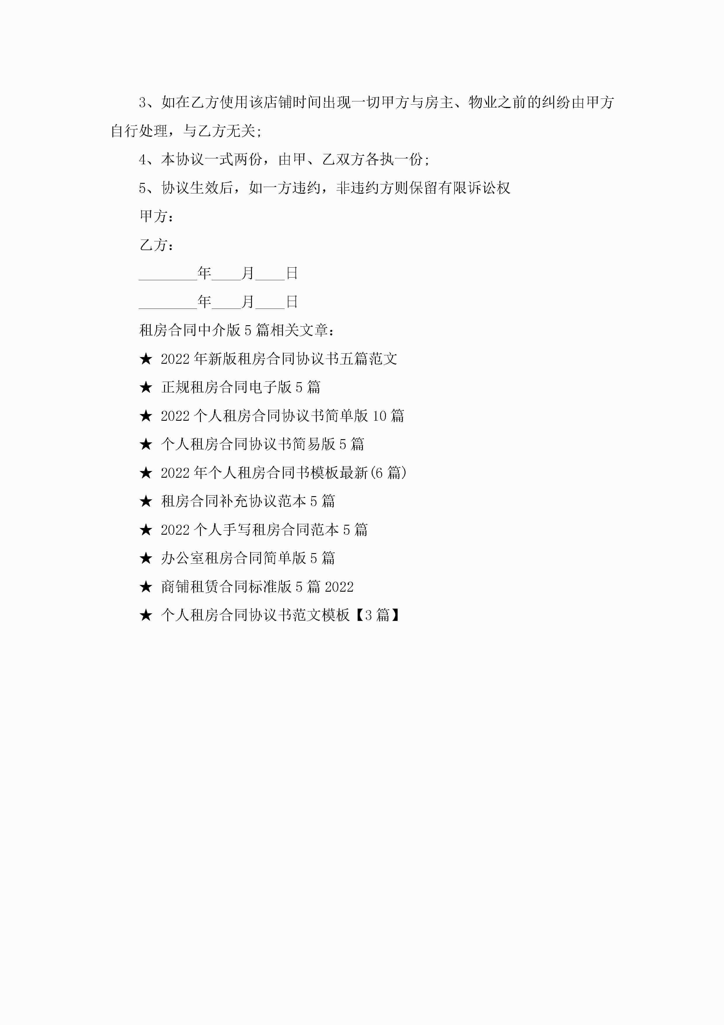 租房合同中介版范文范文5篇jugei3月23日 01:48发布关注233 租房合同中介版范文范文5篇此内容为付费资源,请付费后查看¥10.9 单篇文档限时特惠¥15个人会员开通企业会员开通立即下载无需登陆!可直接快捷下载单个模板付费资源© 版权声明THE ENDWord模板# 实用文档# 实用模板# 合同模板# 租房合同 如有问题,可点击最底部“联系我们”联系客服 分享QQ空间微博QQ好友海报分享复制链接收藏