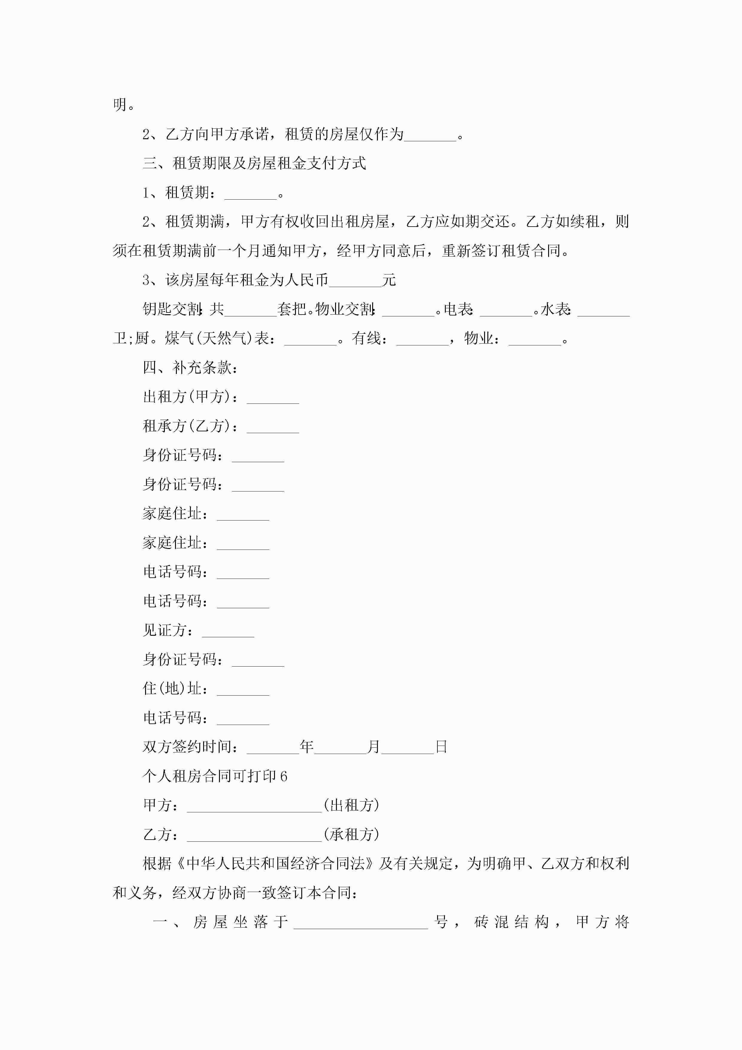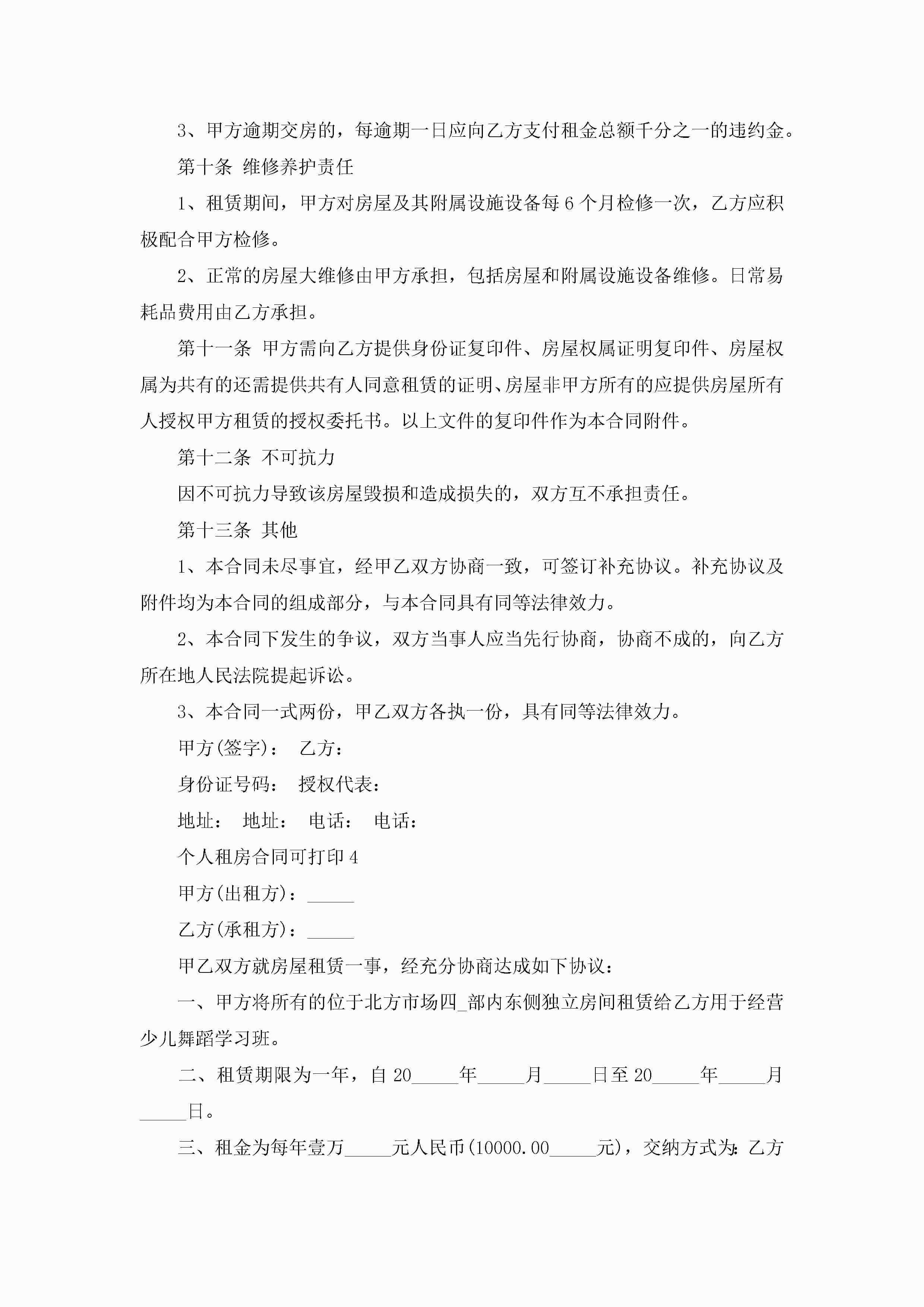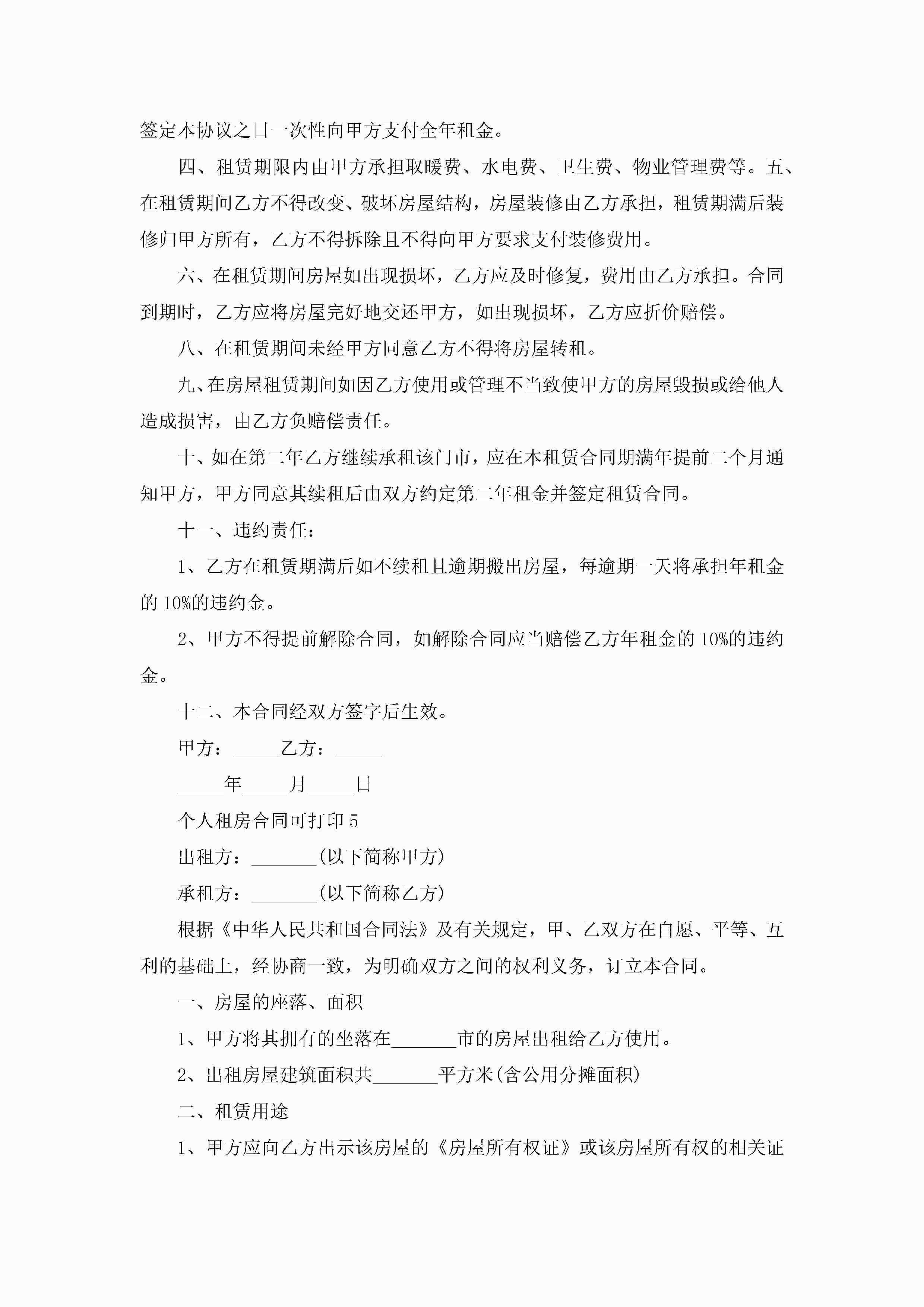 个人租房合同可打印(8篇)jugei3月23日 01:48发布关注190 个人租房合同可打印(8篇)此内容为付费资源,请付费后查看¥10.9 单篇文档限时特惠¥15个人会员开通企业会员开通立即下载无需登陆!可直接快捷下载单个模板付费资源© 版权声明THE ENDWord模板# 实用文档# 实用模板# 合同模板# 租房合同 如有问题,可点击最底部“联系我们”联系客服 分享QQ空间微博QQ好友海报分享复制链接收藏