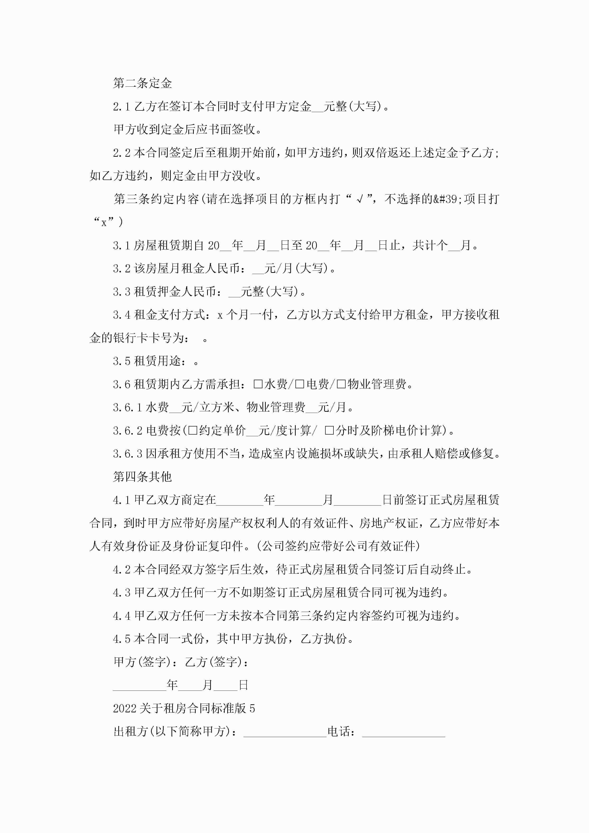 2022关于租房合同标准版5篇jugei3月23日 01:48发布关注236 2022关于租房合同标准版5篇此内容为付费资源,请付费后查看¥10.9 单篇文档限时特惠¥15个人会员开通企业会员开通立即下载无需登陆!可直接快捷下载单个模板付费资源© 版权声明THE ENDWord模板# 实用文档# 实用模板# 合同模板# 租房合同 如有问题,可点击最底部“联系我们”联系客服 分享QQ空间微博QQ好友海报分享复制链接收藏