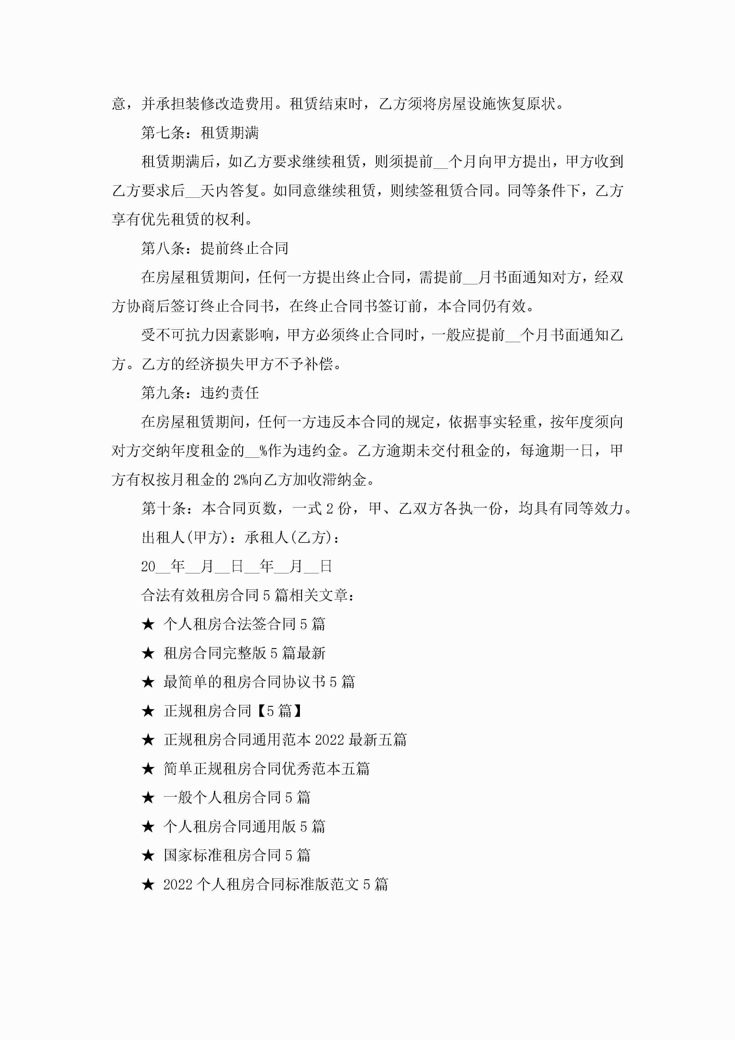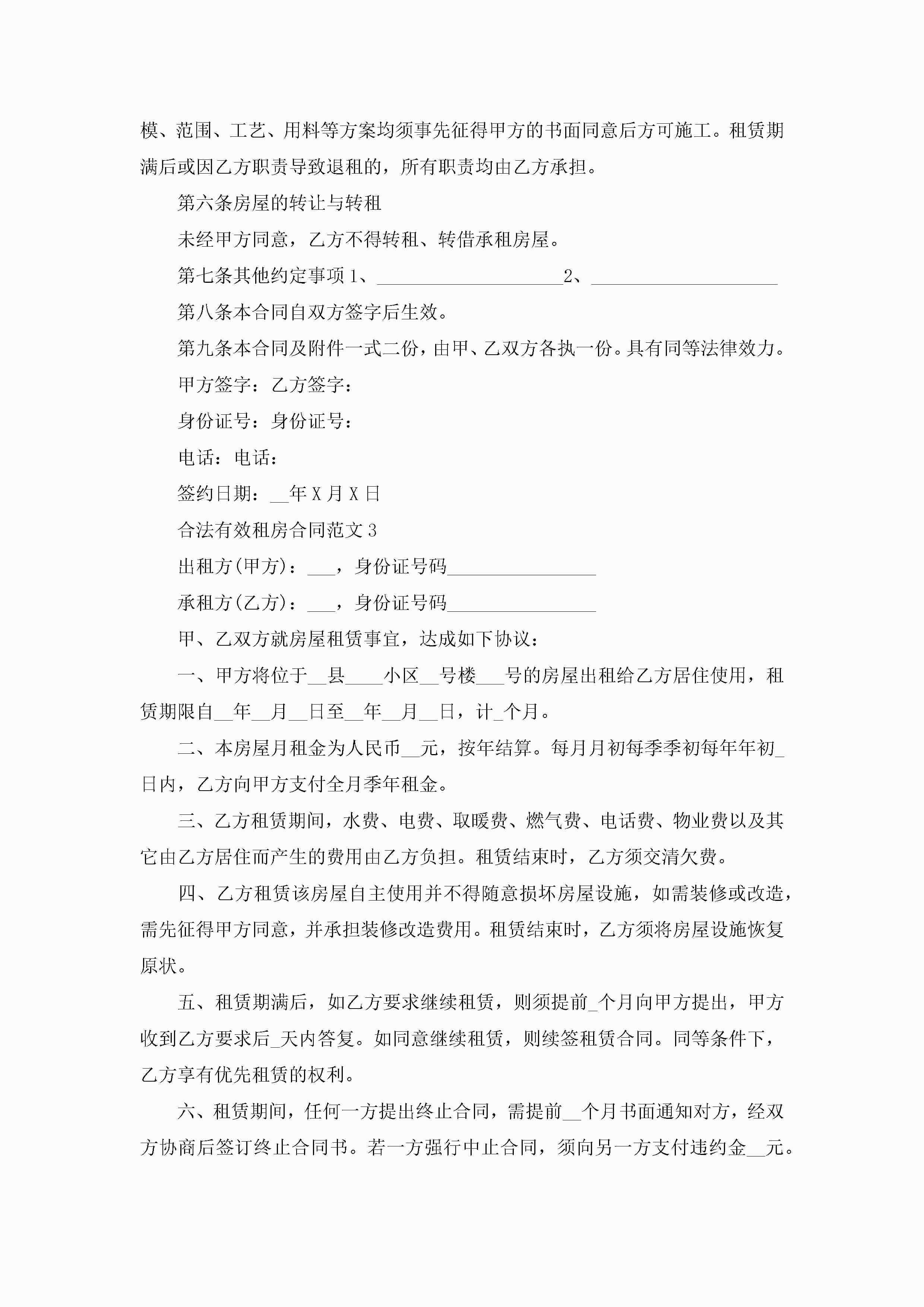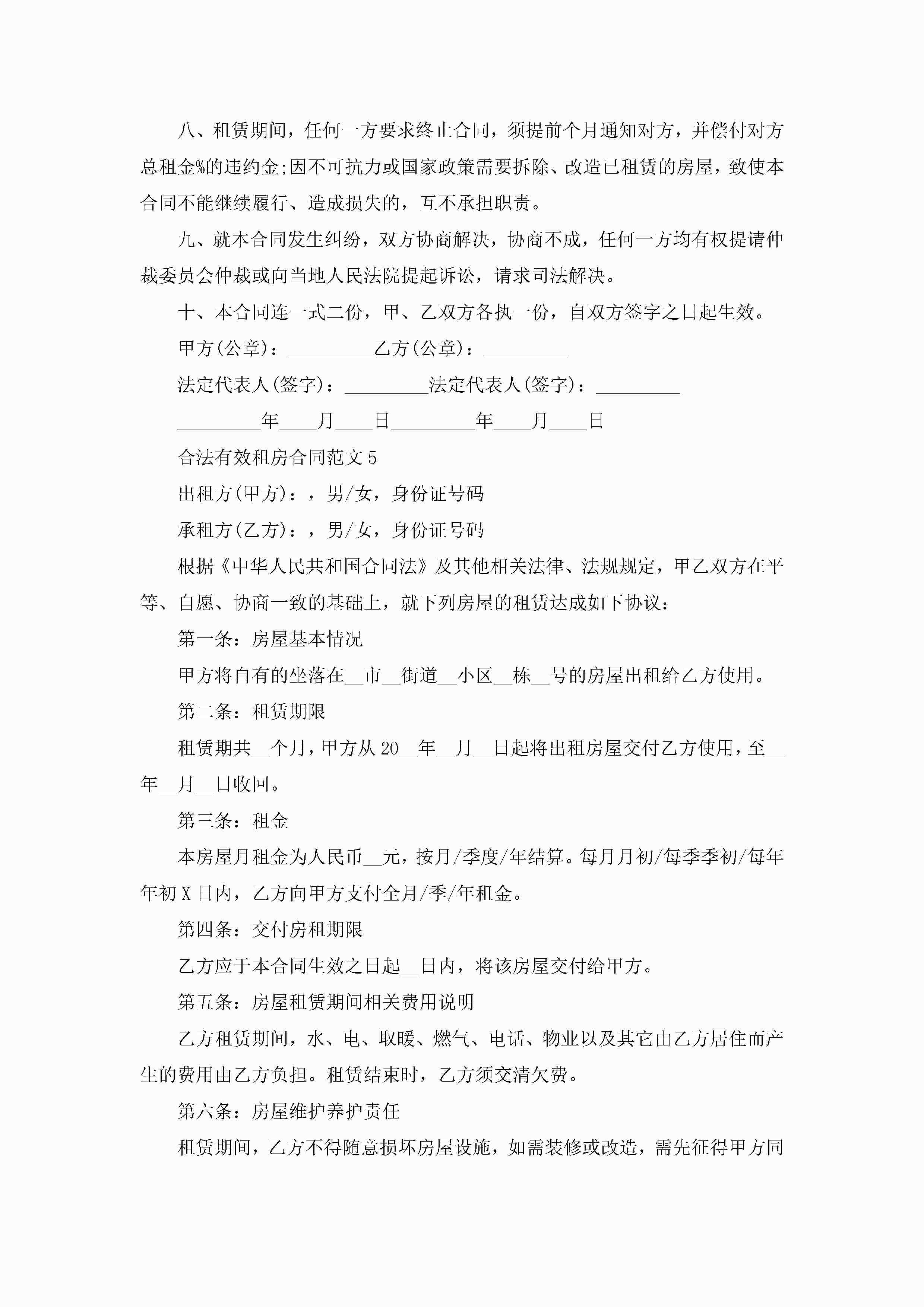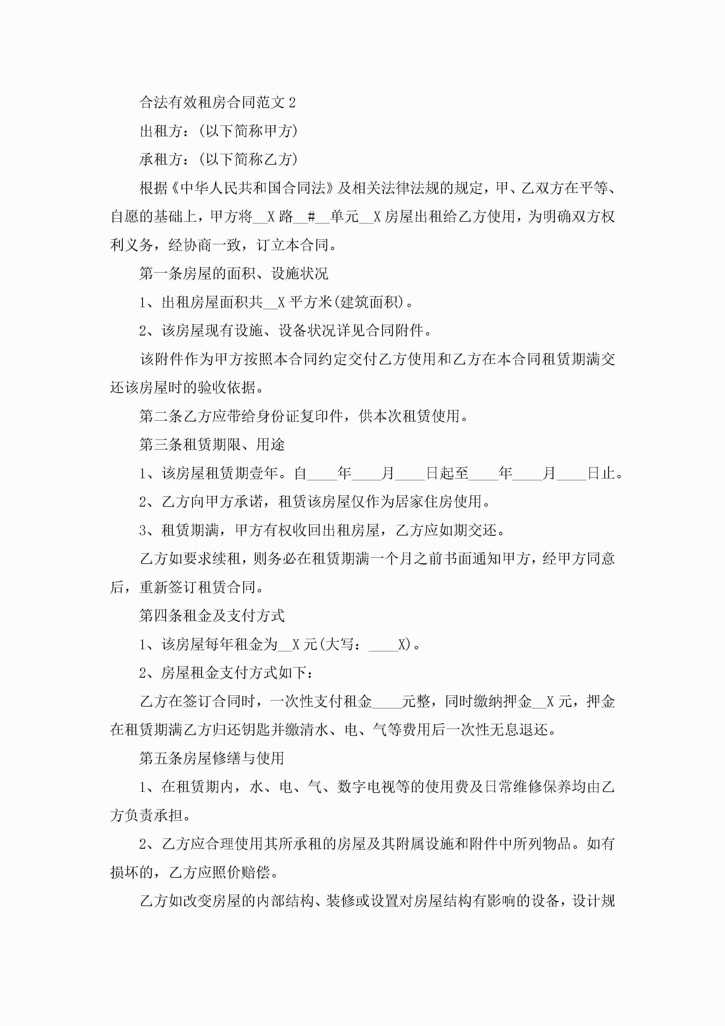 合法有效租房合同范文5篇jugei3月23日 01:48发布关注225 合法有效租房合同范文5篇此内容为付费资源,请付费后查看¥10.9 单篇文档限时特惠¥15个人会员开通企业会员开通立即下载无需登陆!可直接快捷下载单个模板付费资源© 版权声明THE ENDWord模板# 实用文档# 实用模板# 合同模板# 租房合同 如有问题,可点击最底部“联系我们”联系客服 分享QQ空间微博QQ好友海报分享复制链接收藏