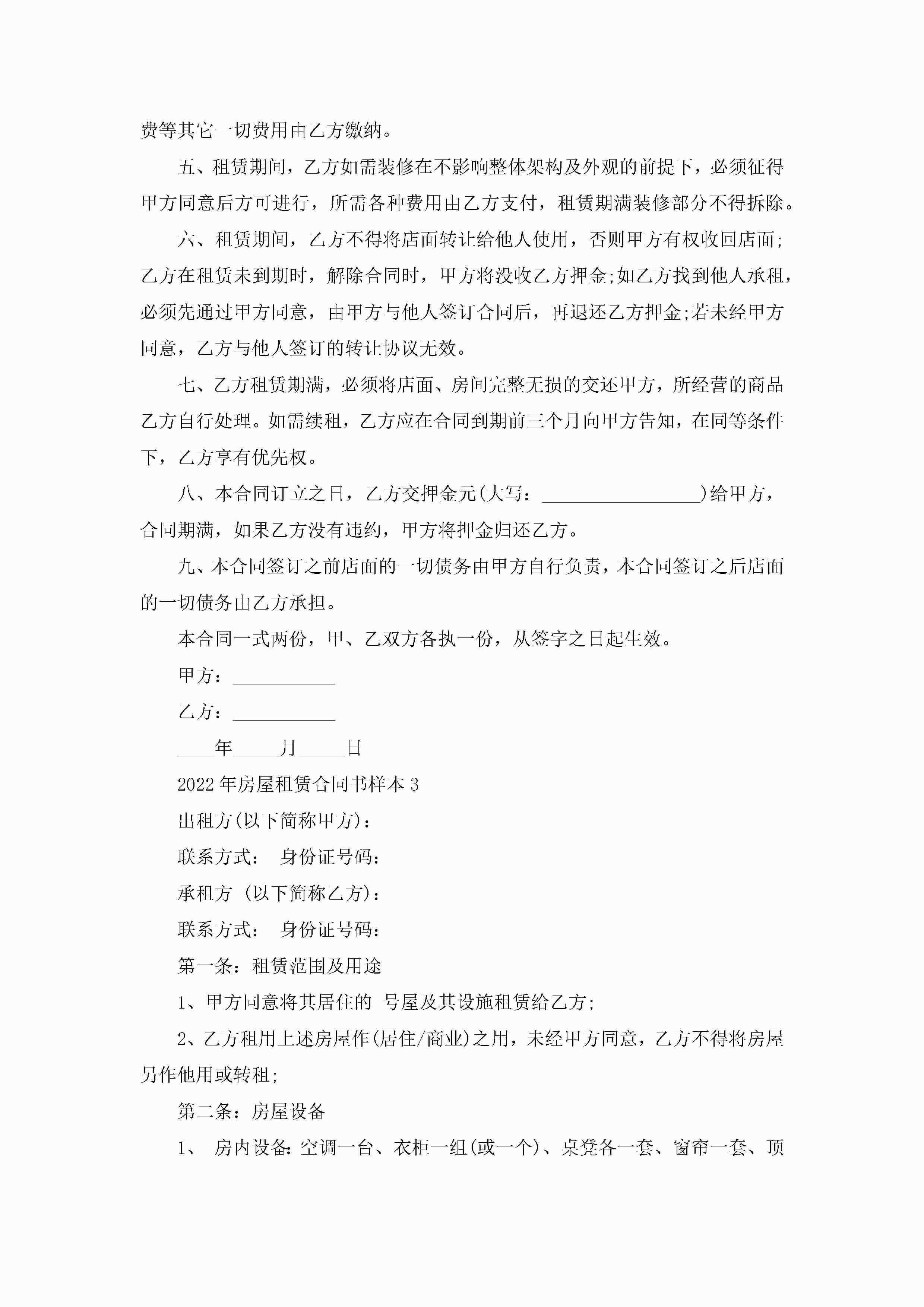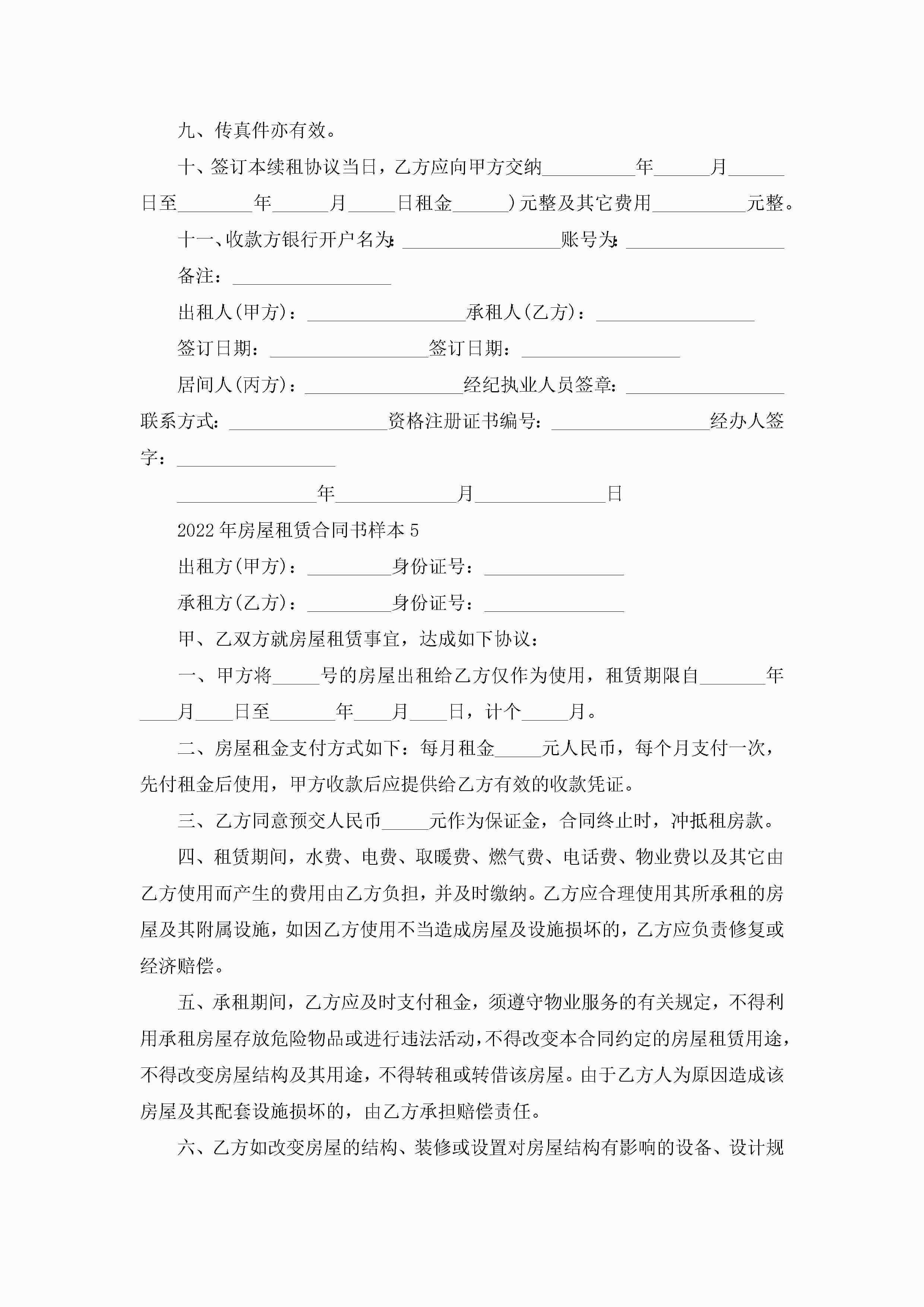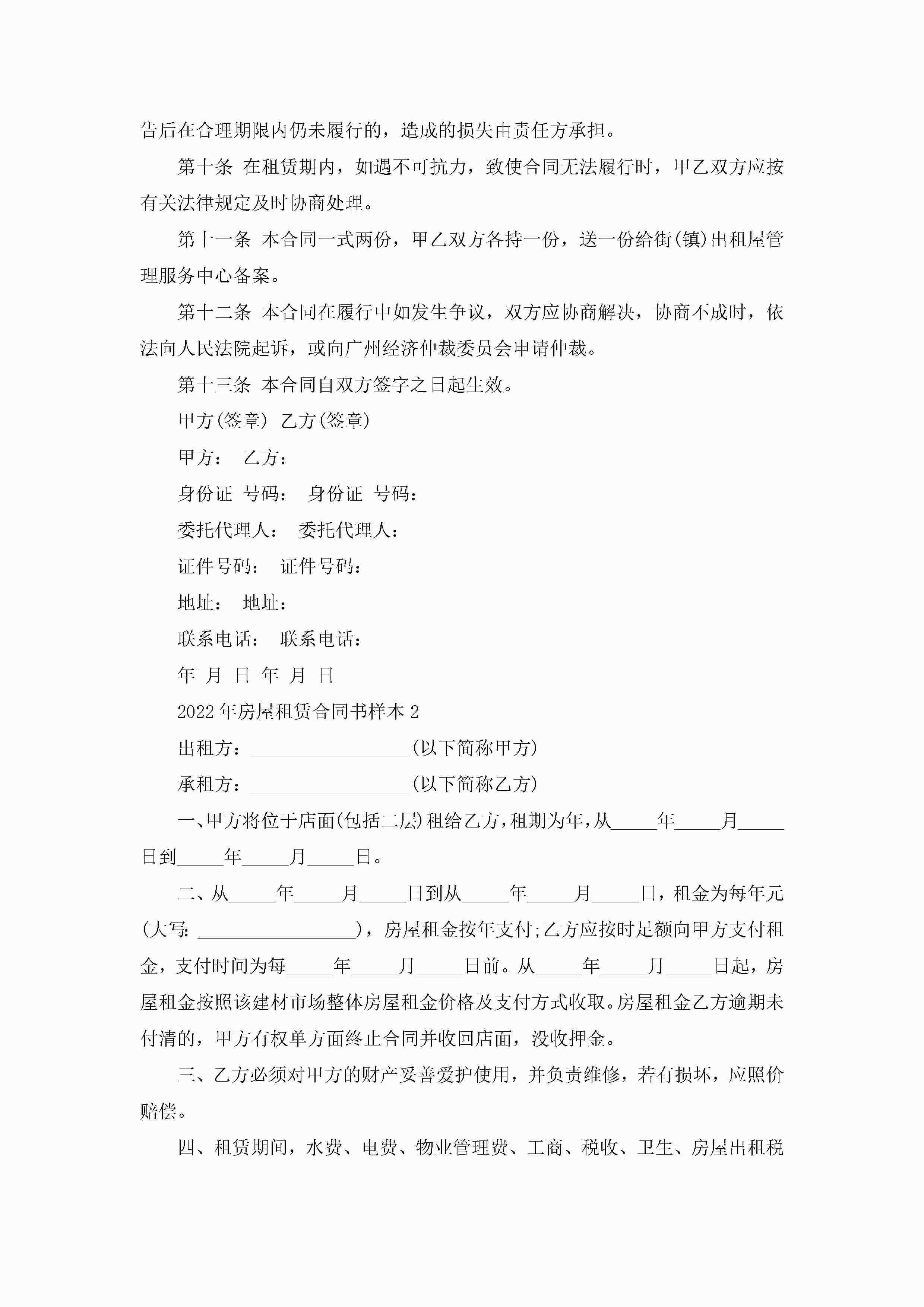 2022年房屋租赁合同书样本(八篇)jugei3月23日 01:48发布关注201 2022年房屋租赁合同书样本(八篇)此内容为付费资源,请付费后查看¥10.9 单篇文档限时特惠¥15个人会员开通企业会员开通立即下载无需登陆!可直接快捷下载单个模板付费资源© 版权声明THE ENDWord模板# 实用文档# 实用模板# 合同模板# 租房合同 如有问题,可点击最底部“联系我们”联系客服 分享QQ空间微博QQ好友海报分享复制链接收藏