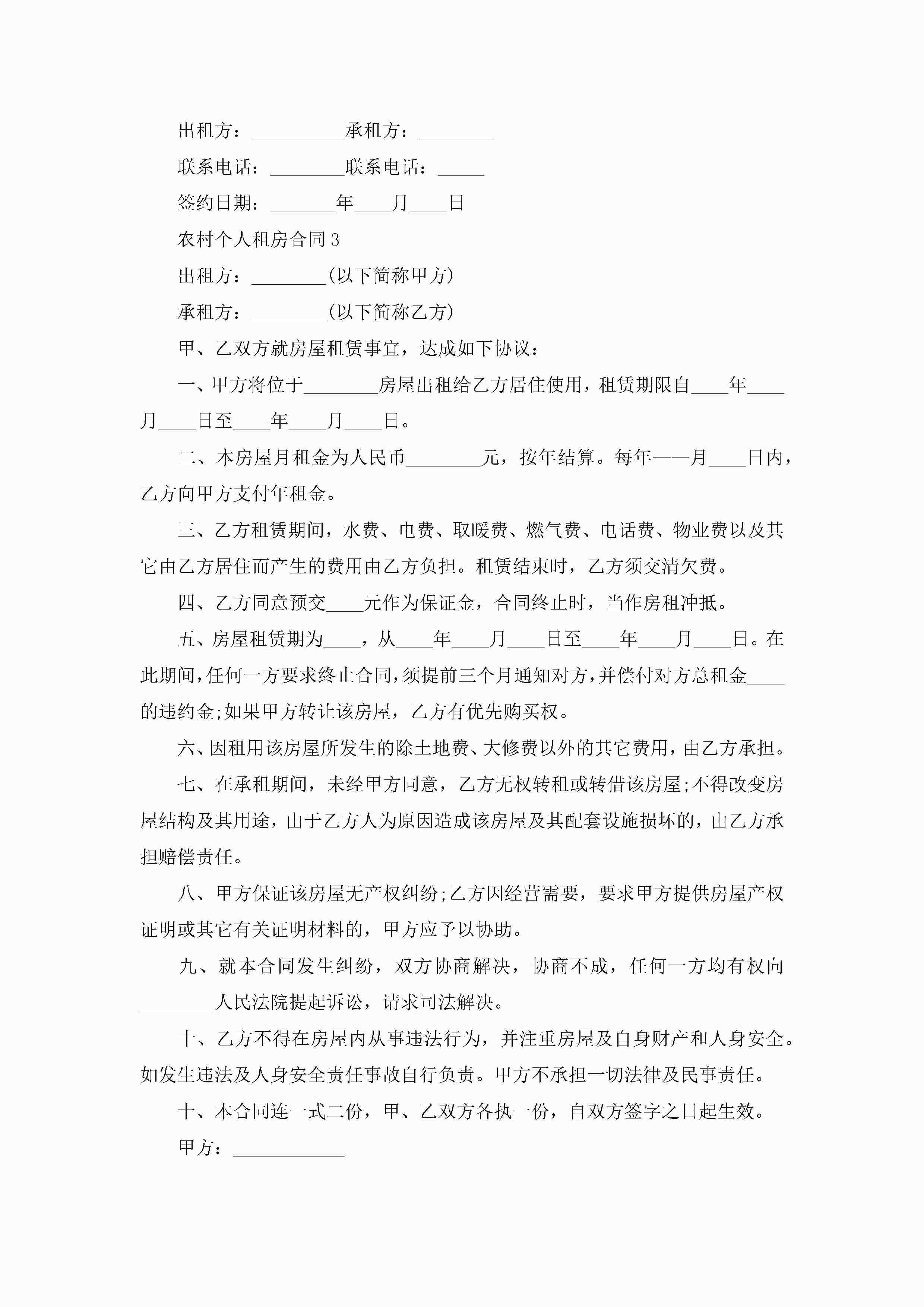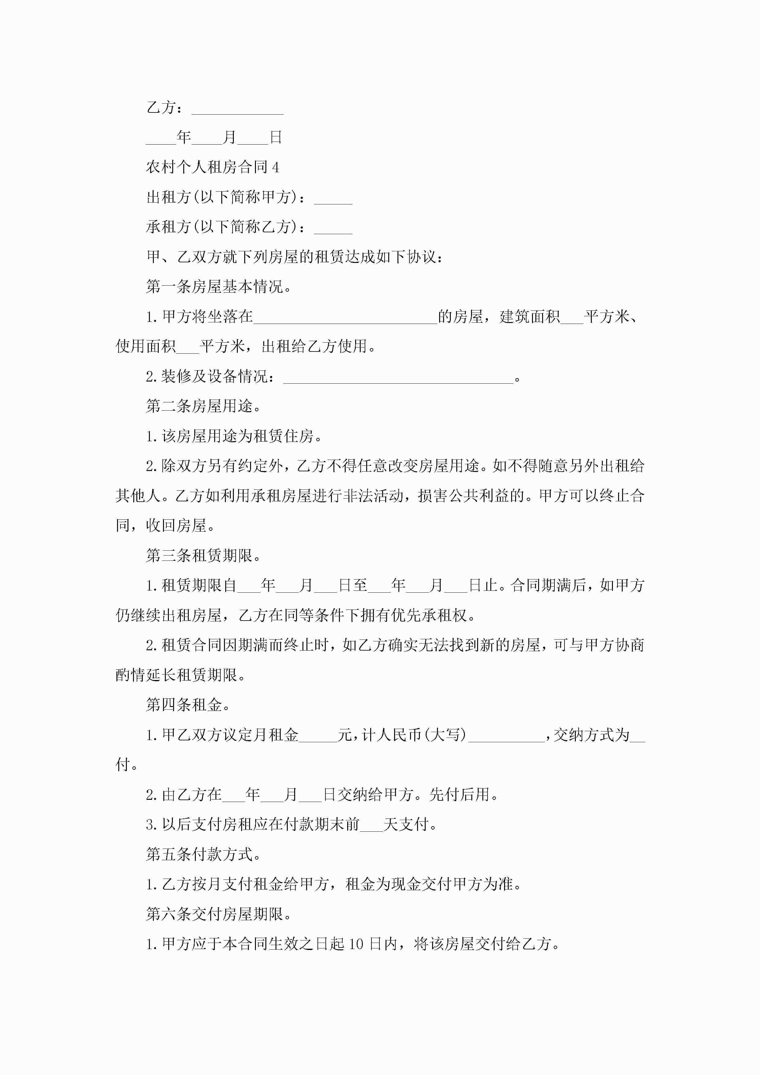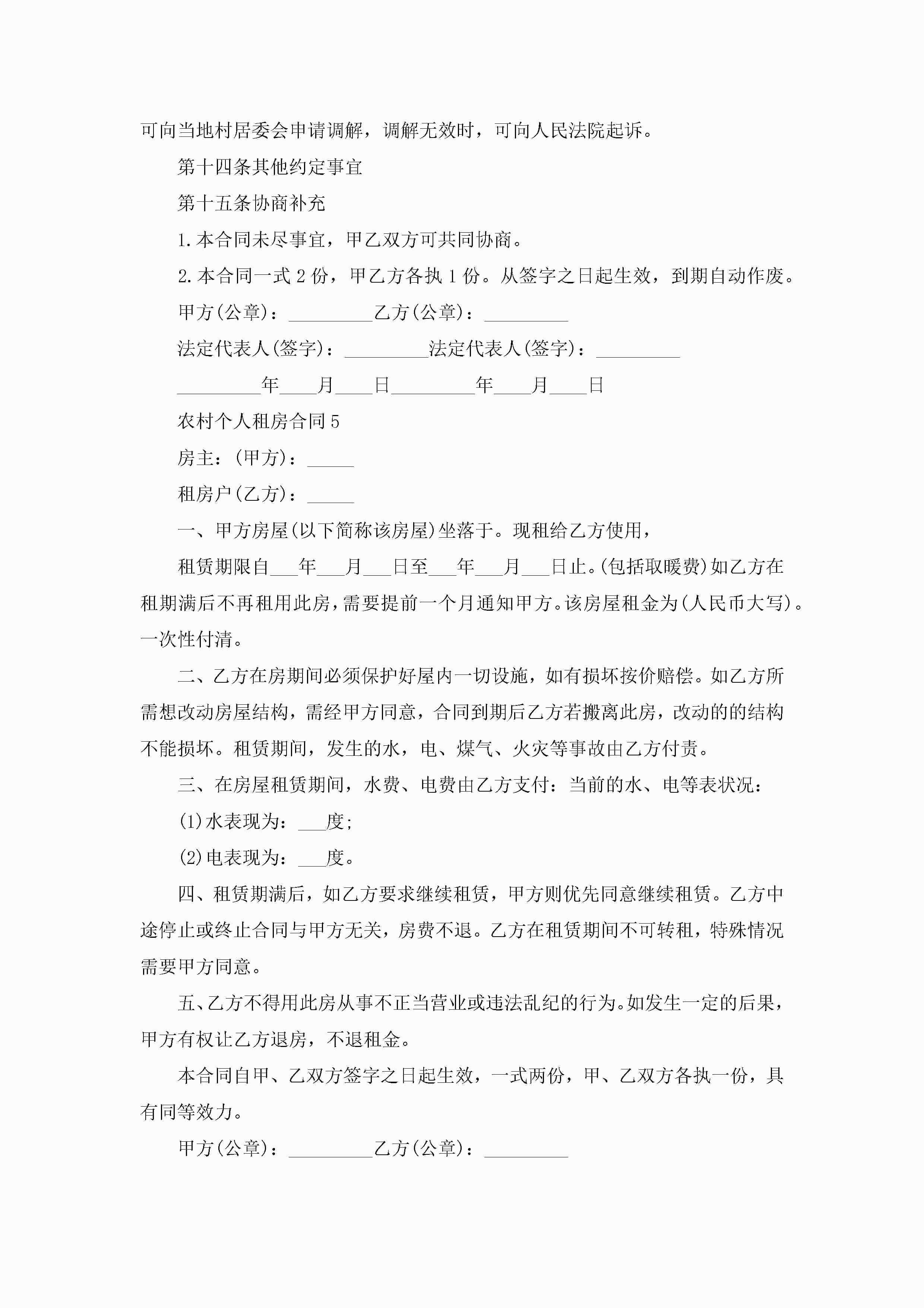 2022农村个人租房合同5篇jugei3月23日 01:48发布关注352 2022农村个人租房合同5篇此内容为付费资源,请付费后查看¥10.9 单篇文档限时特惠¥15个人会员开通企业会员开通立即下载无需登陆!可直接快捷下载单个模板付费资源© 版权声明THE ENDWord模板# 实用文档# 实用模板# 合同模板# 租房合同 如有问题,可点击最底部“联系我们”联系客服 分享QQ空间微博QQ好友海报分享复制链接收藏