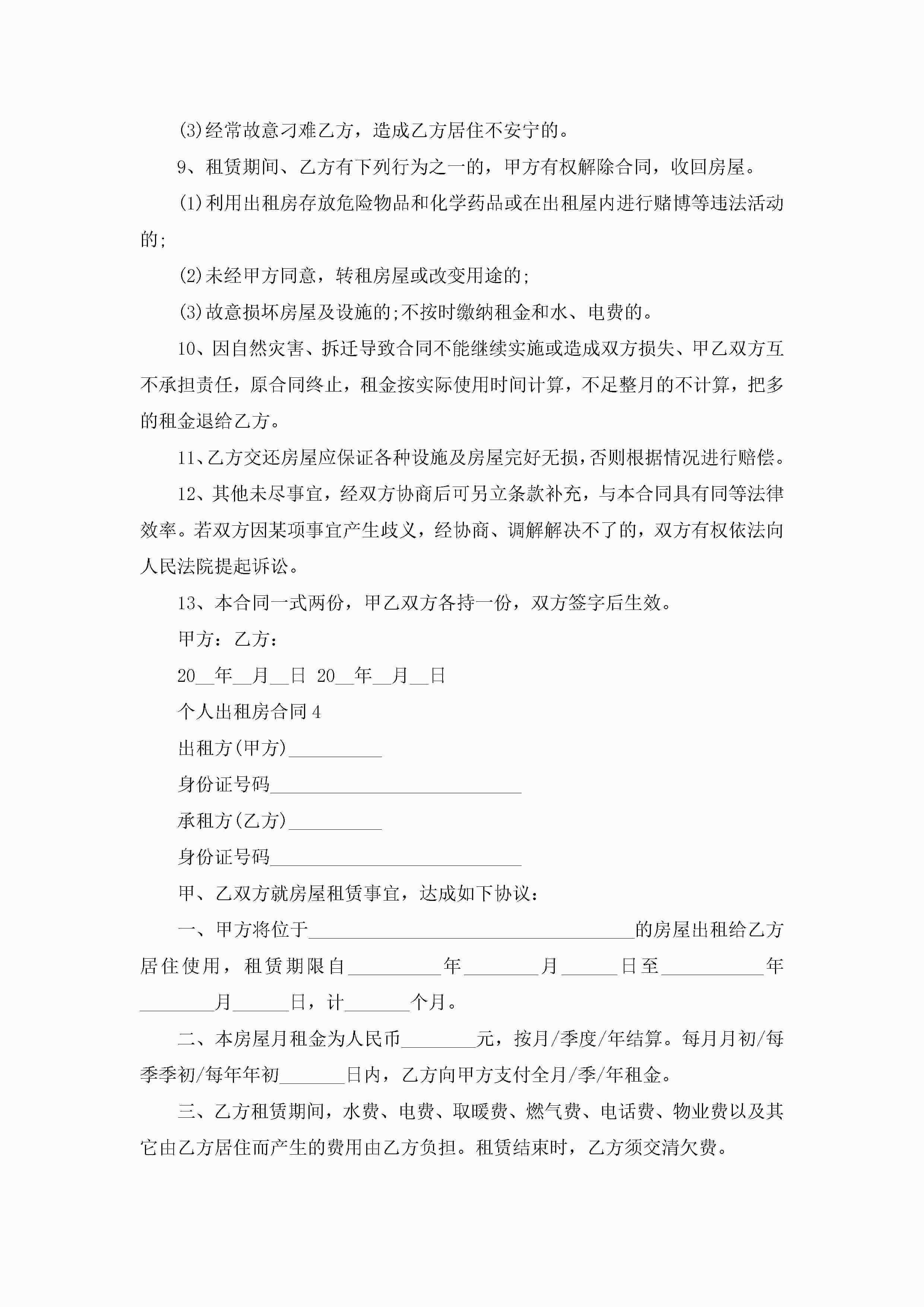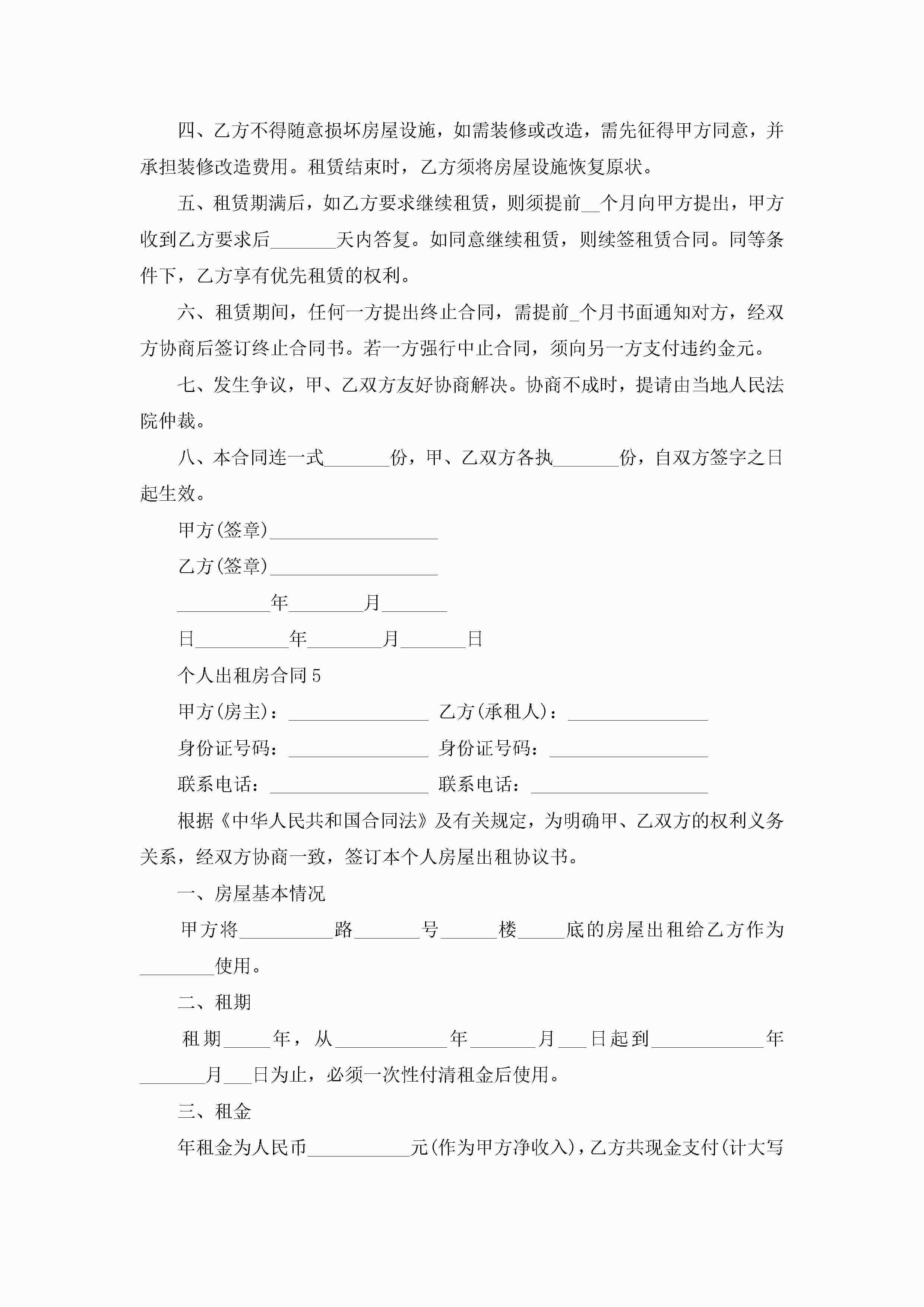 个人出租房合同的样本5篇jugei3月23日 01:48发布关注220 个人出租房合同的样本5篇此内容为付费资源,请付费后查看¥10.9 单篇文档限时特惠¥15个人会员开通企业会员开通立即下载无需登陆!可直接快捷下载单个模板付费资源© 版权声明THE ENDWord模板# 实用文档# 实用模板# 合同模板# 租房合同 如有问题,可点击最底部“联系我们”联系客服 分享QQ空间微博QQ好友海报分享复制链接收藏