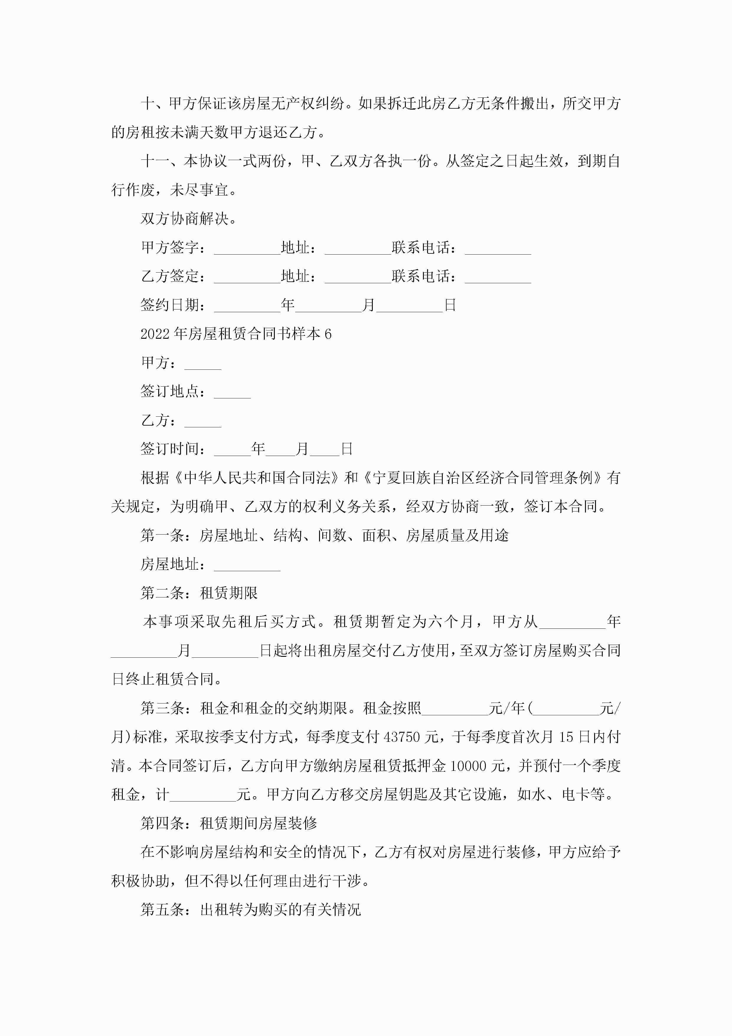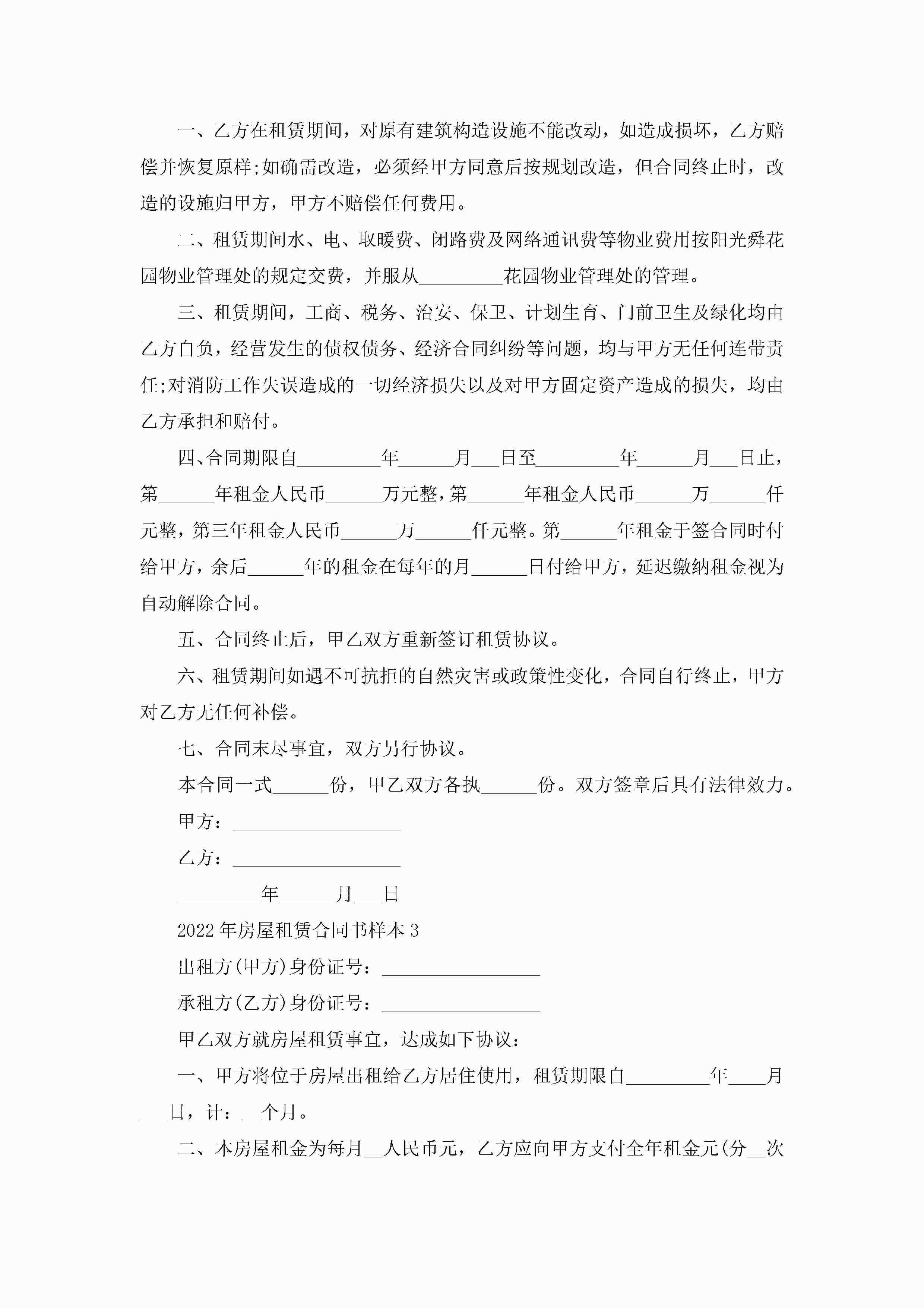 2022年房屋租赁合同书样本(十篇)jugei3月23日 01:48发布关注291 2022年房屋租赁合同书样本(十篇)此内容为付费资源,请付费后查看¥10.9 单篇文档限时特惠¥15个人会员开通企业会员开通立即下载无需登陆!可直接快捷下载单个模板付费资源© 版权声明THE ENDWord模板# 实用文档# 实用模板# 合同模板# 租房合同 如有问题,可点击最底部“联系我们”联系客服 分享QQ空间微博QQ好友海报分享复制链接收藏