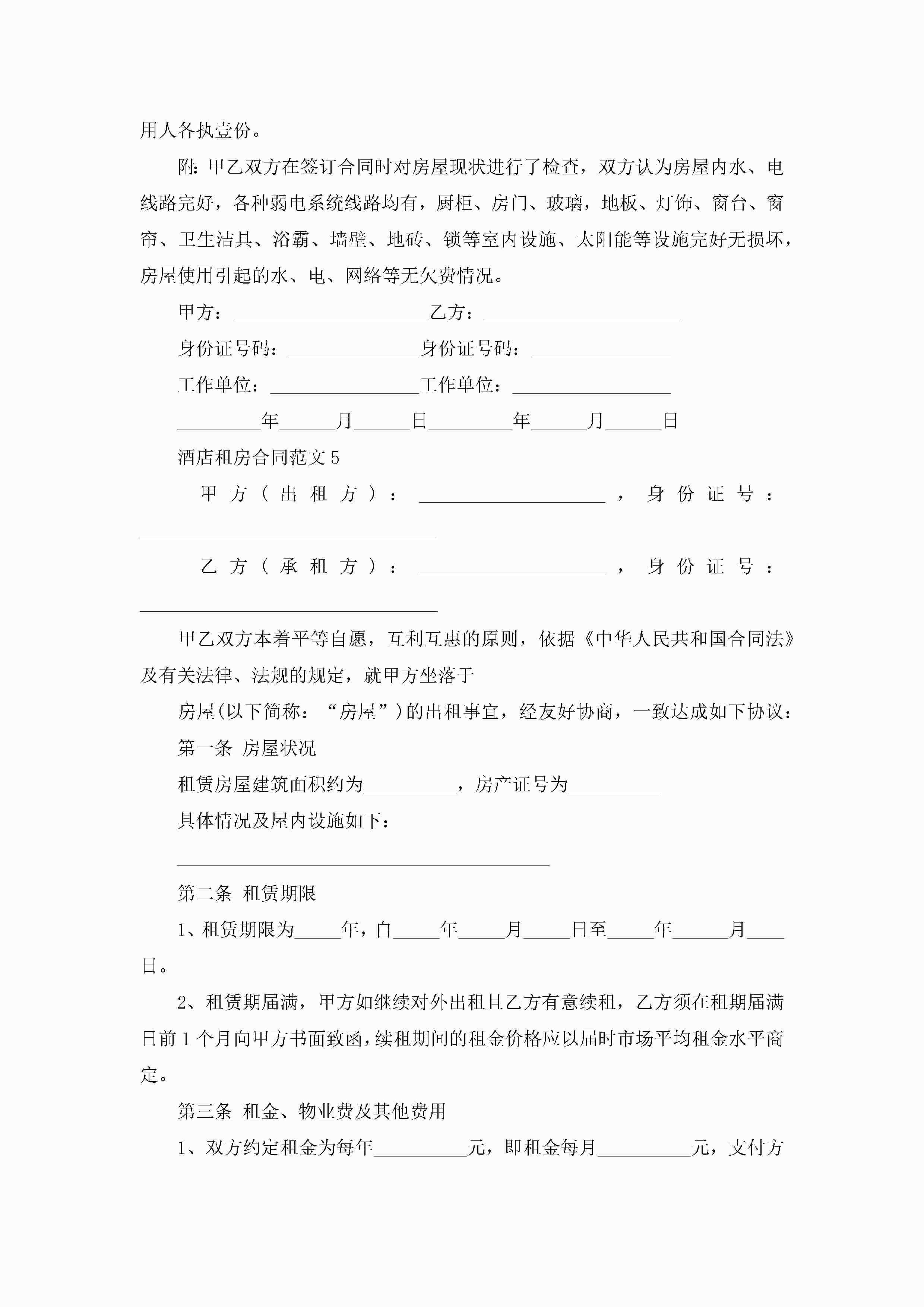 酒店租房合同范文5篇jugei3月23日 01:48发布关注250 酒店租房合同范文5篇此内容为付费资源,请付费后查看¥10.9 单篇文档限时特惠¥15个人会员开通企业会员开通立即下载无需登陆!可直接快捷下载单个模板付费资源© 版权声明THE ENDWord模板# 实用文档# 实用模板# 合同模板# 租房合同 如有问题,可点击最底部“联系我们”联系客服 分享QQ空间微博QQ好友海报分享复制链接收藏