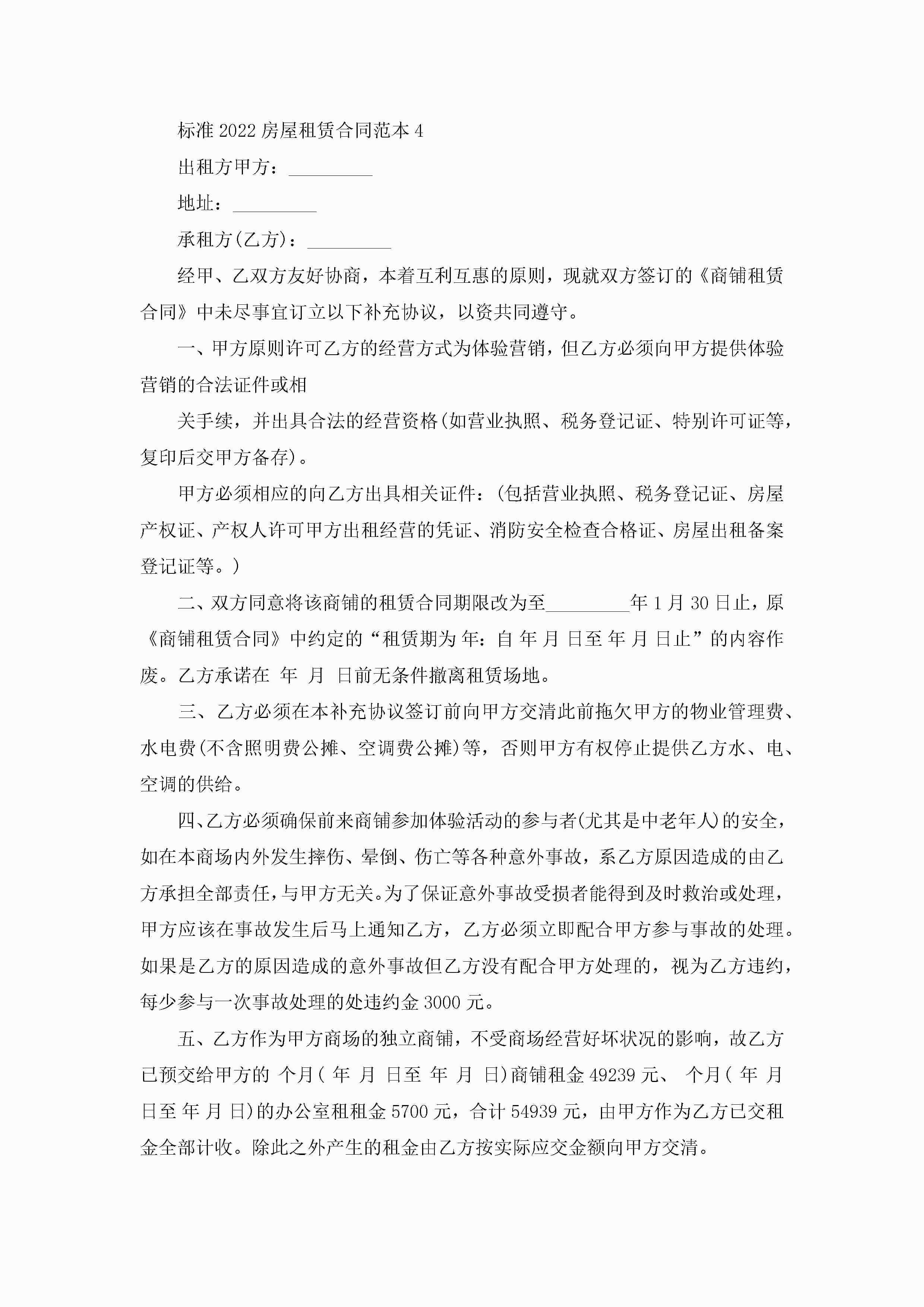 标准2022房屋租赁合同范本5篇jugei3月23日 01:48发布关注262 标准2022房屋租赁合同范本5篇此内容为付费资源,请付费后查看¥10.9 单篇文档限时特惠¥15个人会员开通企业会员开通立即下载无需登陆!可直接快捷下载单个模板付费资源© 版权声明THE ENDWord模板# 实用文档# 实用模板# 合同模板# 租房合同 如有问题,可点击最底部“联系我们”联系客服 分享QQ空间微博QQ好友海报分享复制链接收藏
