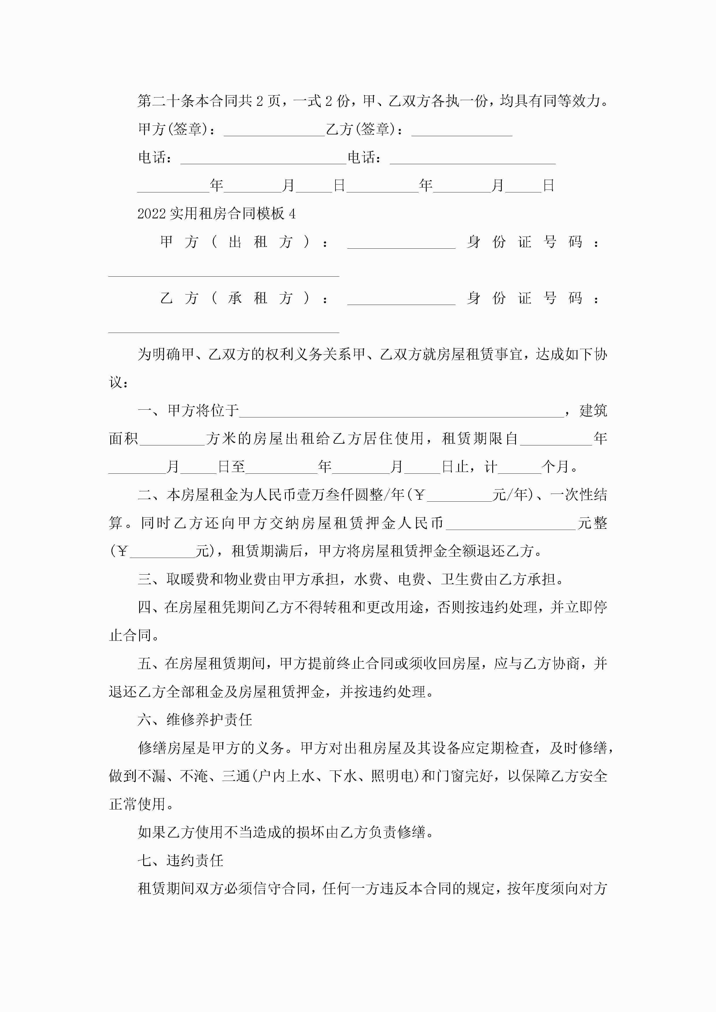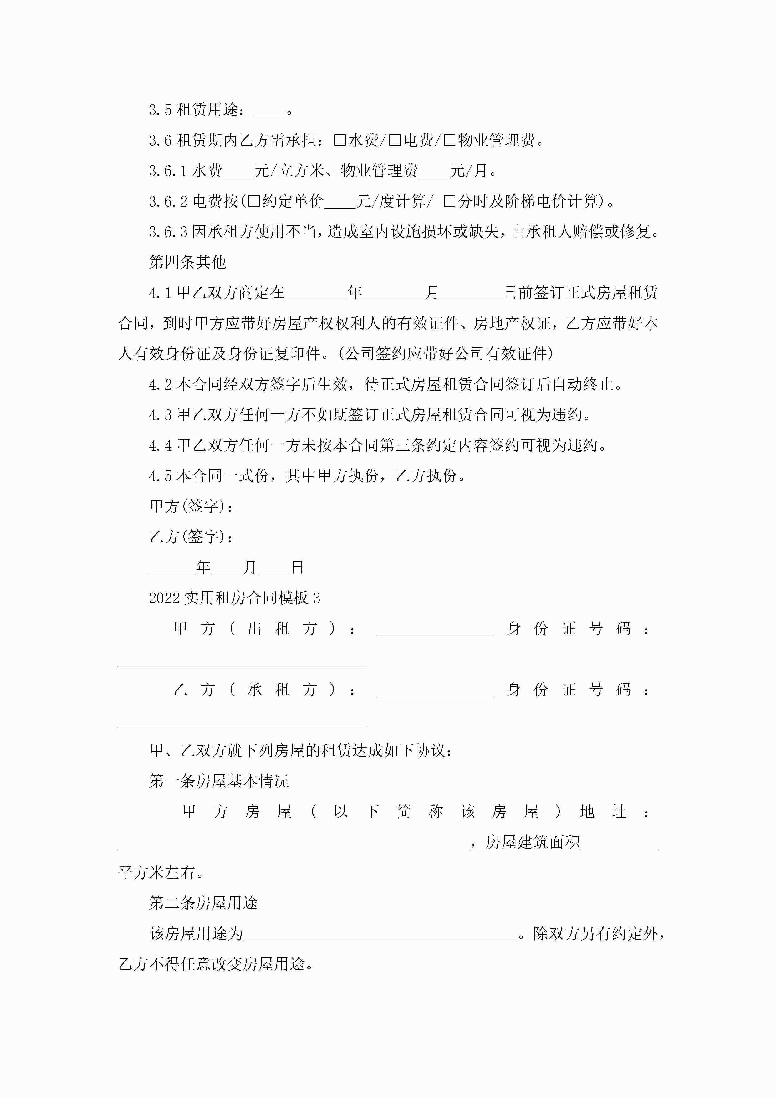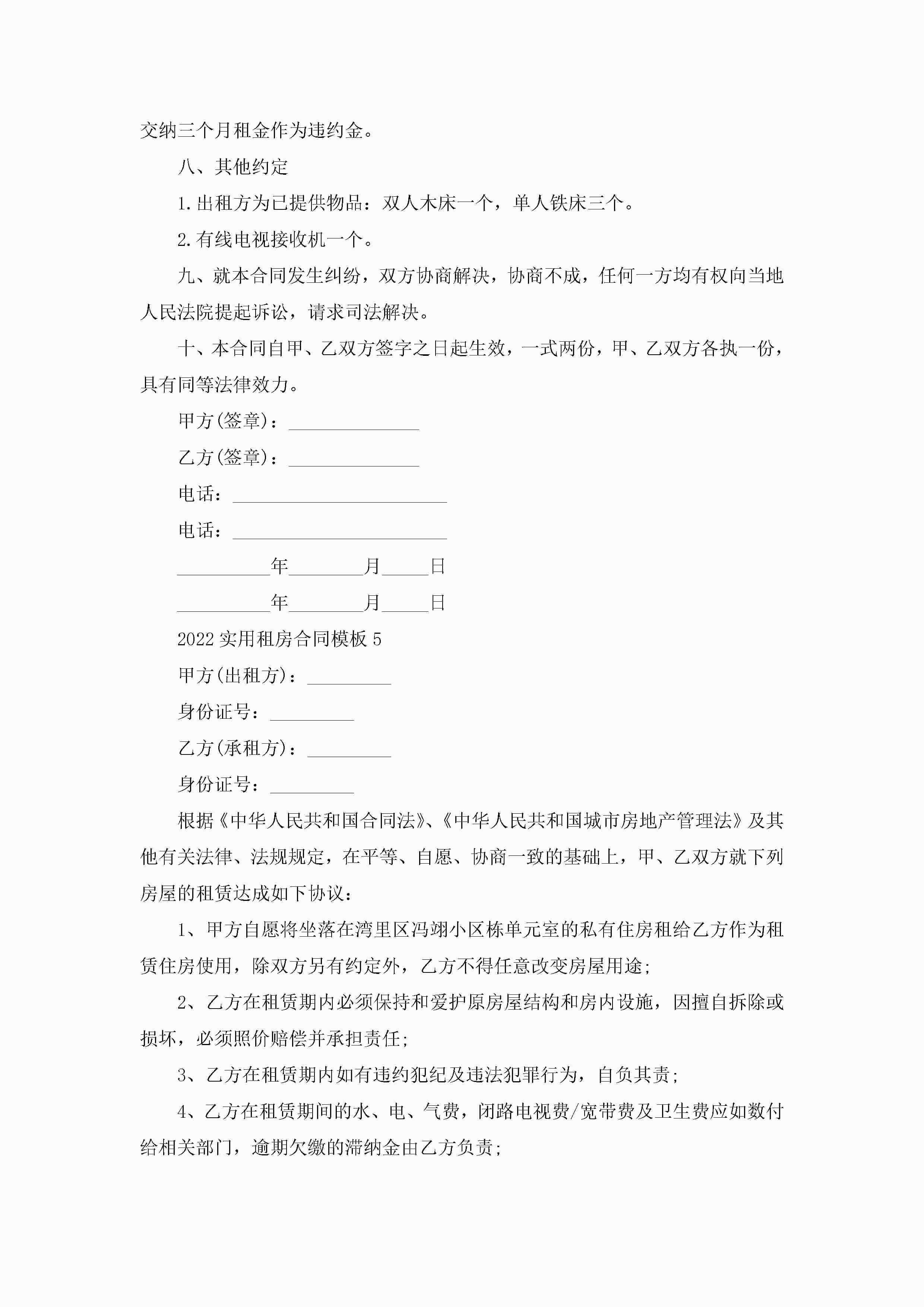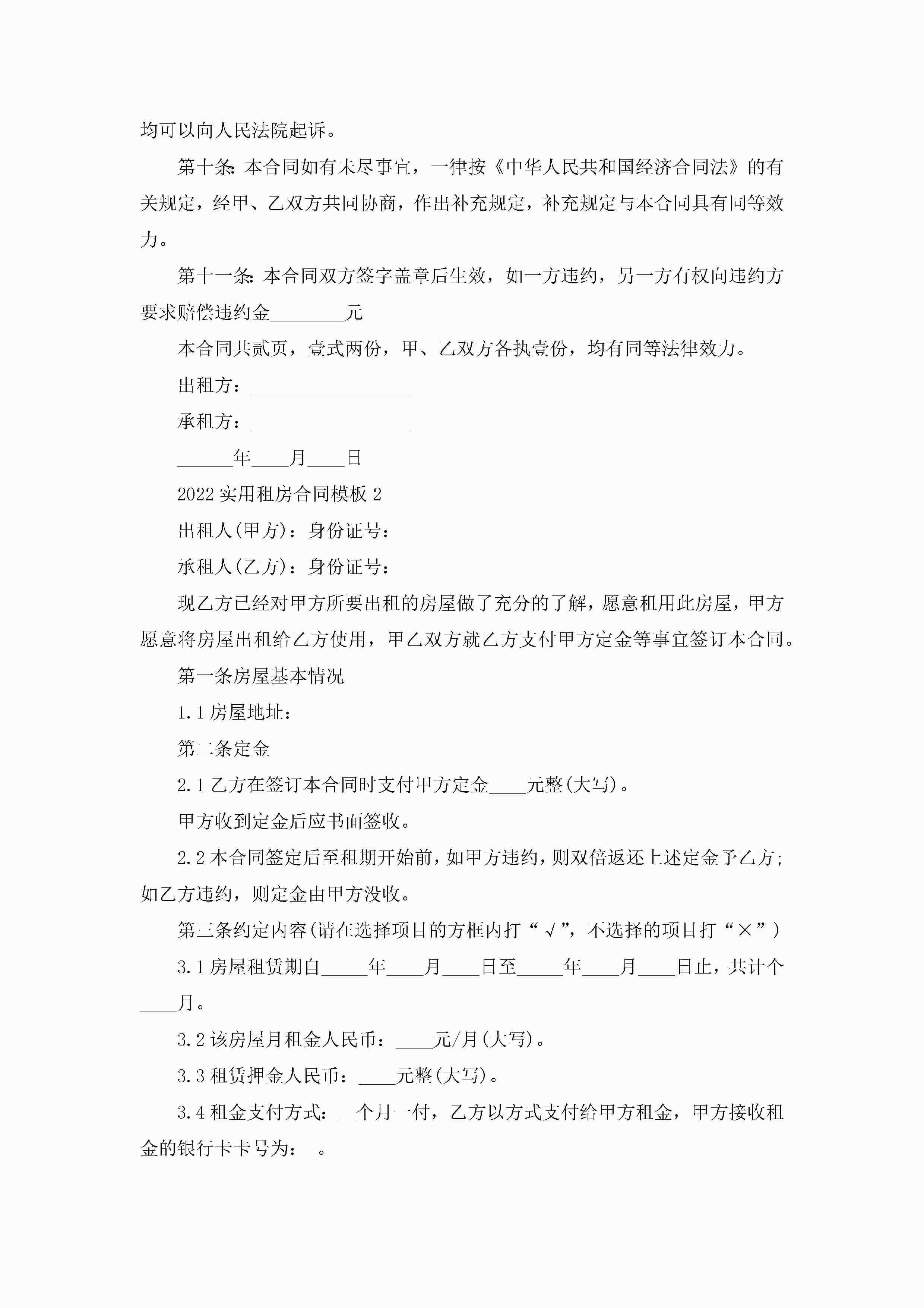 2022实用租房合同模板5篇jugei3月23日 01:48发布关注249 2022实用租房合同模板5篇此内容为付费资源,请付费后查看¥10.9 单篇文档限时特惠¥15个人会员开通企业会员开通立即下载无需登陆!可直接快捷下载单个模板付费资源© 版权声明THE ENDWord模板# 实用文档# 实用模板# 合同模板# 租房合同 如有问题,可点击最底部“联系我们”联系客服 分享QQ空间微博QQ好友海报分享复制链接收藏