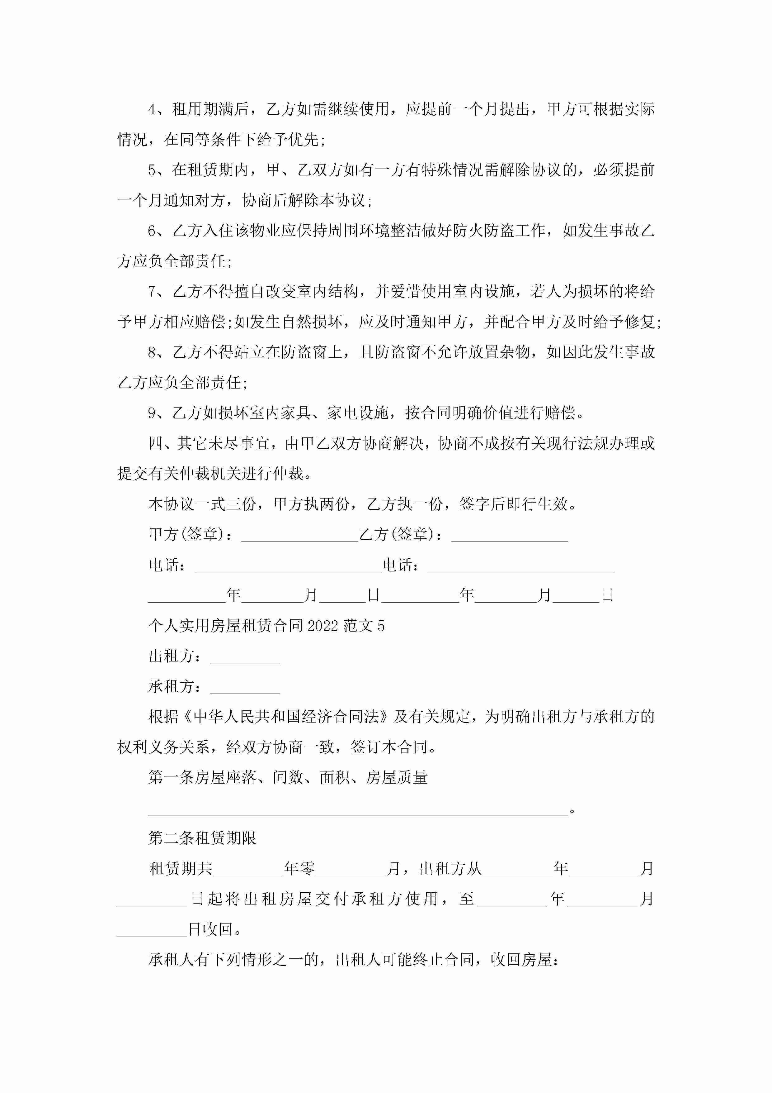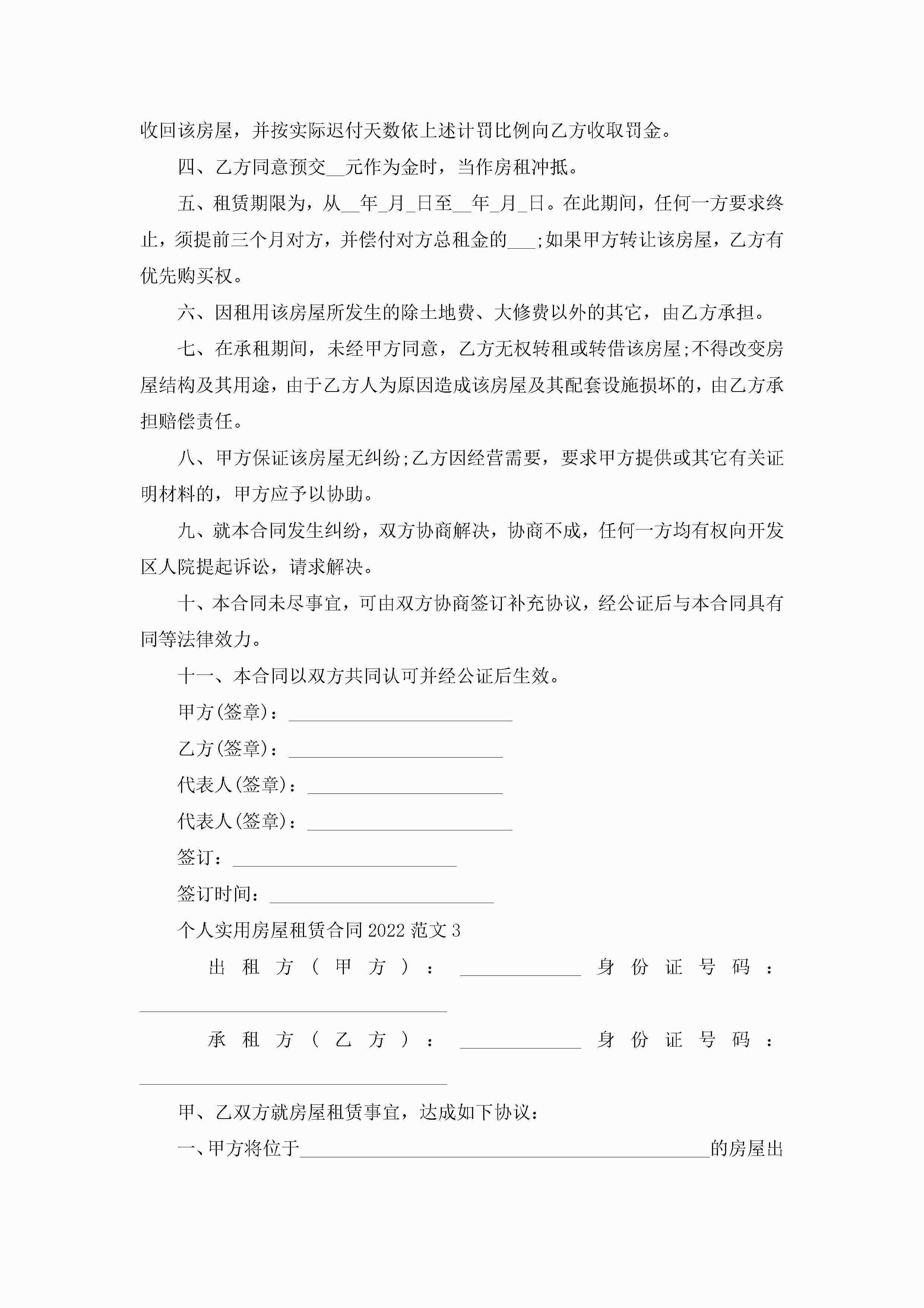个人实用房屋租赁合同2022范文5篇jugei3月23日 01:48发布关注318 个人实用房屋租赁合同2022范文5篇此内容为付费资源,请付费后查看¥10.9 单篇文档限时特惠¥15个人会员开通企业会员开通立即下载无需登陆!可直接快捷下载单个模板付费资源© 版权声明THE ENDWord模板# 实用文档# 实用模板# 合同模板# 租房合同 如有问题,可点击最底部“联系我们”联系客服 分享QQ空间微博QQ好友海报分享复制链接收藏