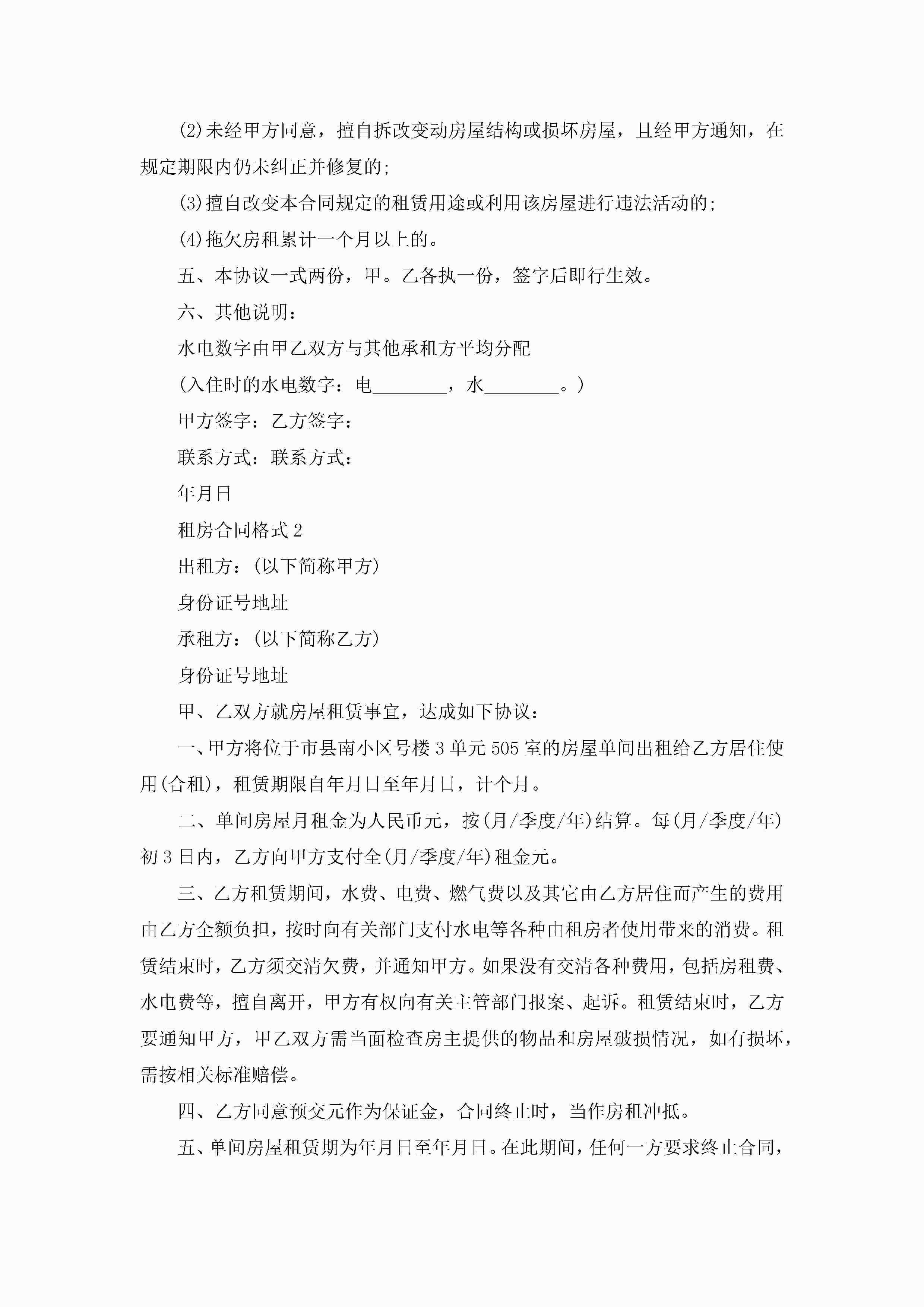 2022租房合同格式标准5篇jugei3月23日 01:48发布关注189 2022租房合同格式标准5篇此内容为付费资源,请付费后查看¥10.9 单篇文档限时特惠¥15个人会员开通企业会员开通立即下载无需登陆!可直接快捷下载单个模板付费资源© 版权声明THE ENDWord模板# 实用文档# 实用模板# 合同模板# 租房合同 如有问题,可点击最底部“联系我们”联系客服 分享QQ空间微博QQ好友海报分享复制链接收藏