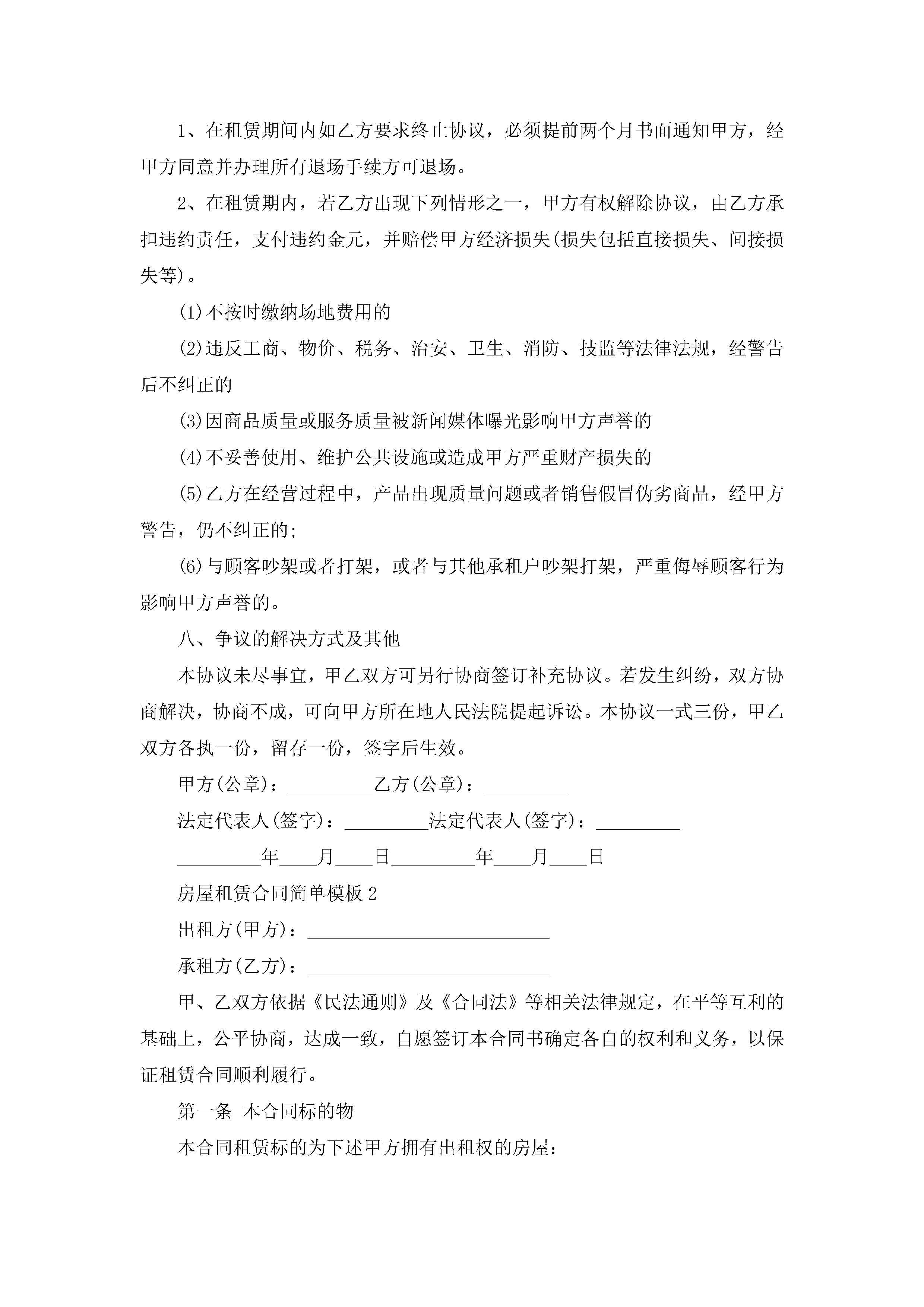 房屋租赁合同简单模板(八篇)jugei3月23日 01:48发布关注379 房屋租赁合同简单模板(八篇)此内容为付费资源,请付费后查看¥10.9 单篇文档限时特惠¥15个人会员开通企业会员开通立即下载无需登陆!可直接快捷下载单个模板付费资源© 版权声明THE ENDWord模板# 实用文档# 实用模板# 合同模板# 租房合同 如有问题,可点击最底部“联系我们”联系客服 分享QQ空间微博QQ好友海报分享复制链接收藏