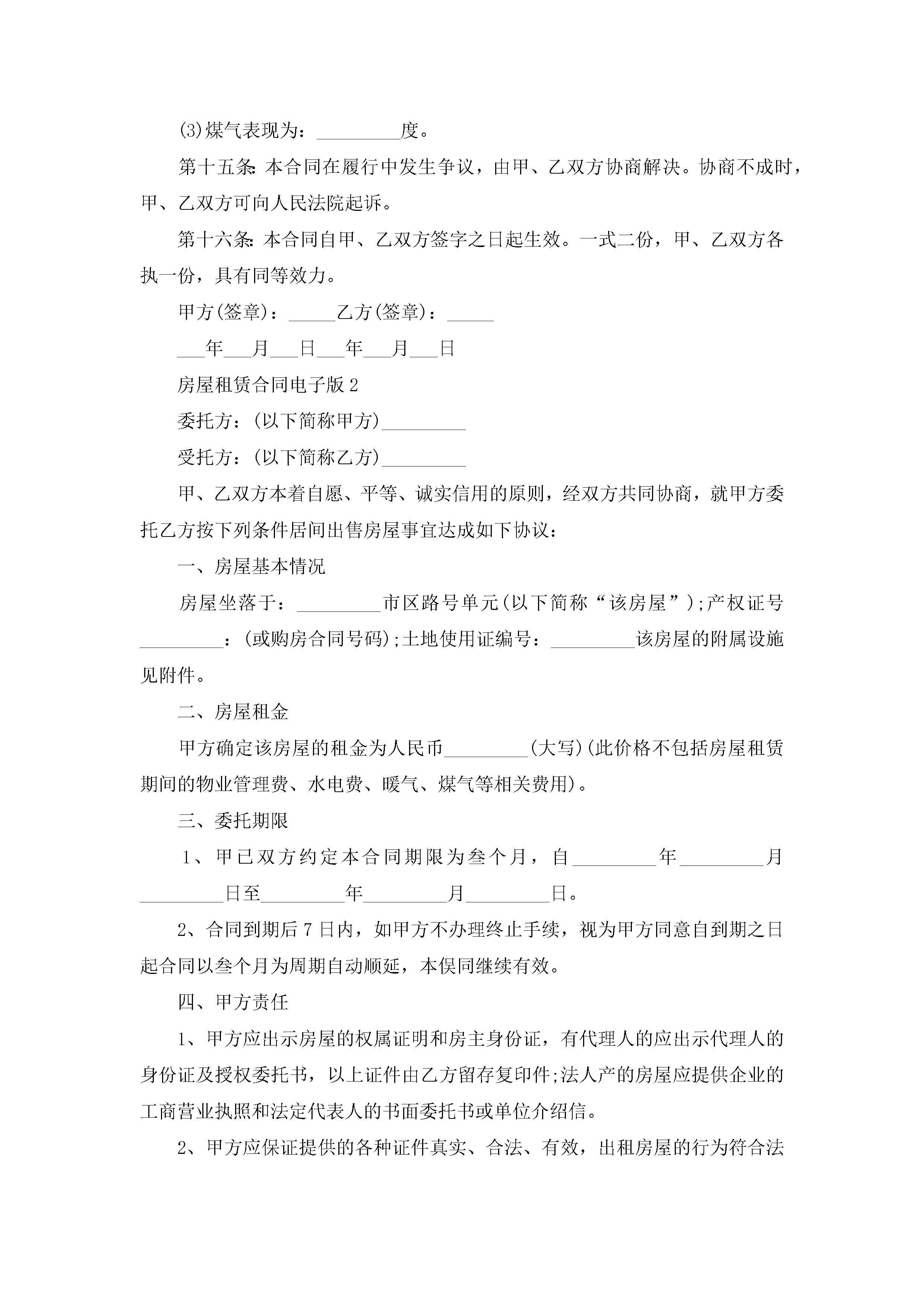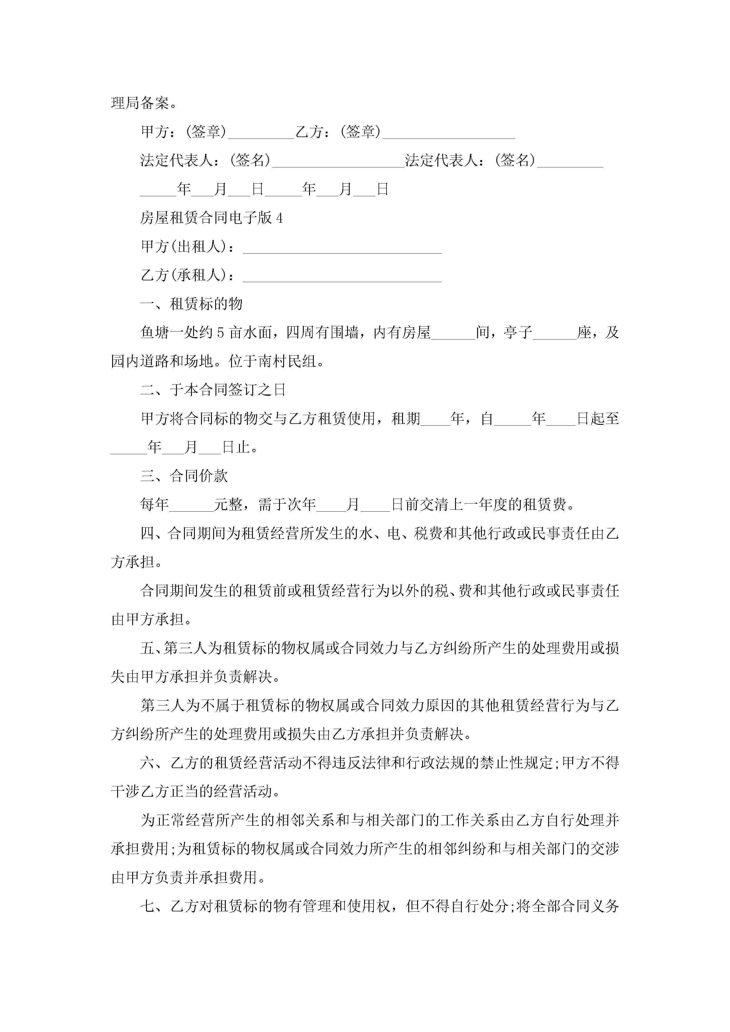 房屋租赁合同电子版(精选8篇)jugei3月23日 01:48发布关注204 房屋租赁合同电子版(精选8篇)此内容为付费资源,请付费后查看¥10.9 单篇文档限时特惠¥15个人会员开通企业会员开通立即下载无需登陆!可直接快捷下载单个模板付费资源© 版权声明THE ENDWord模板# 实用文档# 实用模板# 合同模板# 租房合同 如有问题,可点击最底部“联系我们”联系客服 分享QQ空间微博QQ好友海报分享复制链接收藏