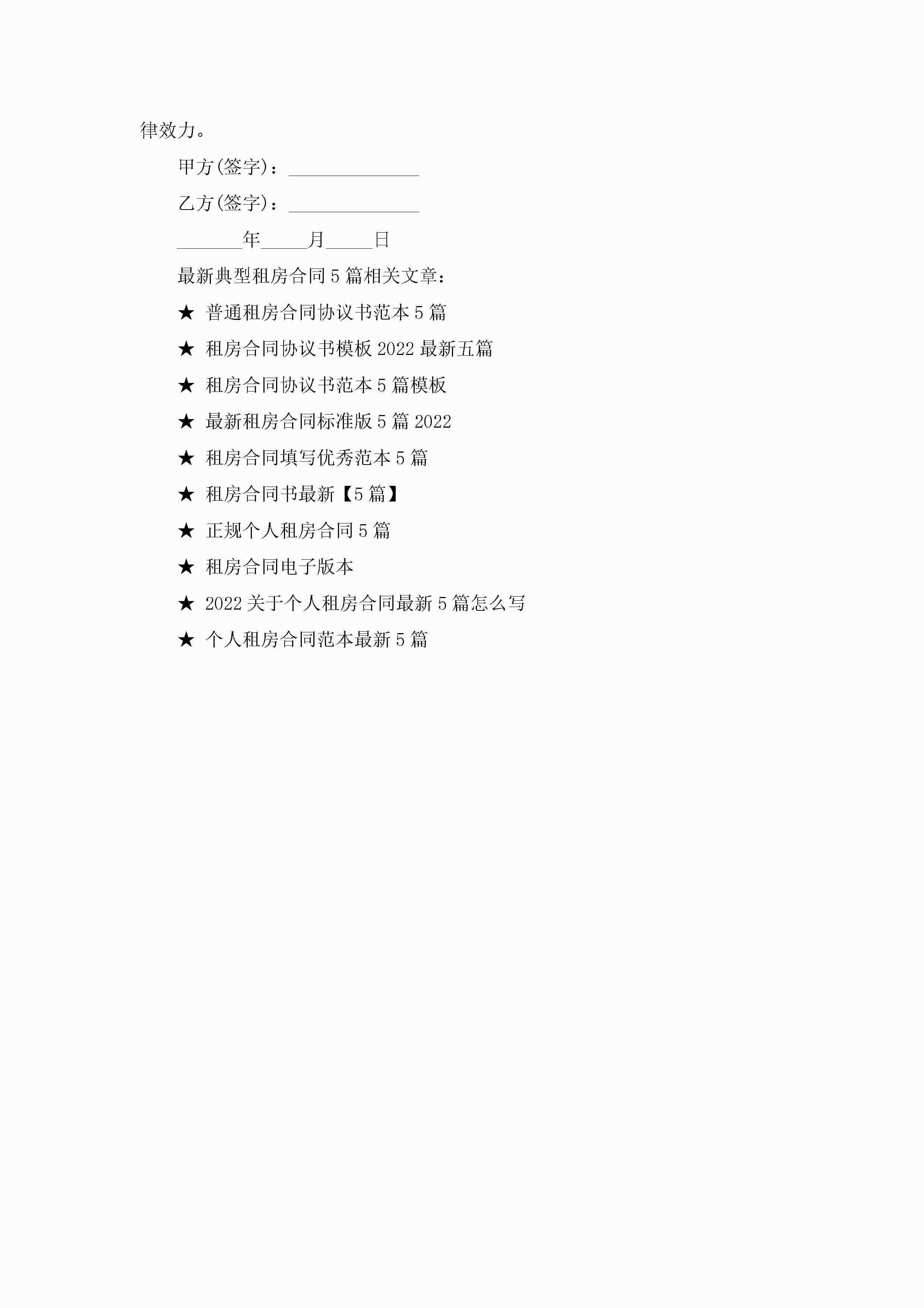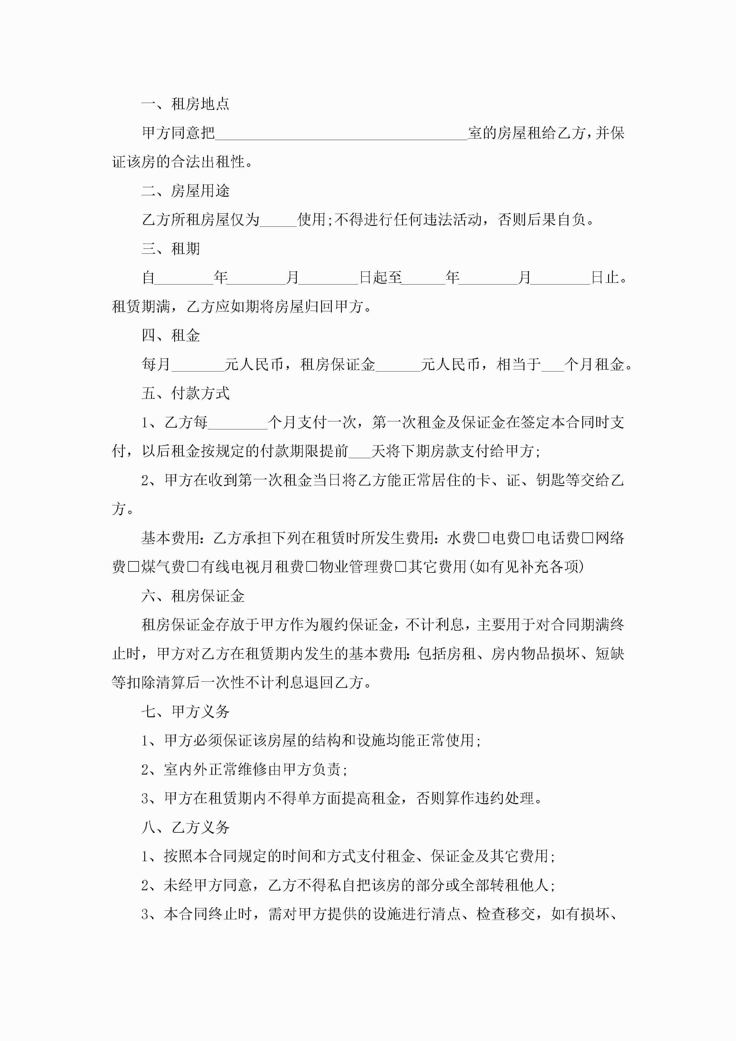 最新典型租房合同范文5篇jugei3月23日 01:48发布关注245 最新典型租房合同范文5篇此内容为付费资源,请付费后查看¥10.9 单篇文档限时特惠¥15个人会员开通企业会员开通立即下载无需登陆!可直接快捷下载单个模板付费资源© 版权声明THE ENDWord模板# 实用文档# 实用模板# 合同模板# 租房合同 如有问题,可点击最底部“联系我们”联系客服 分享QQ空间微博QQ好友海报分享复制链接收藏