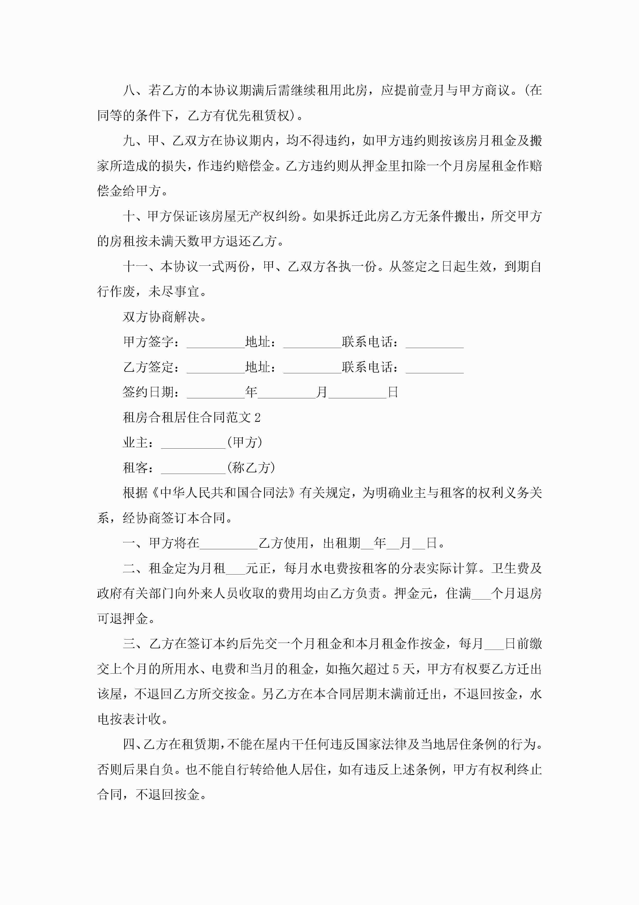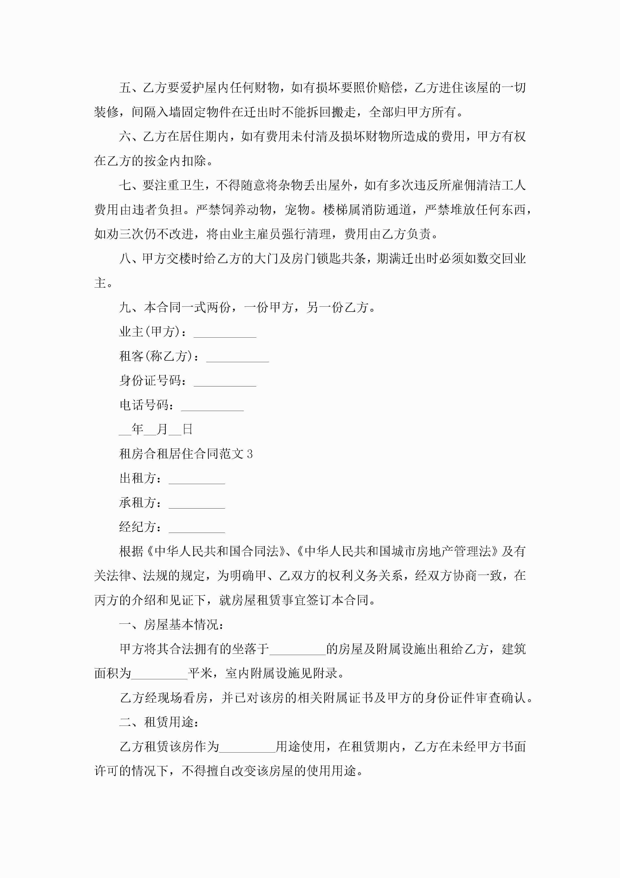 租房合租居住合同范文5篇jugei3月23日 01:48发布关注227 租房合租居住合同范文5篇此内容为付费资源,请付费后查看¥10.9 单篇文档限时特惠¥15个人会员开通企业会员开通立即下载无需登陆!可直接快捷下载单个模板付费资源© 版权声明THE ENDWord模板# 实用文档# 实用模板# 合同模板# 租房合同 如有问题,可点击最底部“联系我们”联系客服 分享QQ空间微博QQ好友海报分享复制链接收藏