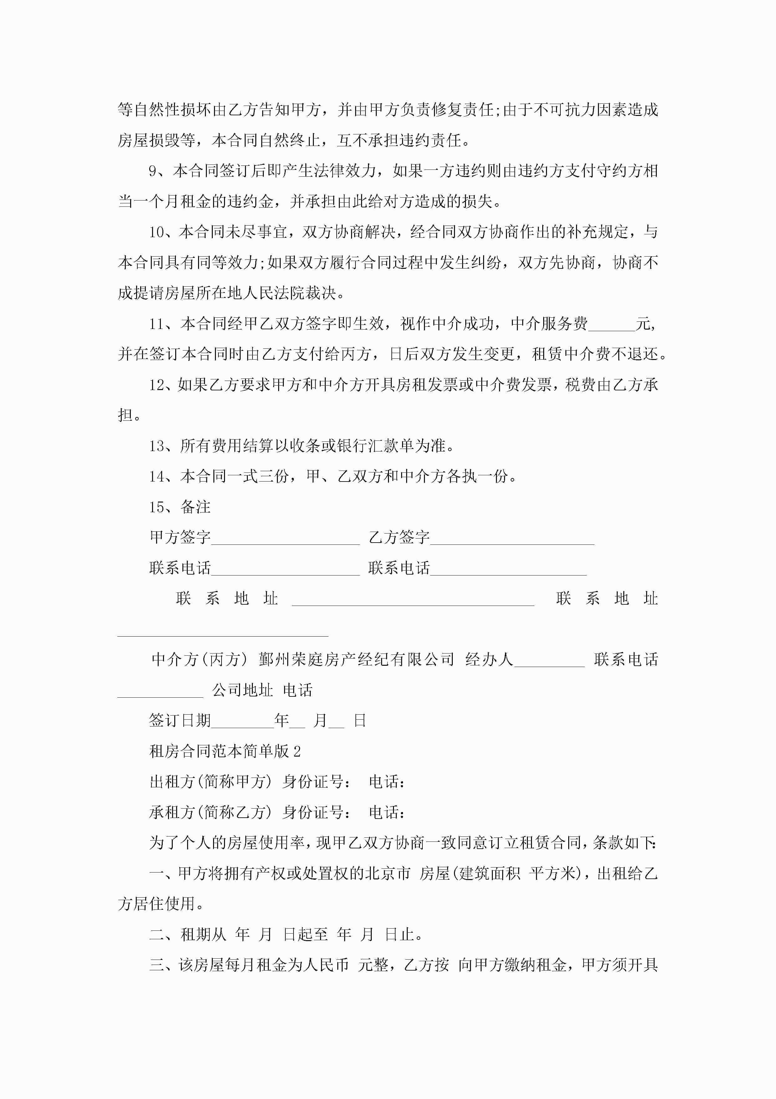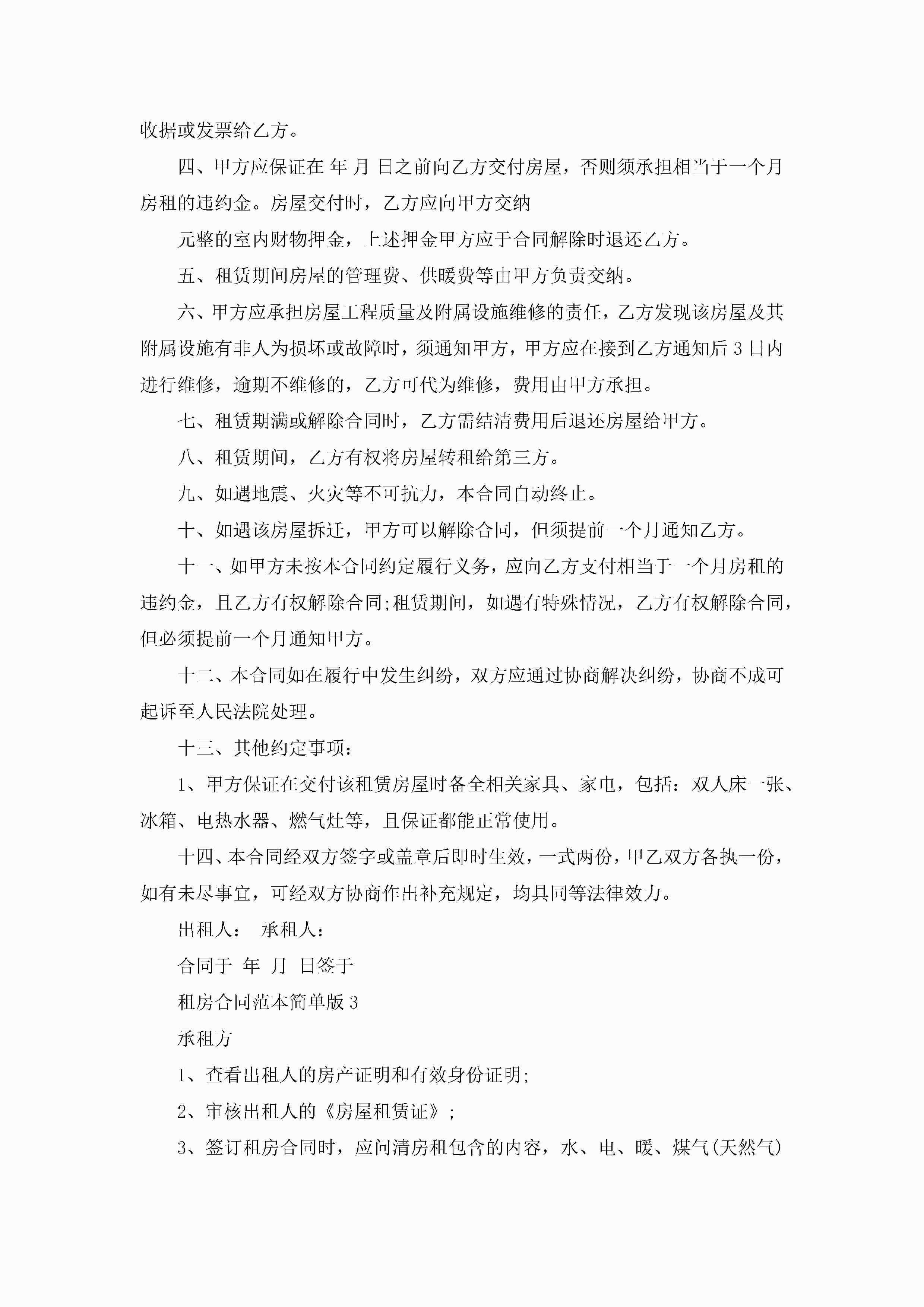 租房合同范本简单版(八篇)jugei3月23日 01:48发布关注282 租房合同范本简单版(八篇)此内容为付费资源,请付费后查看¥10.9 单篇文档限时特惠¥15个人会员开通企业会员开通立即下载无需登陆!可直接快捷下载单个模板付费资源© 版权声明THE ENDWord模板# 实用文档# 实用模板# 合同模板# 租房合同 如有问题,可点击最底部“联系我们”联系客服 分享QQ空间微博QQ好友海报分享复制链接收藏