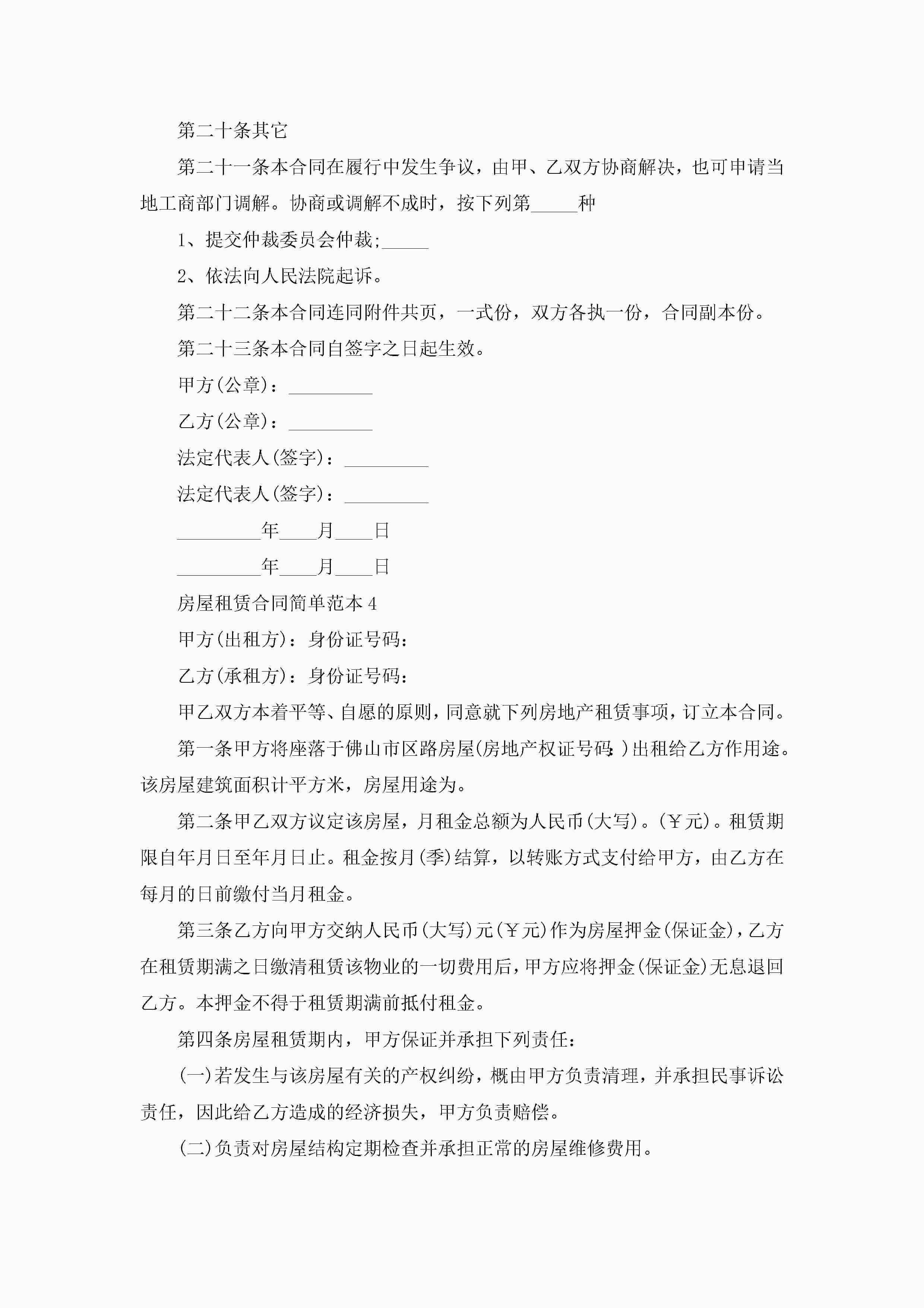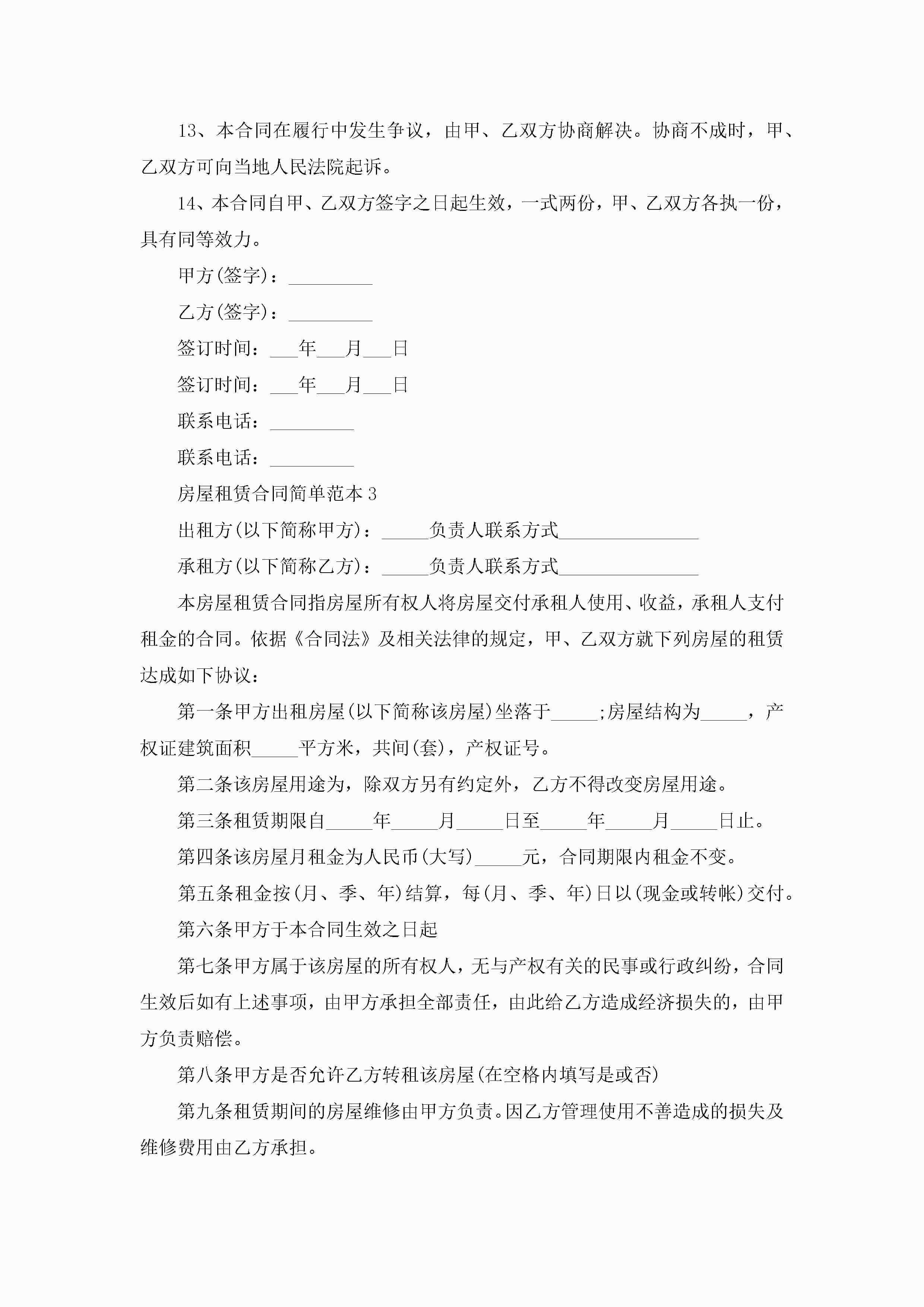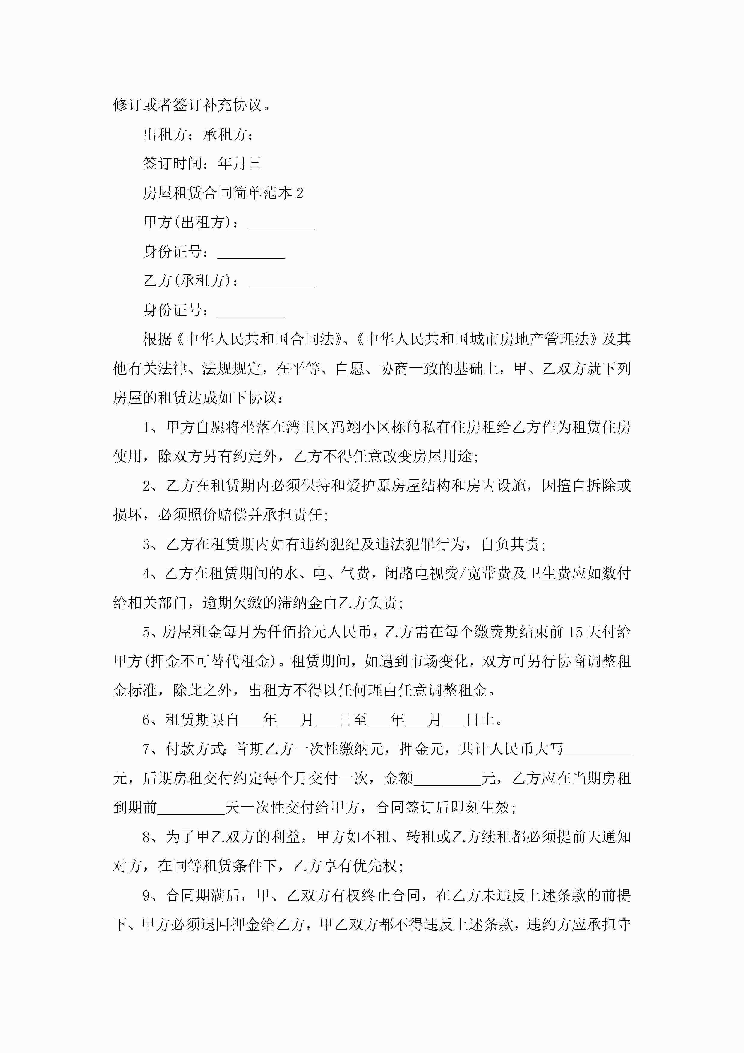 房屋租赁合同简单最新范本jugei3月23日 01:48发布关注323 房屋租赁合同简单最新范本此内容为付费资源,请付费后查看¥10.9 单篇文档限时特惠¥15个人会员开通企业会员开通立即下载无需登陆!可直接快捷下载单个模板付费资源© 版权声明THE ENDWord模板# 实用文档# 实用模板# 合同模板# 租房合同 如有问题,可点击最底部“联系我们”联系客服 分享QQ空间微博QQ好友海报分享复制链接收藏