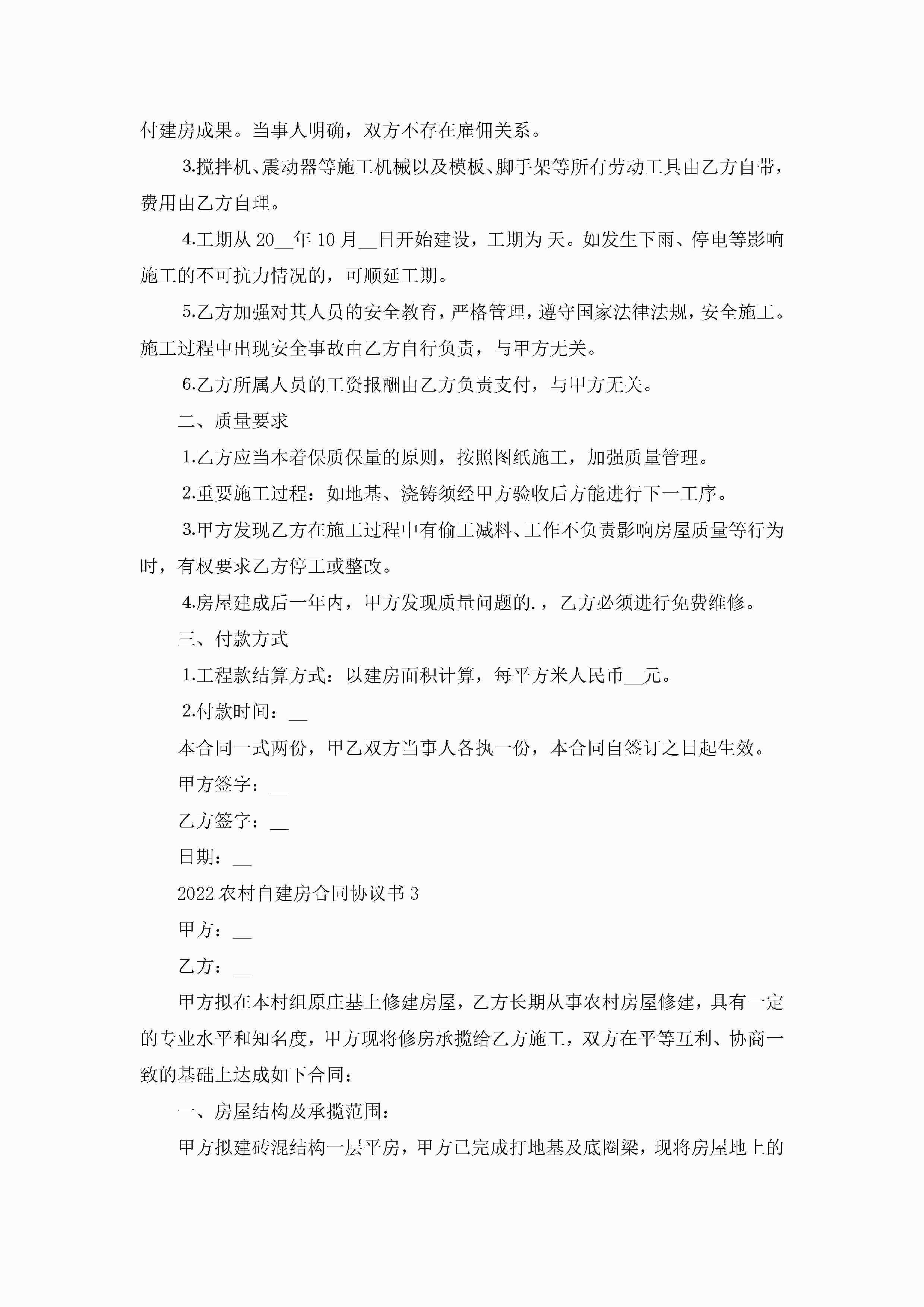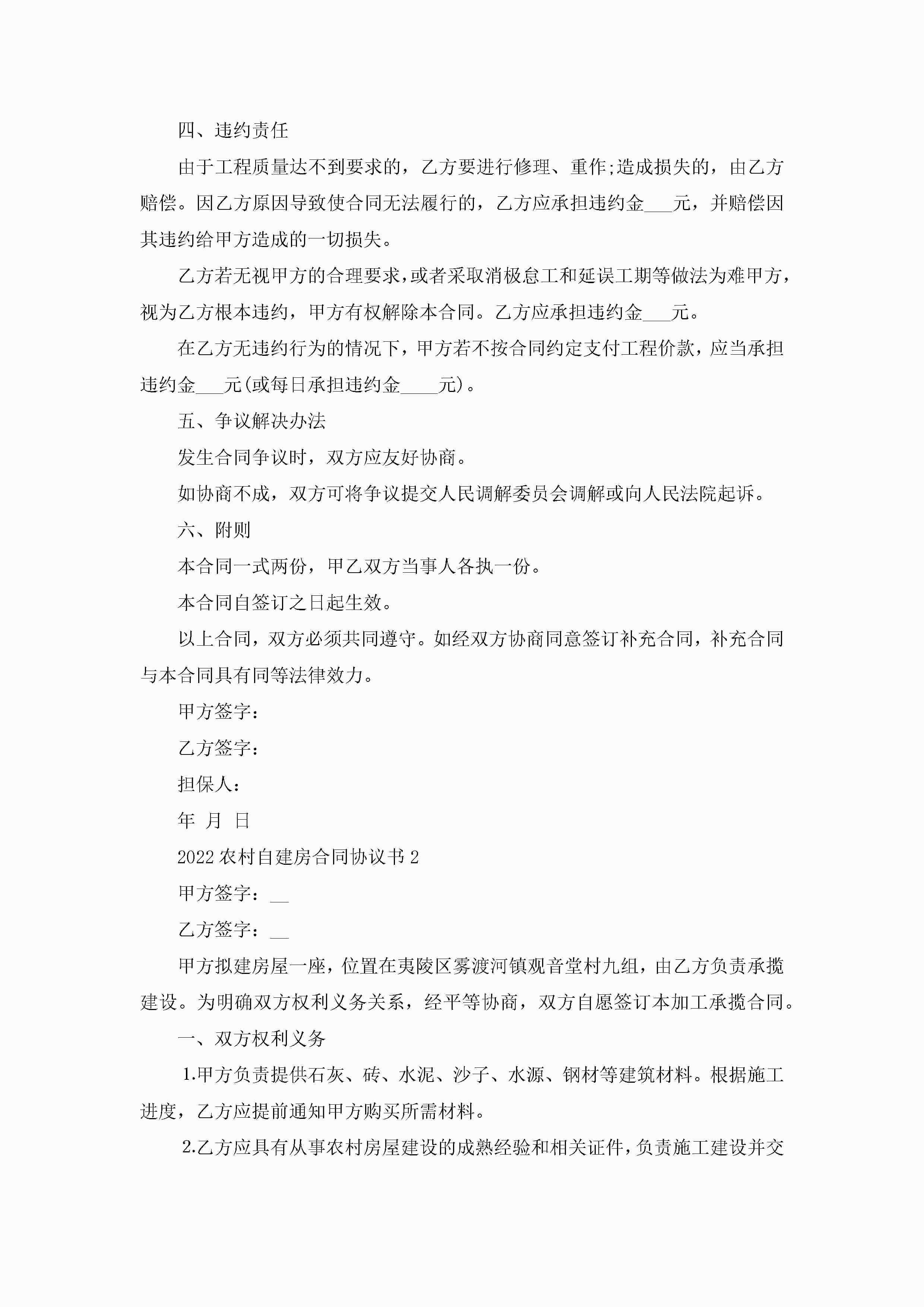 2022农村自建房合同协议书5篇(精选)jugei3月23日 01:48发布关注305 2022农村自建房合同协议书5篇(精选)此内容为付费资源,请付费后查看¥10.9 单篇文档限时特惠¥15个人会员开通企业会员开通立即下载无需登陆!可直接快捷下载单个模板付费资源© 版权声明THE ENDWord模板# 实用文档# 实用模板# 合同模板# 租房合同 如有问题,可点击最底部“联系我们”联系客服 分享QQ空间微博QQ好友海报分享复制链接收藏