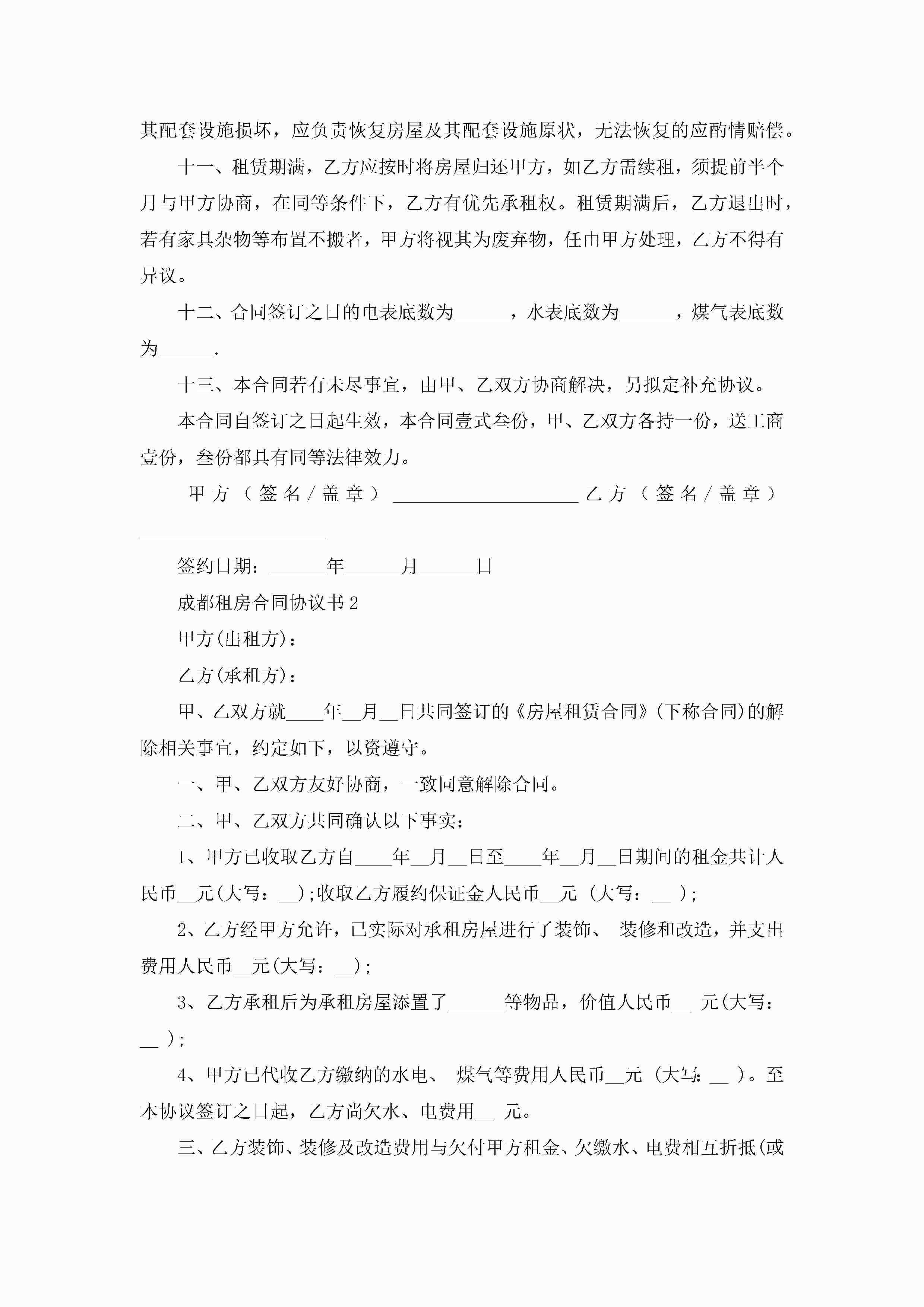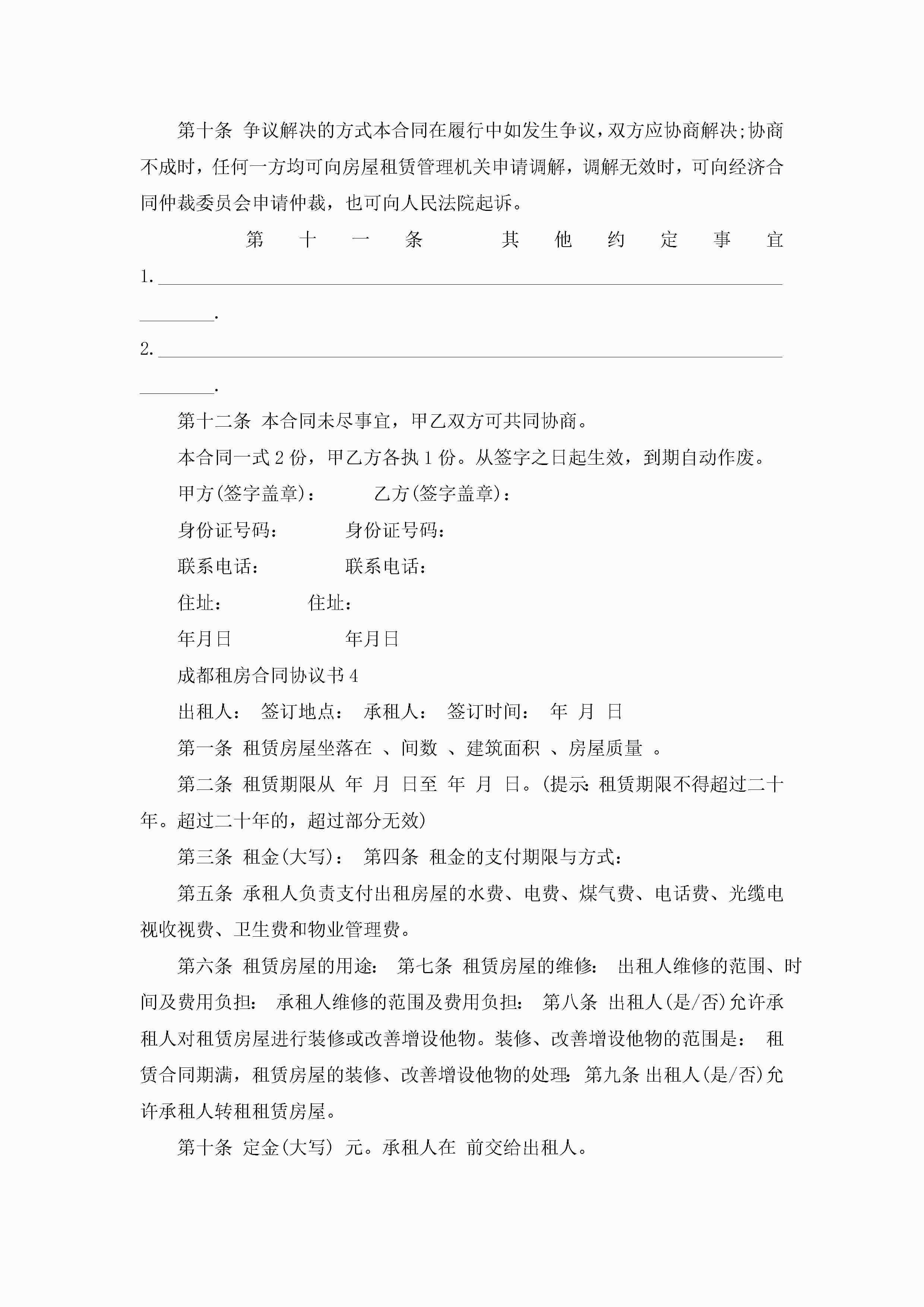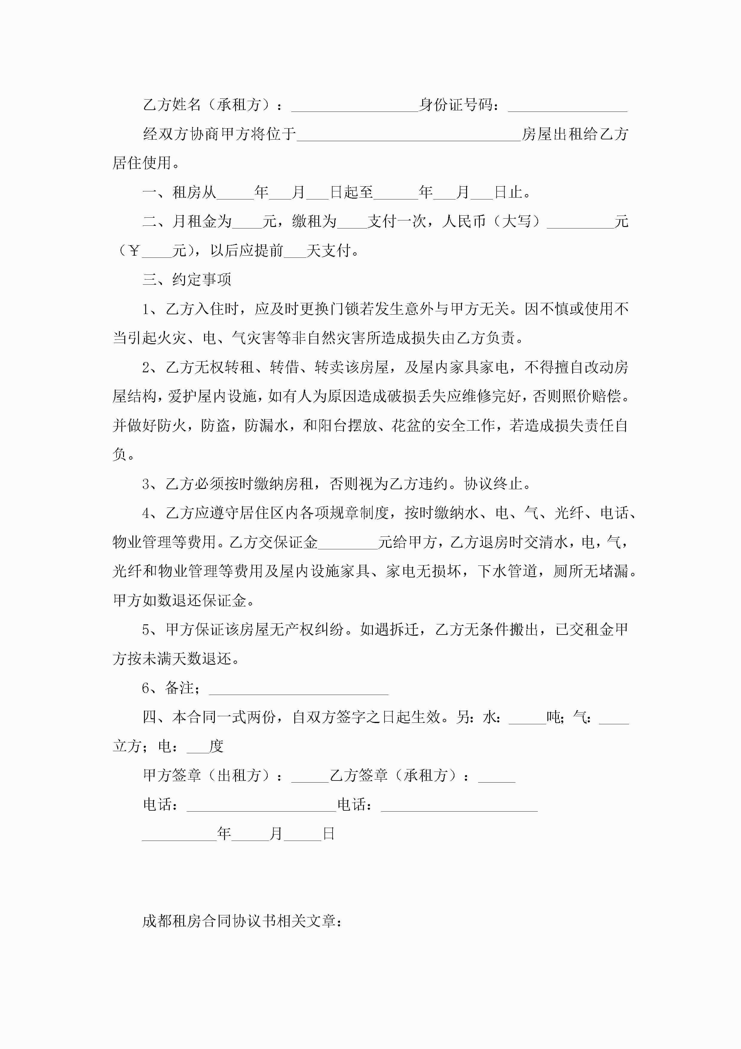 成都租房合同协议书5篇jugei3月23日 01:48发布关注344 成都租房合同协议书5篇此内容为付费资源,请付费后查看¥10.9 单篇文档限时特惠¥15个人会员开通企业会员开通立即下载无需登陆!可直接快捷下载单个模板付费资源© 版权声明THE ENDWord模板# 实用文档# 实用模板# 合同模板# 租房合同 如有问题,可点击最底部“联系我们”联系客服 分享QQ空间微博QQ好友海报分享复制链接收藏