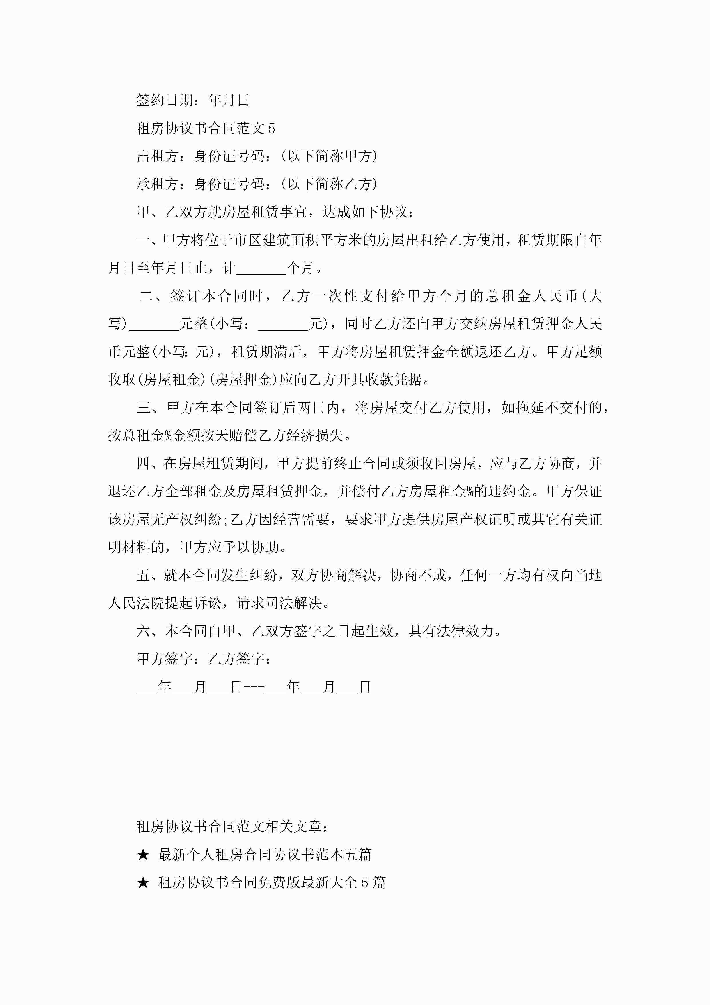 租房协议书合同最新范文jugei3月23日 01:48发布关注318 租房协议书合同最新范文此内容为付费资源,请付费后查看¥10.9 单篇文档限时特惠¥15个人会员开通企业会员开通立即下载无需登陆!可直接快捷下载单个模板付费资源© 版权声明THE ENDWord模板# 实用文档# 实用模板# 合同模板# 租房合同 如有问题,可点击最底部“联系我们”联系客服 分享QQ空间微博QQ好友海报分享复制链接收藏