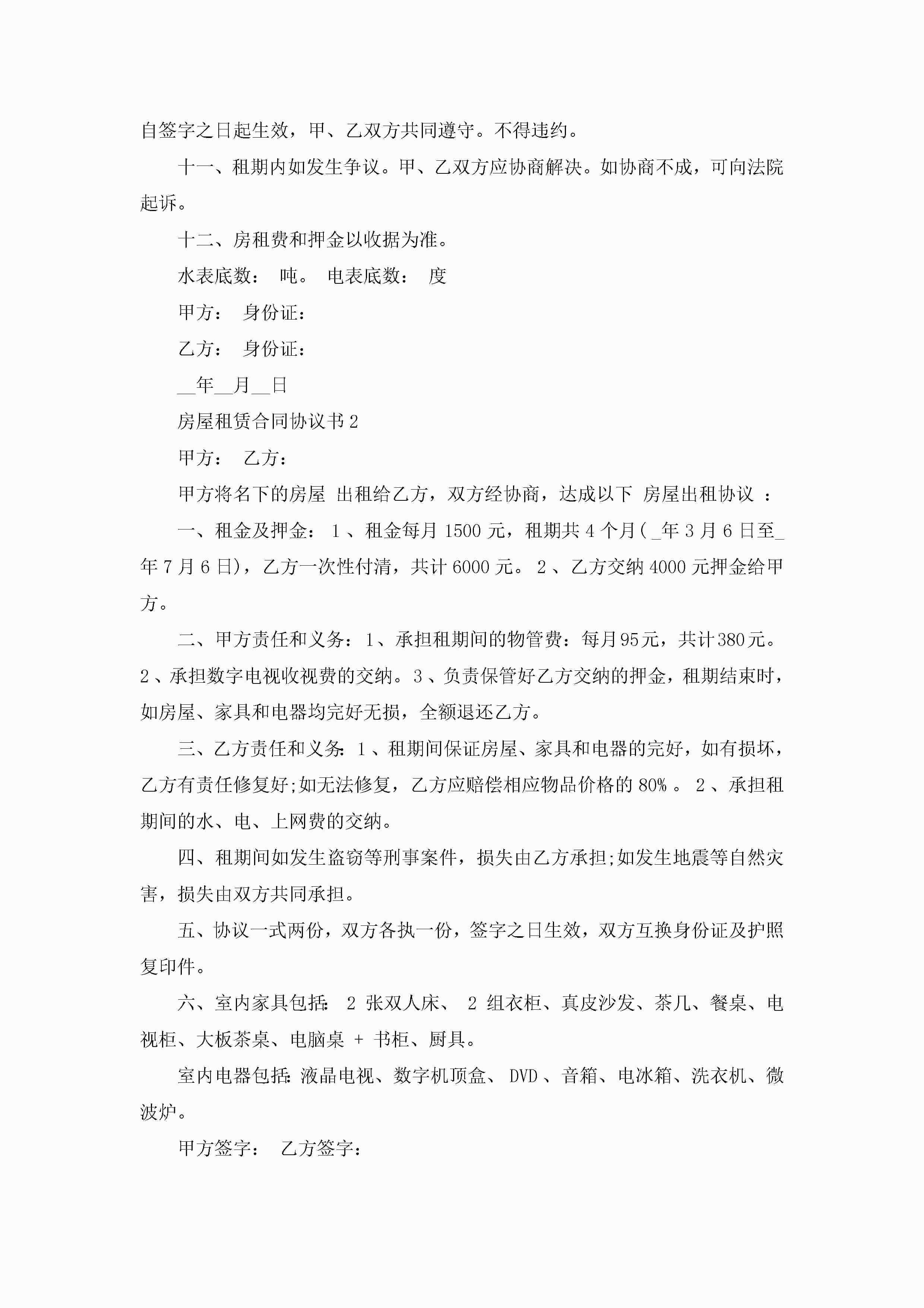房屋租赁合同协议书可打印范文(10篇)jugei3月23日 01:48发布关注294 房屋租赁合同协议书可打印范文(10篇)此内容为付费资源,请付费后查看¥10.9 单篇文档限时特惠¥15个人会员开通企业会员开通立即下载无需登陆!可直接快捷下载单个模板付费资源© 版权声明THE ENDWord模板# 实用文档# 合同模板# 租房合同# 房屋租赁合同协议书可打印(10篇) 如有问题,可点击最底部“联系我们”联系客服 分享QQ空间微博QQ好友海报分享复制链接收藏
