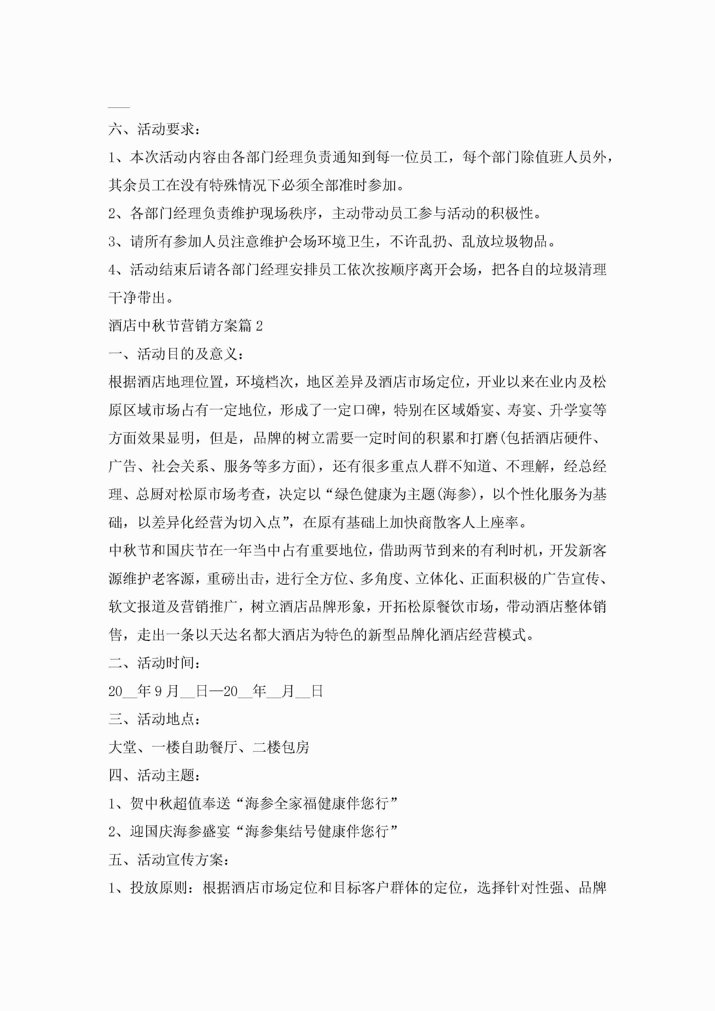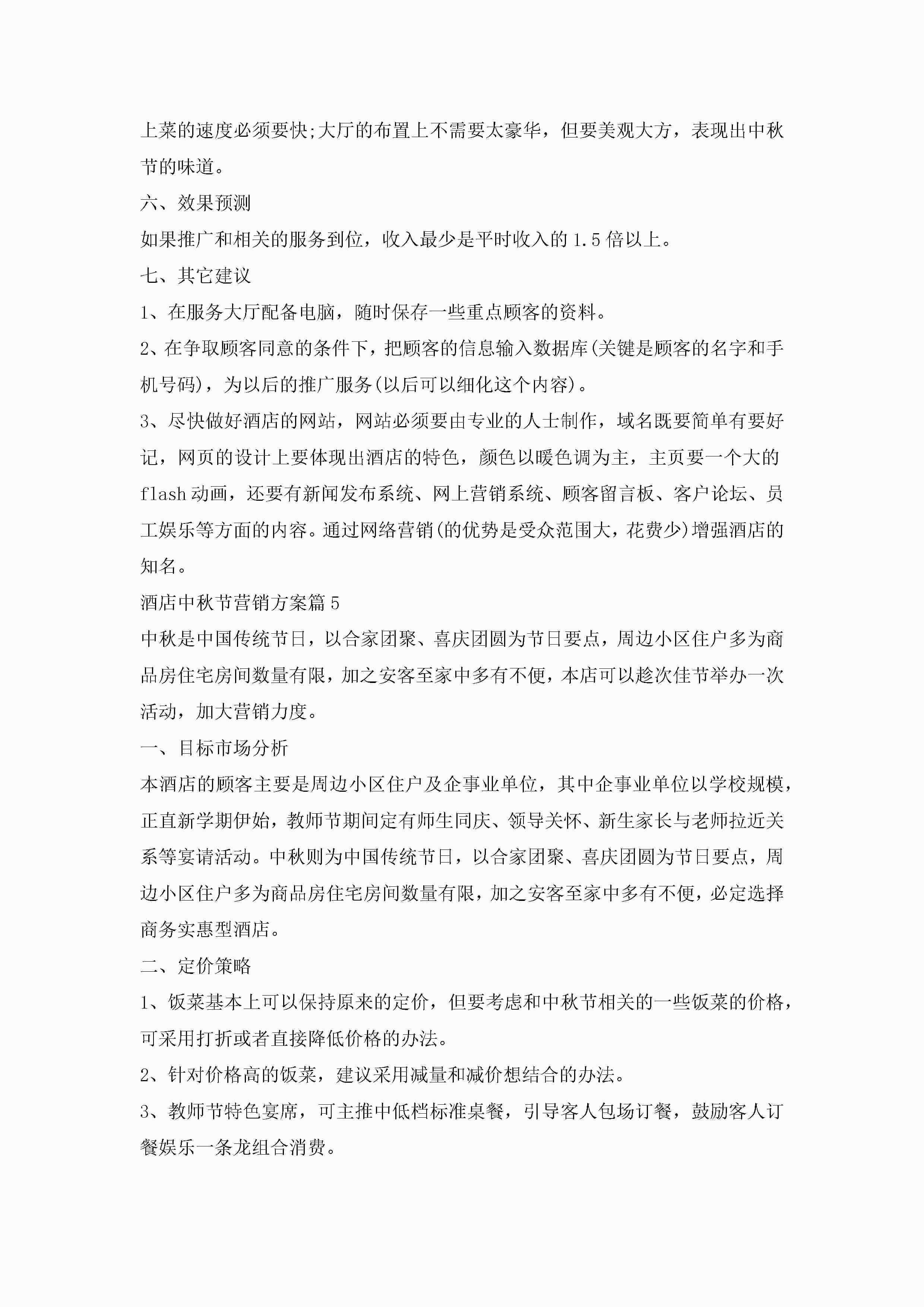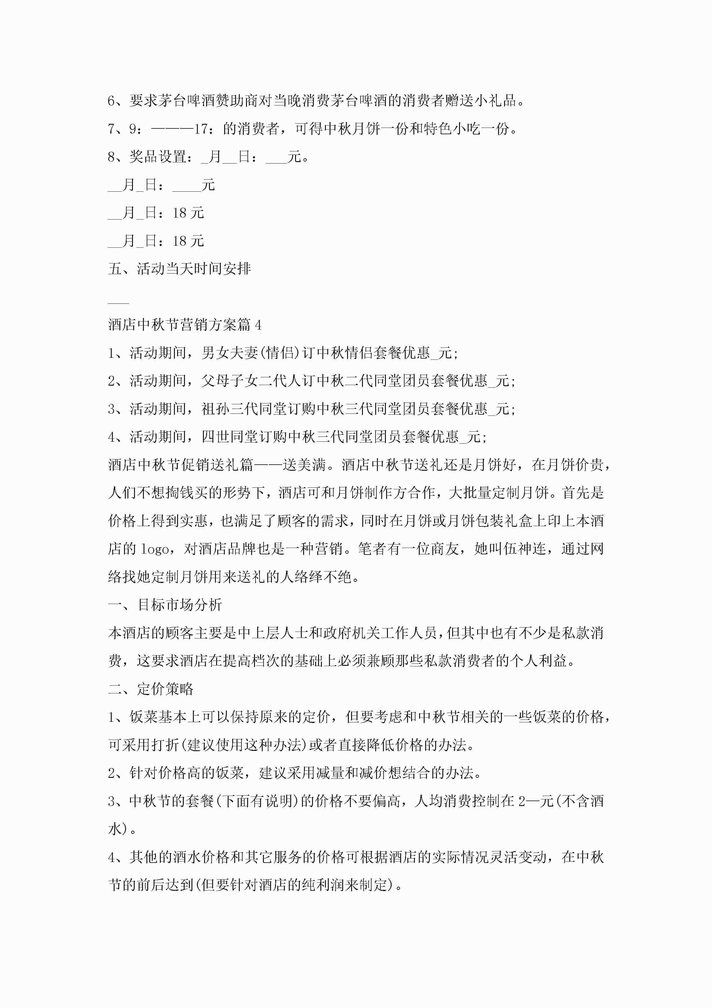 酒店中秋节营销方案最新5篇jugei3月23日 01:48发布关注236 酒店中秋节营销方案最新5篇此内容为付费资源,请付费后查看¥10.9 单篇文档限时特惠¥15个人会员开通企业会员开通立即下载无需登陆!可直接快捷下载单个模板付费资源© 版权声明THE ENDWord模板# 实用文档# 策划书# 工作文档# 营销策划 如有问题,可点击最底部“联系我们”联系客服 分享QQ空间微博QQ好友海报分享复制链接收藏