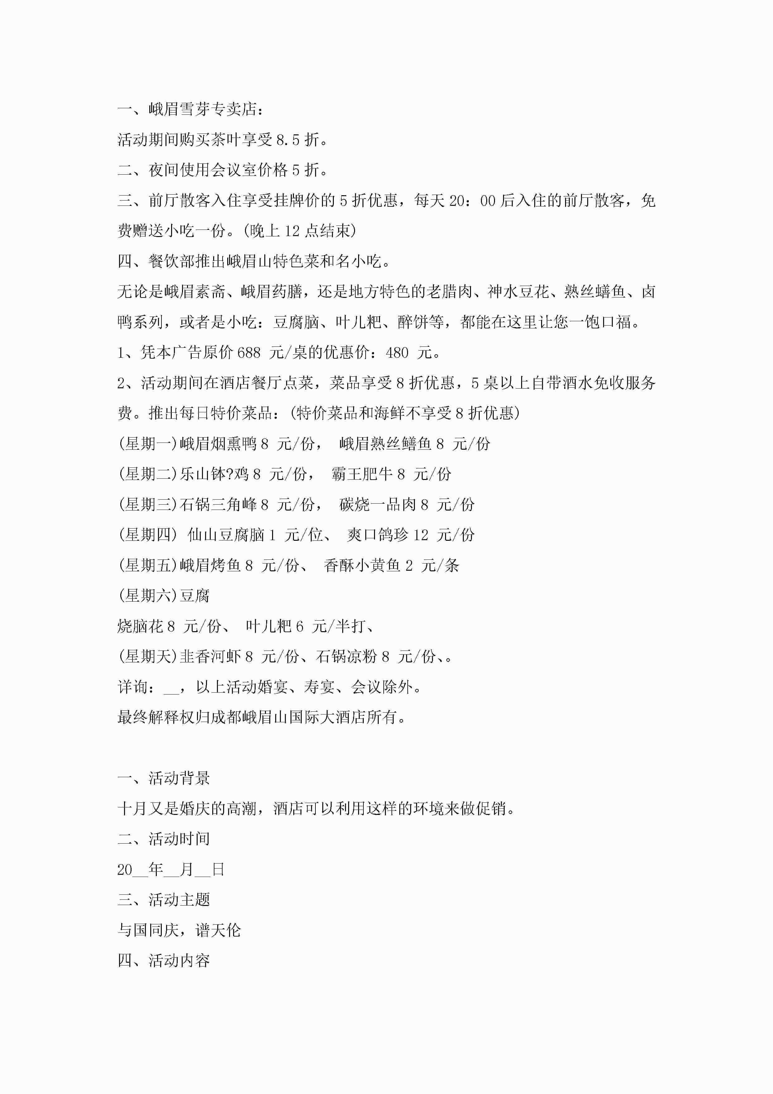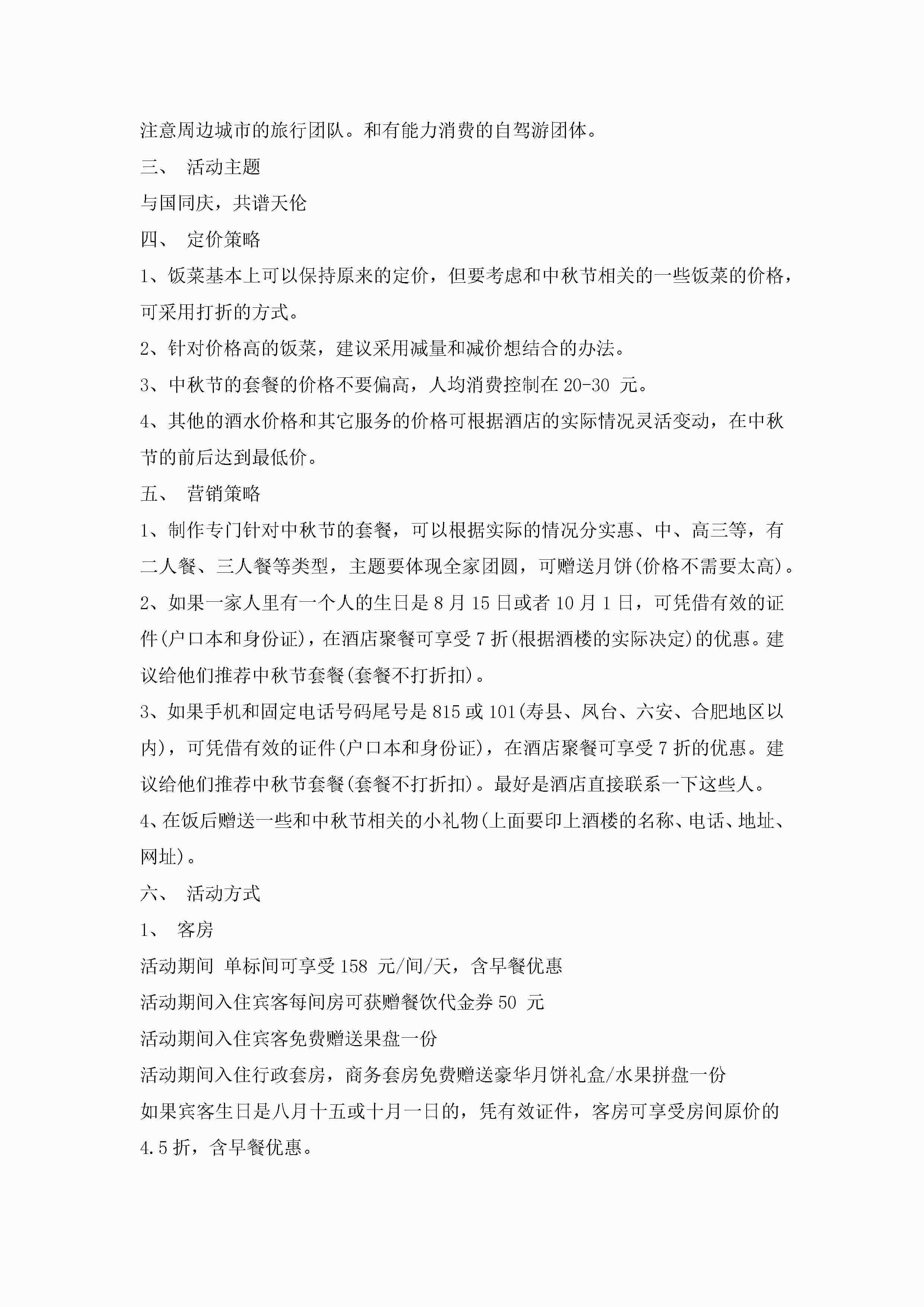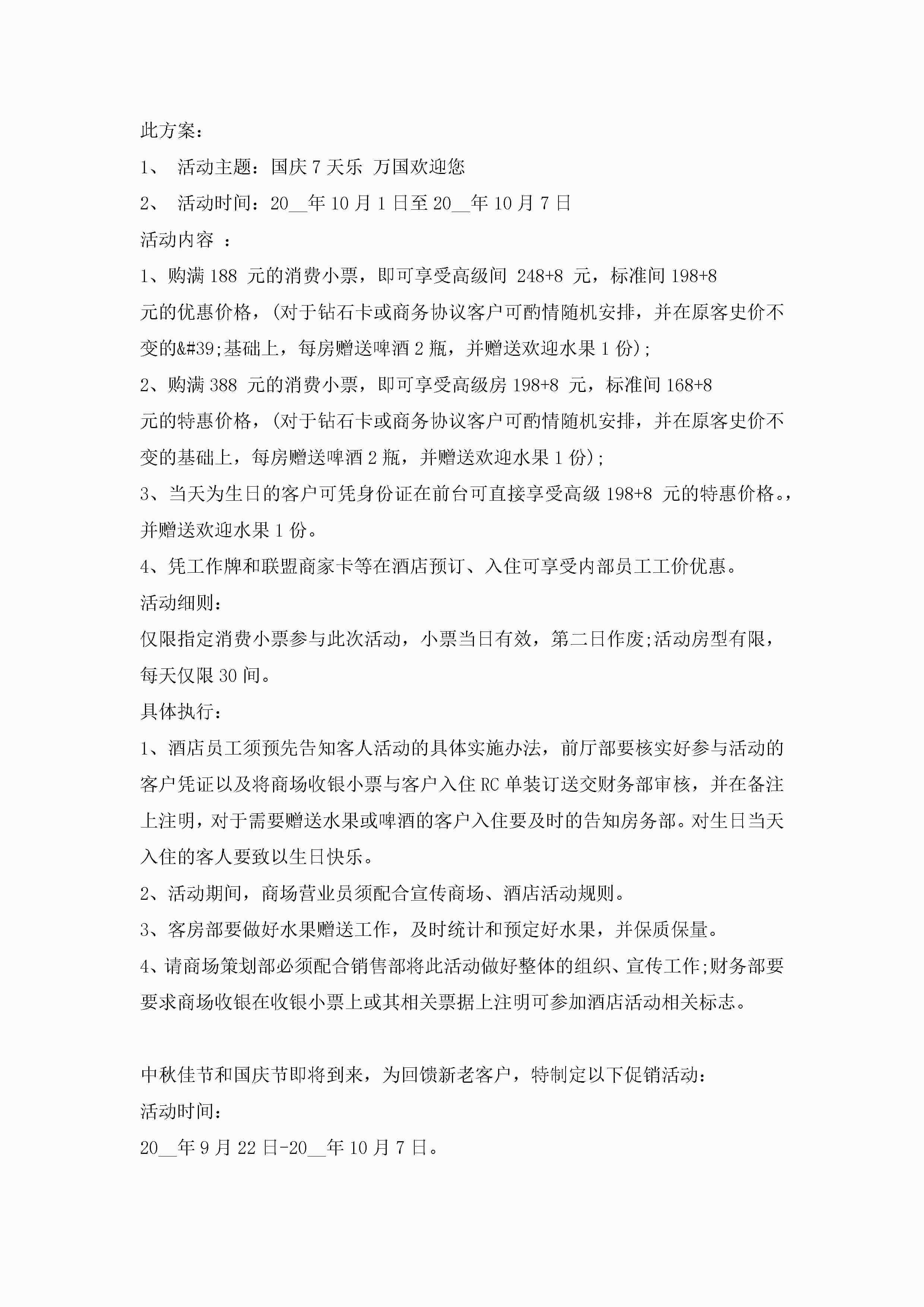 酒店国庆节营销方案最新7篇jugei3月23日 01:49发布关注220 酒店国庆节营销方案最新7篇此内容为付费资源,请付费后查看¥10.9 单篇文档限时特惠¥15个人会员开通企业会员开通立即下载无需登陆!可直接快捷下载单个模板付费资源© 版权声明THE ENDWord模板# 实用文档# 策划书# 工作文档# 营销策划 如有问题,可点击最底部“联系我们”联系客服 分享QQ空间微博QQ好友海报分享复制链接收藏