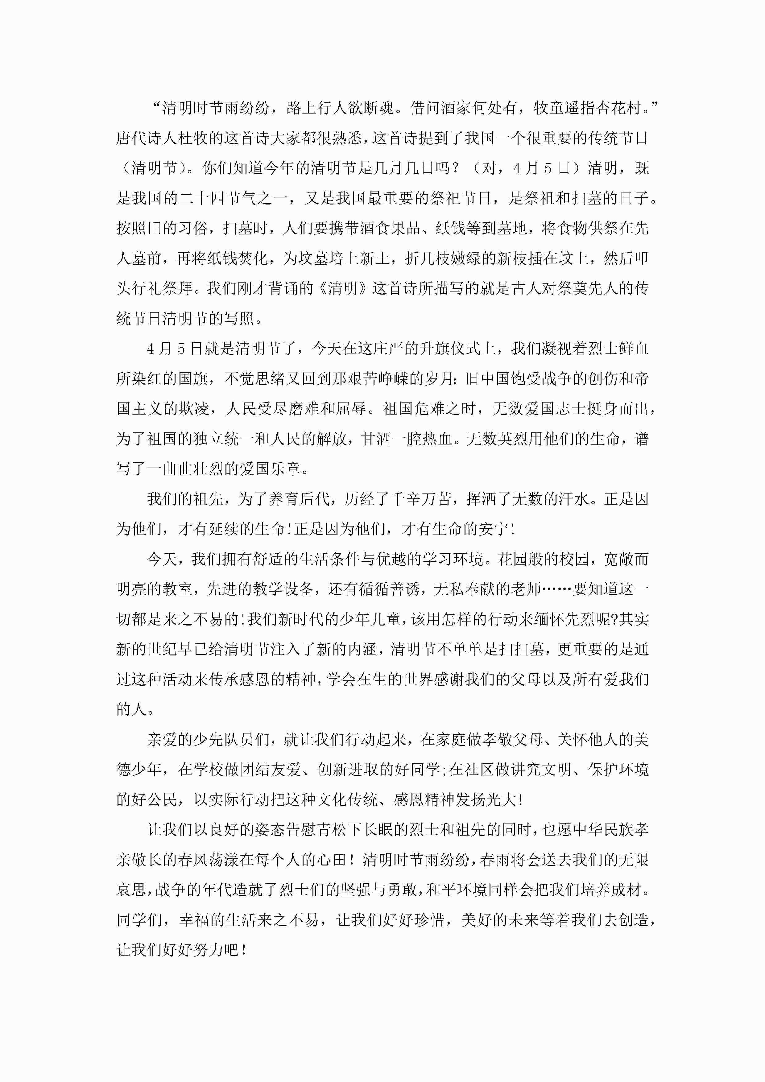 清明节书面发言演讲稿七篇完整版jugei3月23日 01:49发布关注231 清明节书面发言演讲稿七篇完整版此内容为付费资源,请付费后查看¥10.9 单篇文档限时特惠¥15个人会员开通企业会员开通立即下载无需登陆!可直接快捷下载单个模板付费资源© 版权声明THE ENDWord模板# 实用文档# 演讲稿# 经典演讲稿# 实用写作 如有问题,可点击最底部“联系我们”联系客服 分享QQ空间微博QQ好友海报分享复制链接收藏