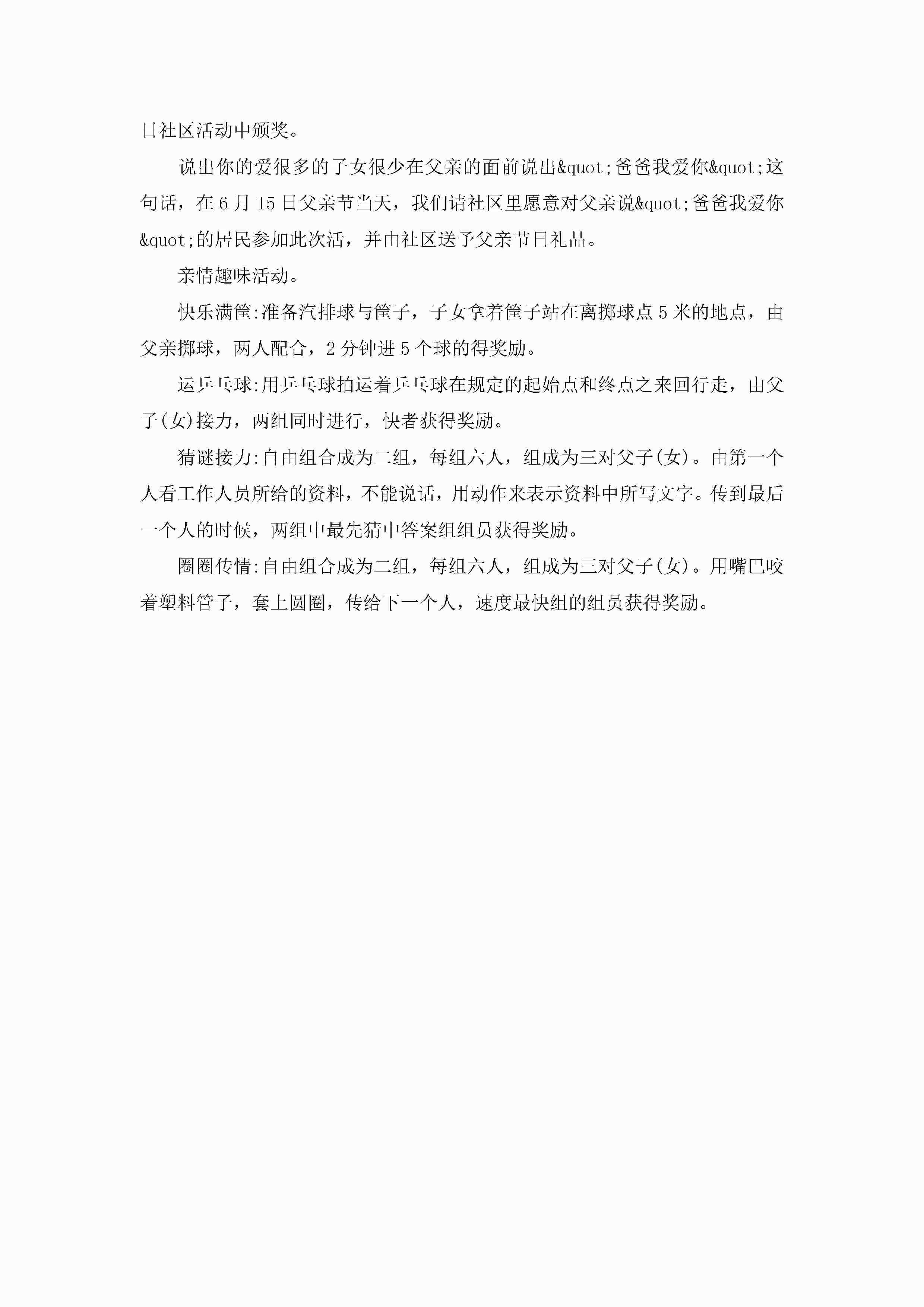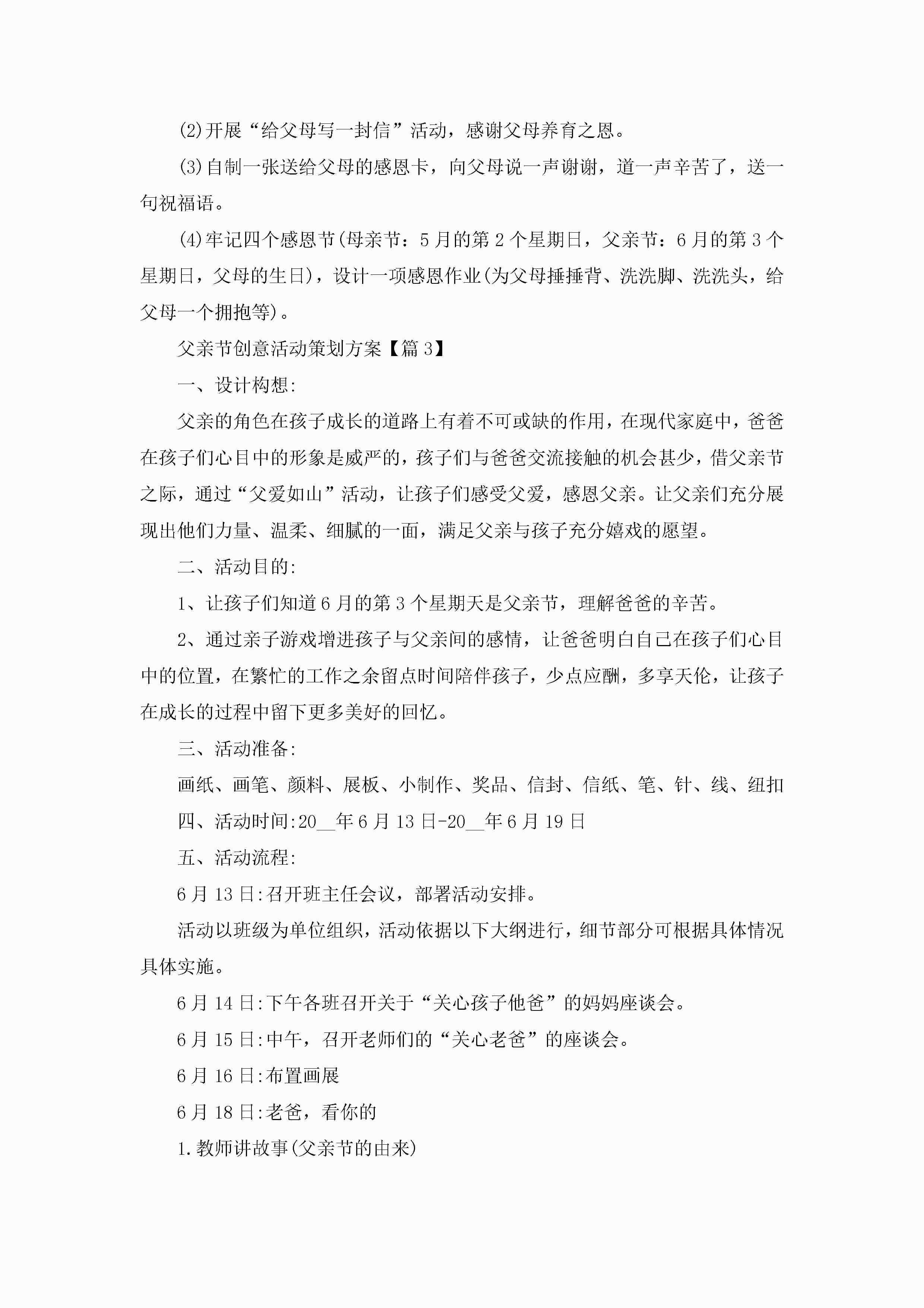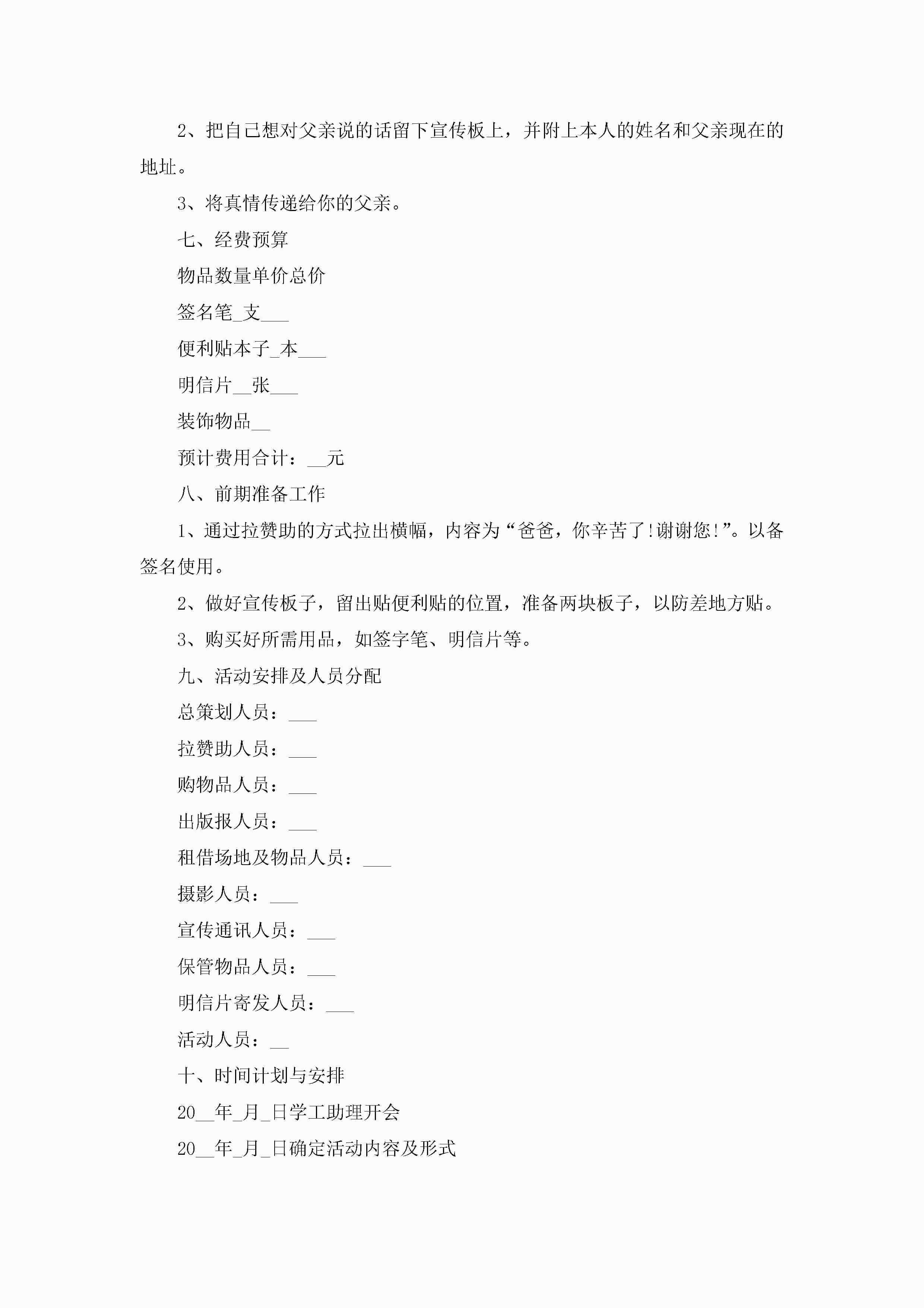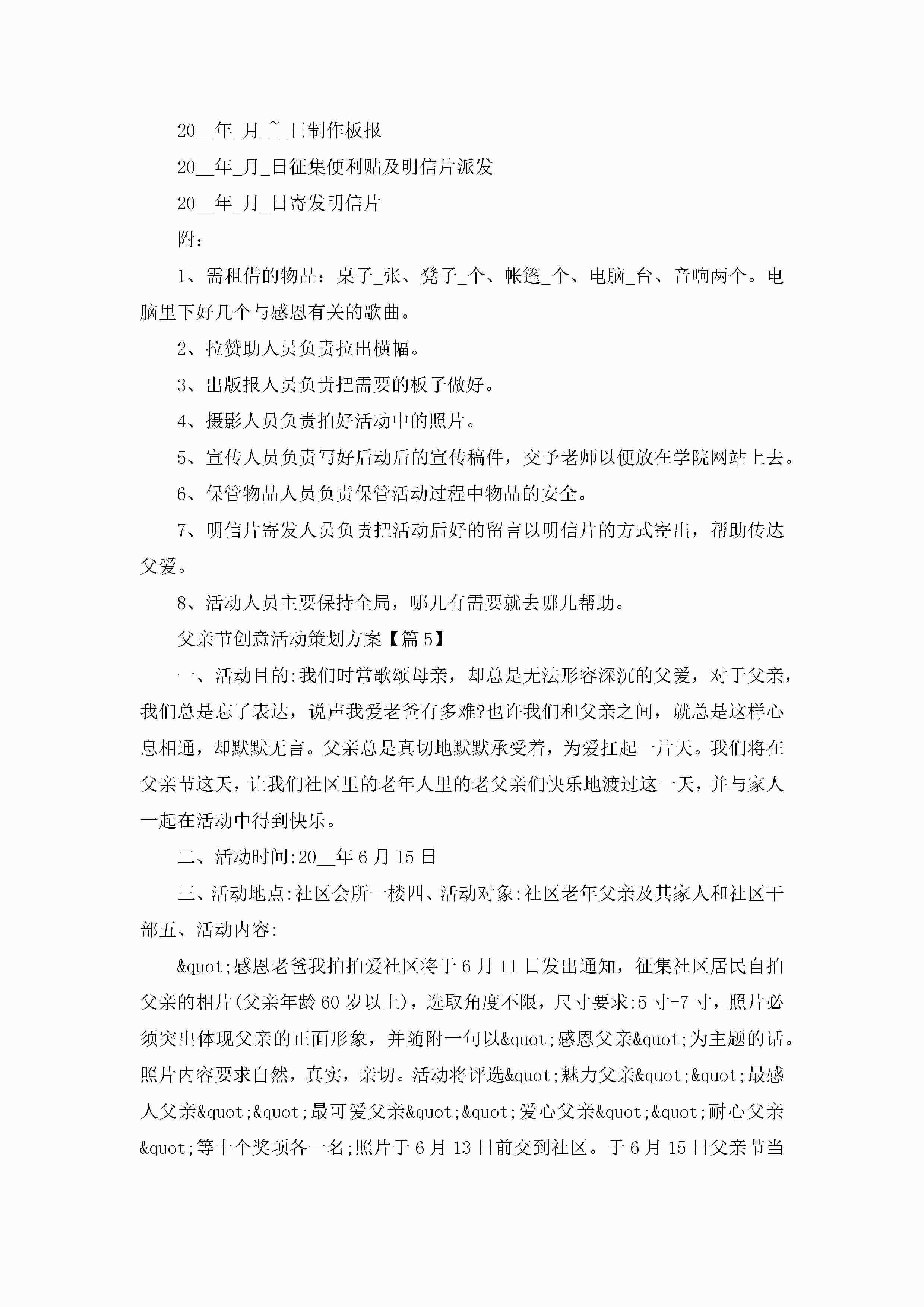 父亲节创意活动策划方案范文5篇jugei3月23日 01:49发布关注188 父亲节创意活动策划方案范文5篇此内容为付费资源,请付费后查看¥10.9 单篇文档限时特惠¥15个人会员开通企业会员开通立即下载无需登陆!可直接快捷下载单个模板付费资源© 版权声明THE ENDWord模板# 实用文档# 策划书# 策划方案# 父亲节创意活动策划方案 如有问题,可点击最底部“联系我们”联系客服 分享QQ空间微博QQ好友海报分享复制链接收藏