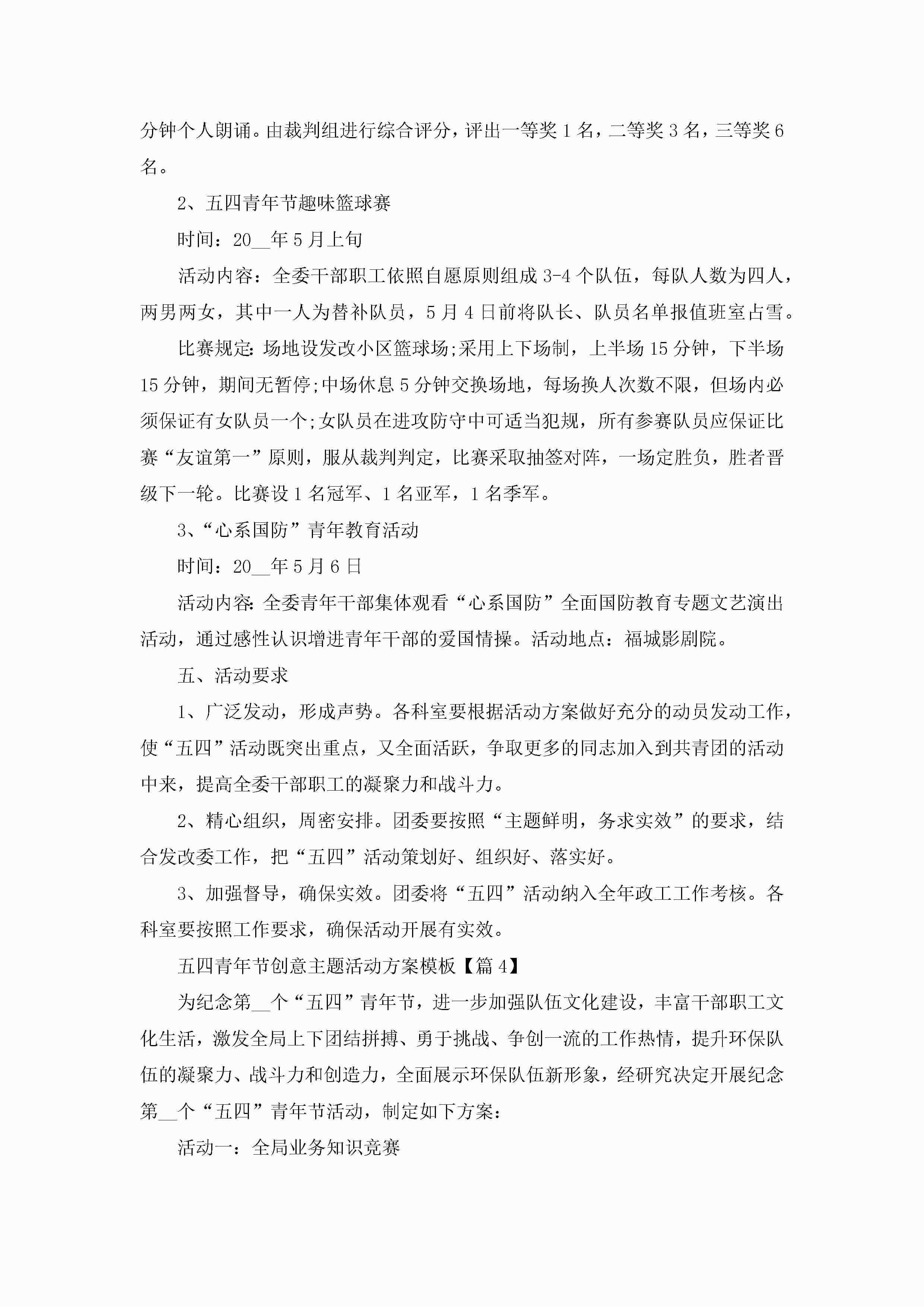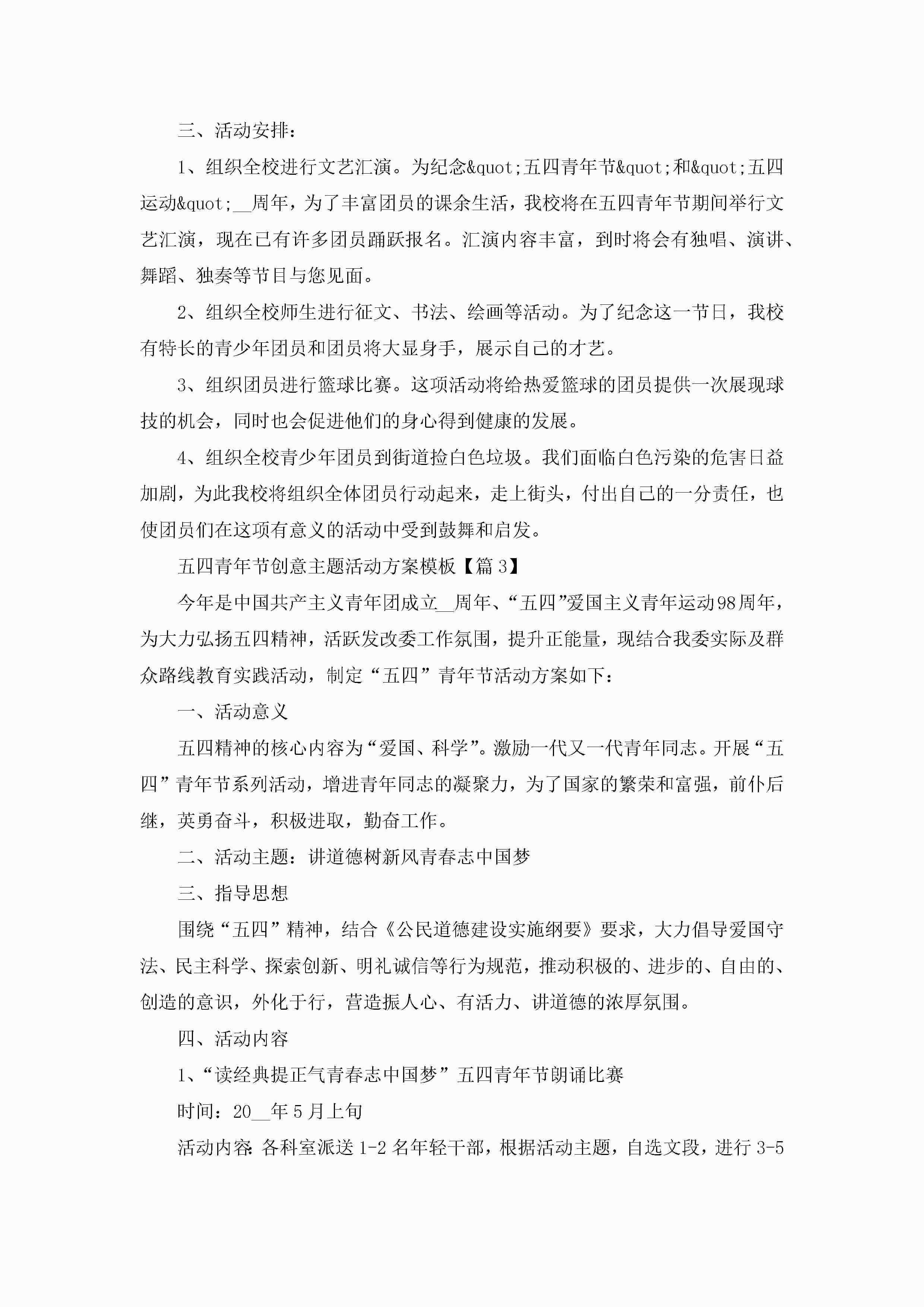 五四青年节创意主题活动方案模板5篇jugei3月23日 01:49发布关注201 五四青年节创意主题活动方案模板5篇此内容为付费资源,请付费后查看¥10.9 单篇文档限时特惠¥15个人会员开通企业会员开通立即下载无需登陆!可直接快捷下载单个模板付费资源© 版权声明THE ENDWord模板# 实用文档# 策划书# 工作文档# 策划方案 如有问题,可点击最底部“联系我们”联系客服 分享QQ空间微博QQ好友海报分享复制链接收藏