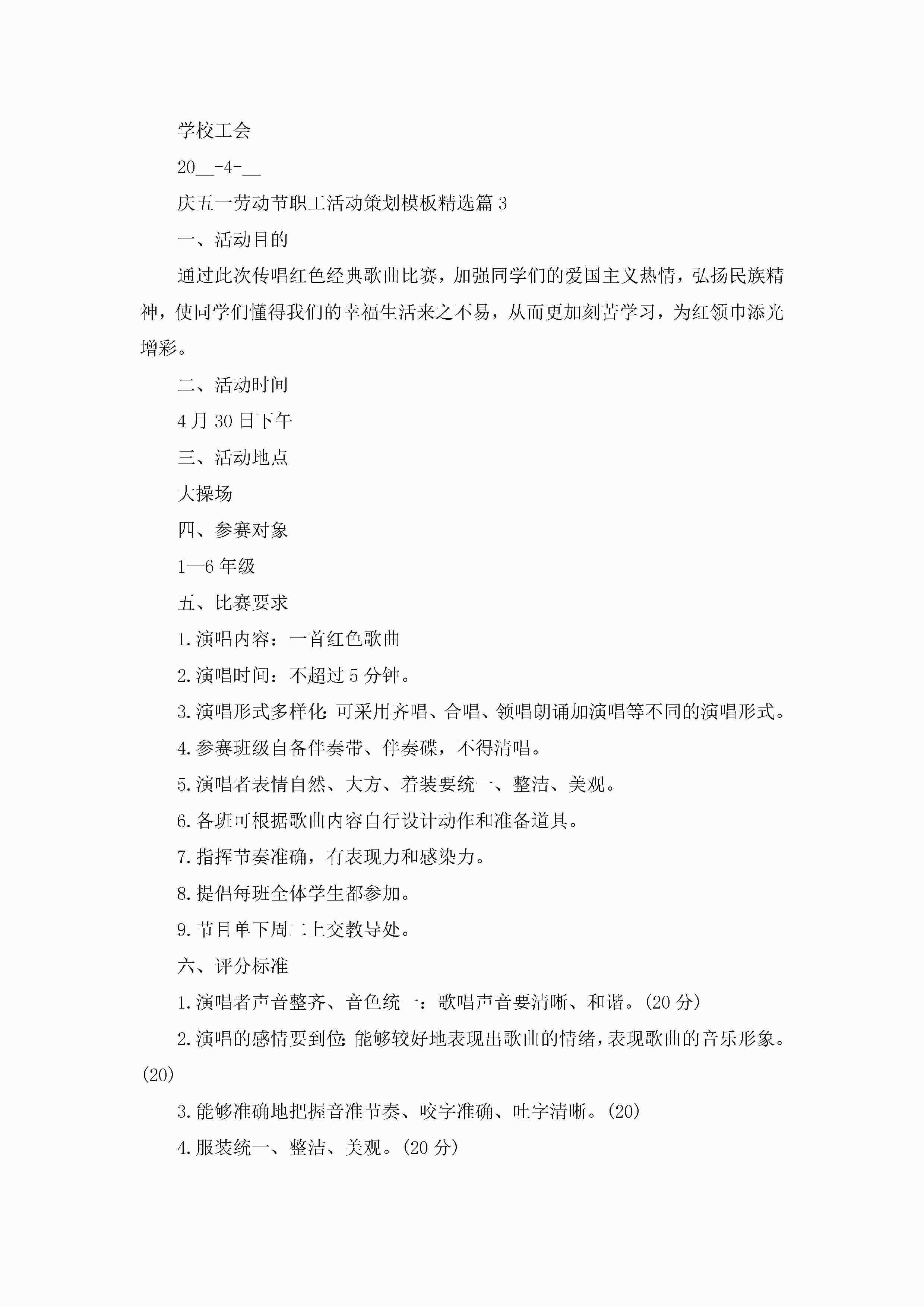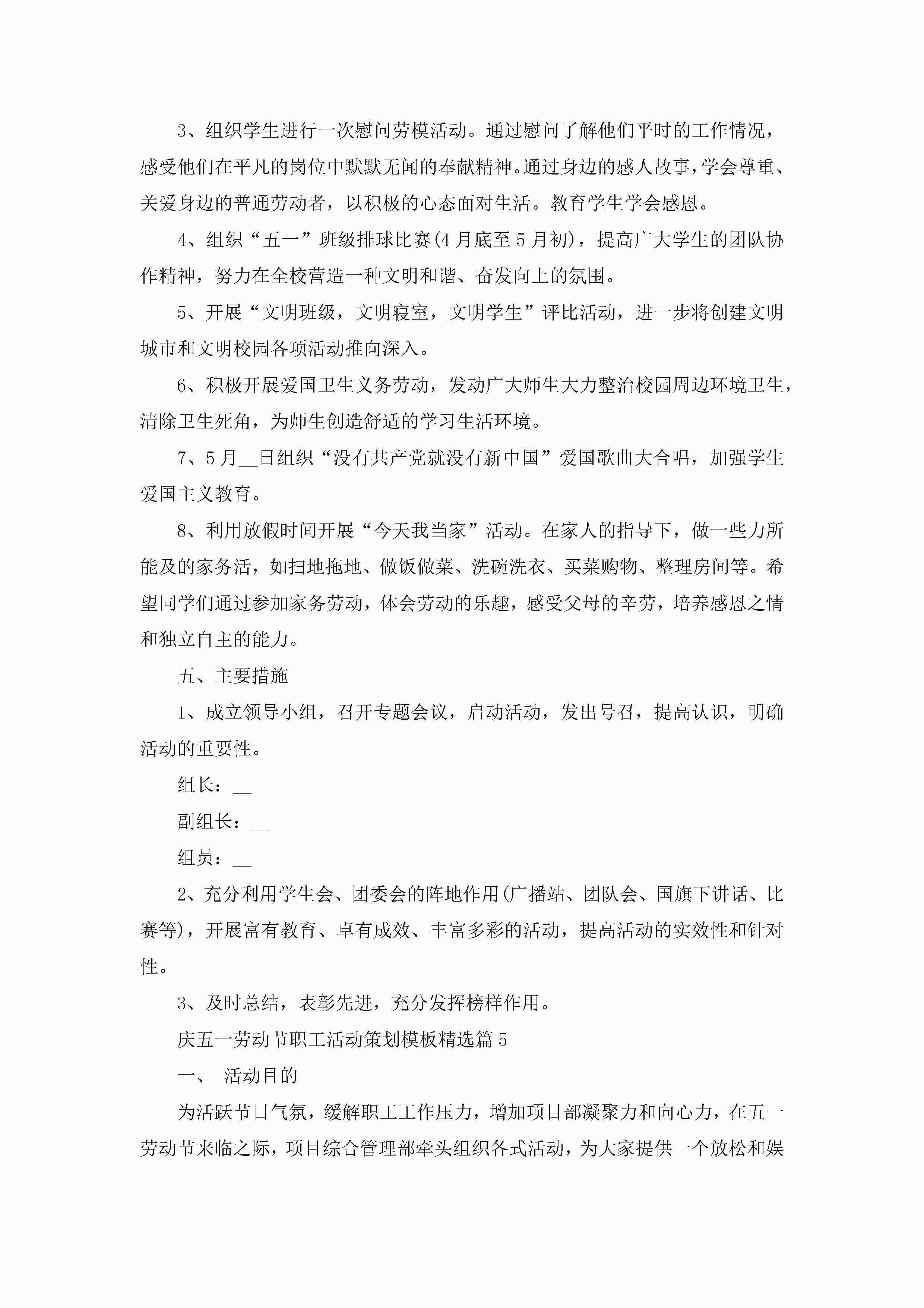 庆五一劳动节职工活动策划方案模板5篇jugei3月23日 01:49发布关注200 庆五一劳动节职工活动策划方案模板5篇此内容为付费资源,请付费后查看¥10.9 单篇文档限时特惠¥15个人会员开通企业会员开通立即下载无需登陆!可直接快捷下载单个模板付费资源© 版权声明THE ENDWord模板# 实用文档# 策划书# 工作文档# 策划方案 如有问题,可点击最底部“联系我们”联系客服 分享QQ空间微博QQ好友海报分享复制链接收藏