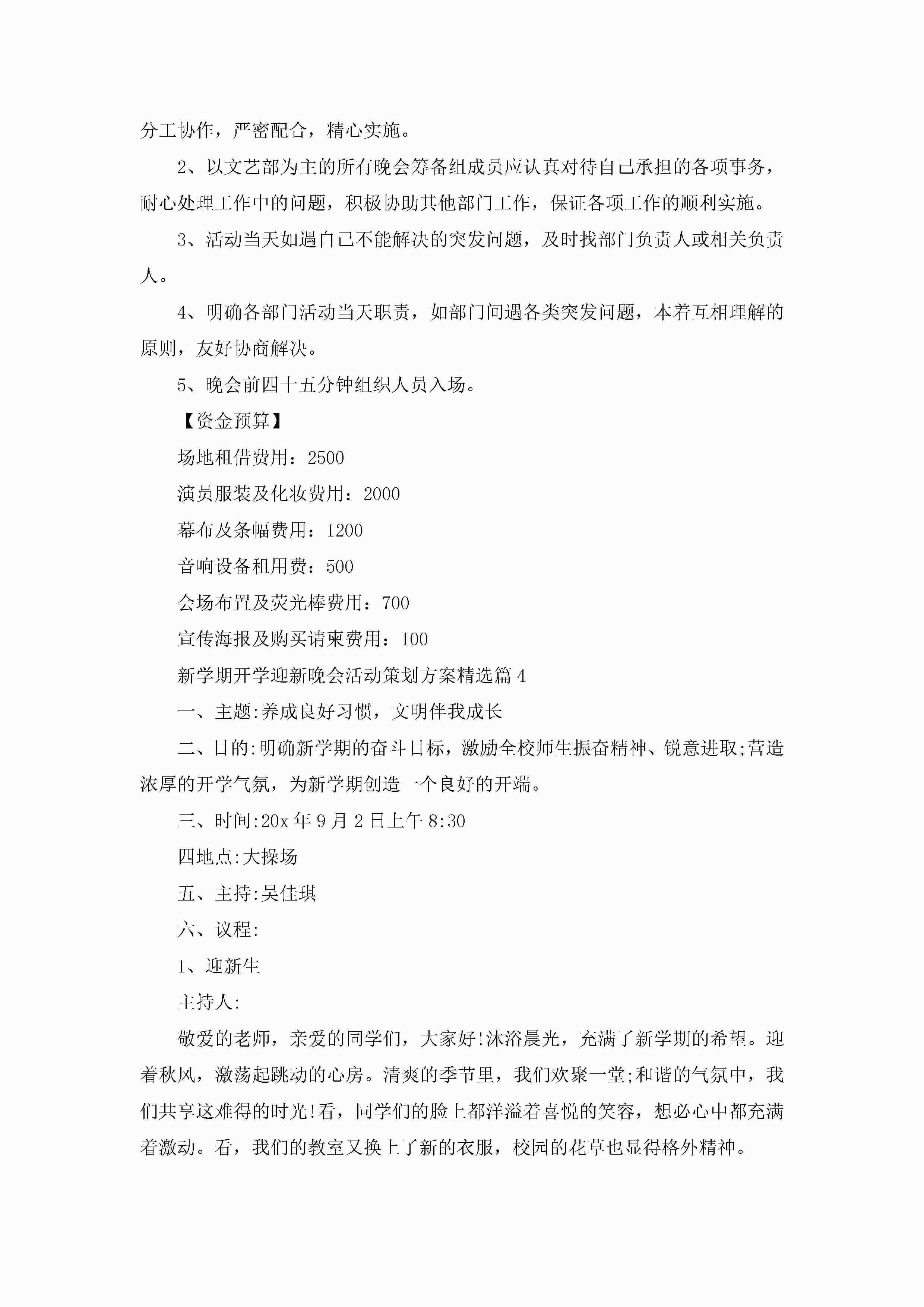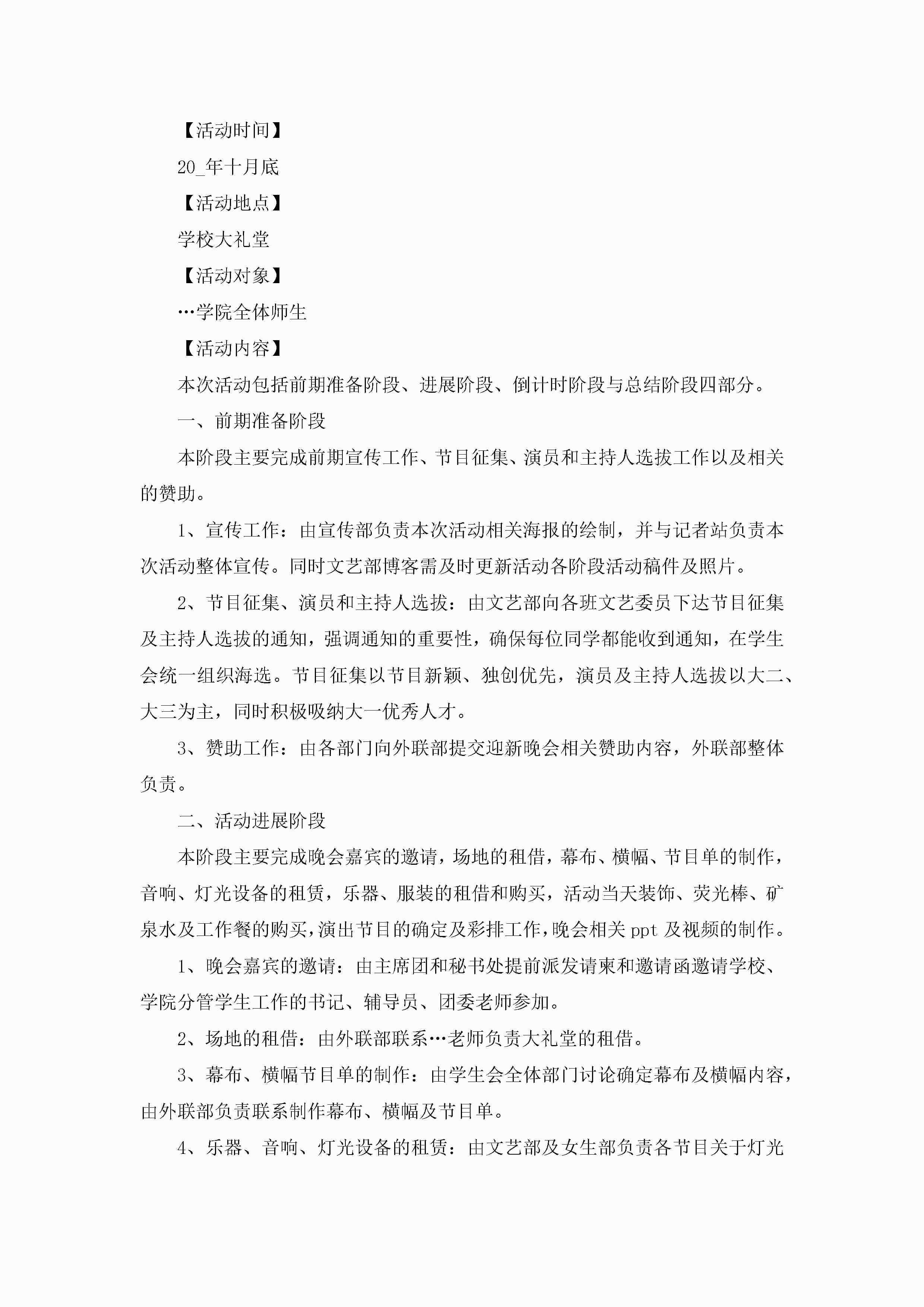 新学期开学迎新晚会活动策划方案5篇jugei3月23日 01:49发布关注216 新学期开学迎新晚会活动策划方案5篇此内容为付费资源,请付费后查看¥10.9 单篇文档限时特惠¥15个人会员开通企业会员开通立即下载无需登陆!可直接快捷下载单个模板付费资源© 版权声明THE ENDWord模板# 实用文档# 策划书# 策划方案# 新学期开学迎新晚会活动策划方案 如有问题,可点击最底部“联系我们”联系客服 分享QQ空间微博QQ好友海报分享复制链接收藏