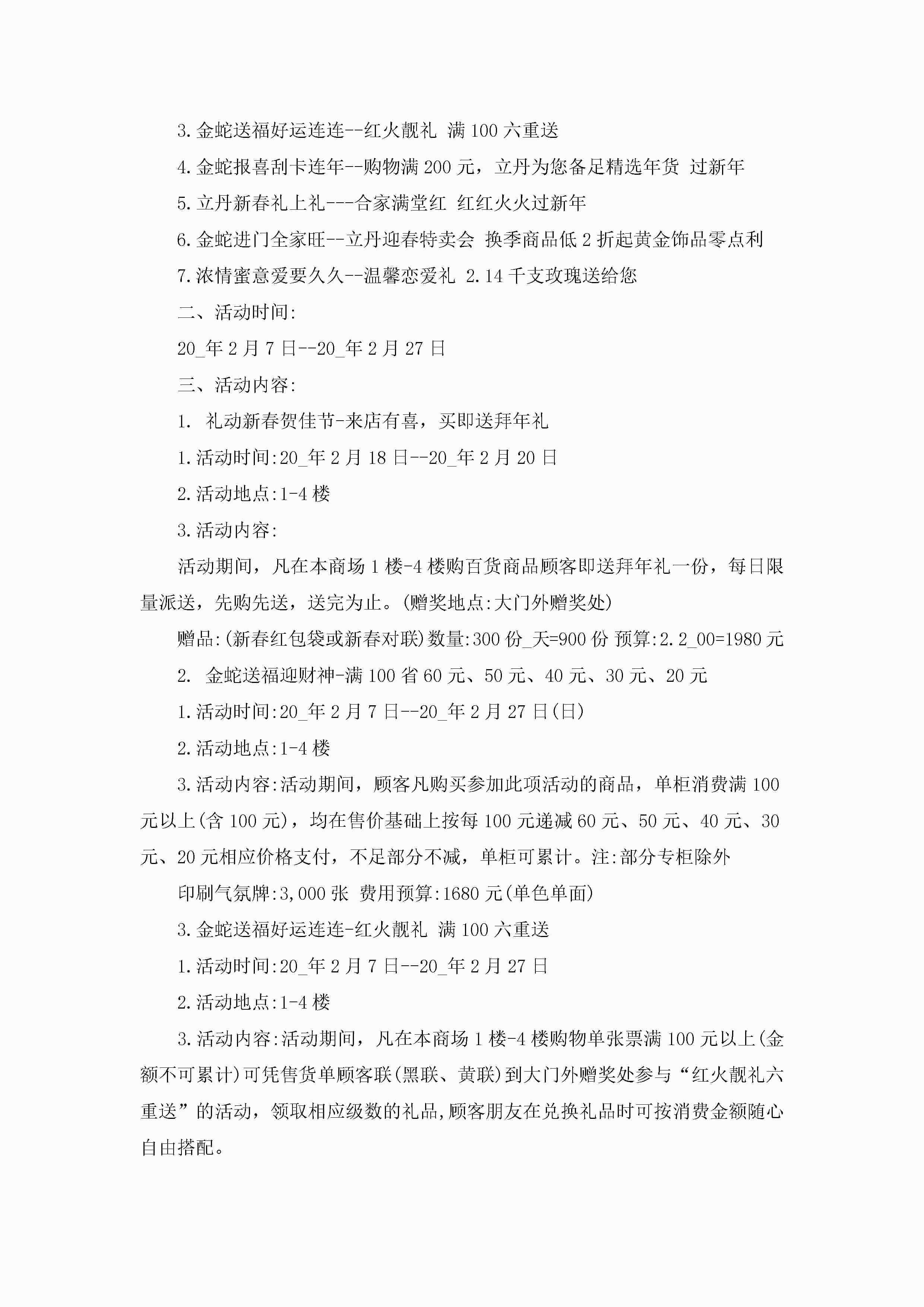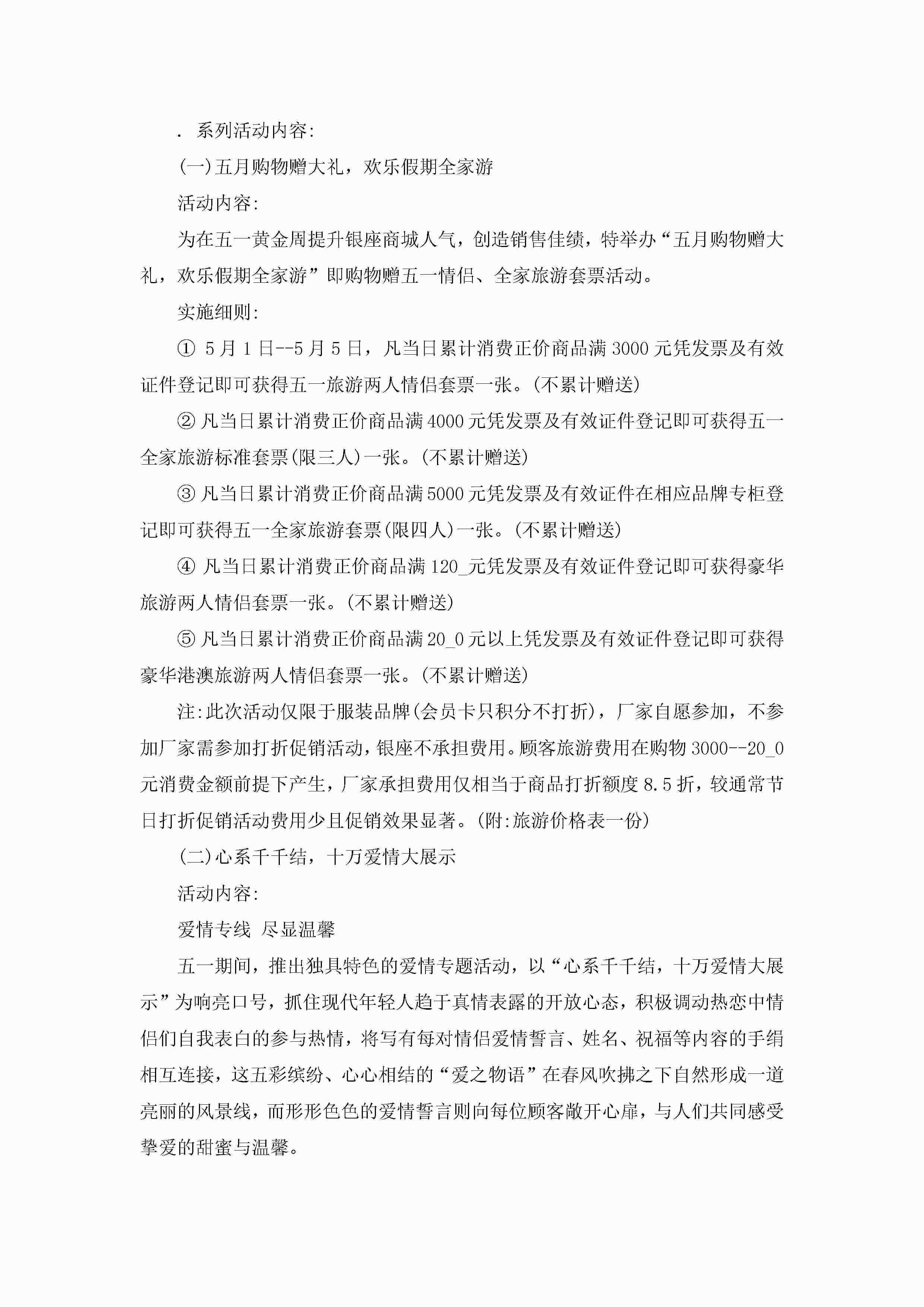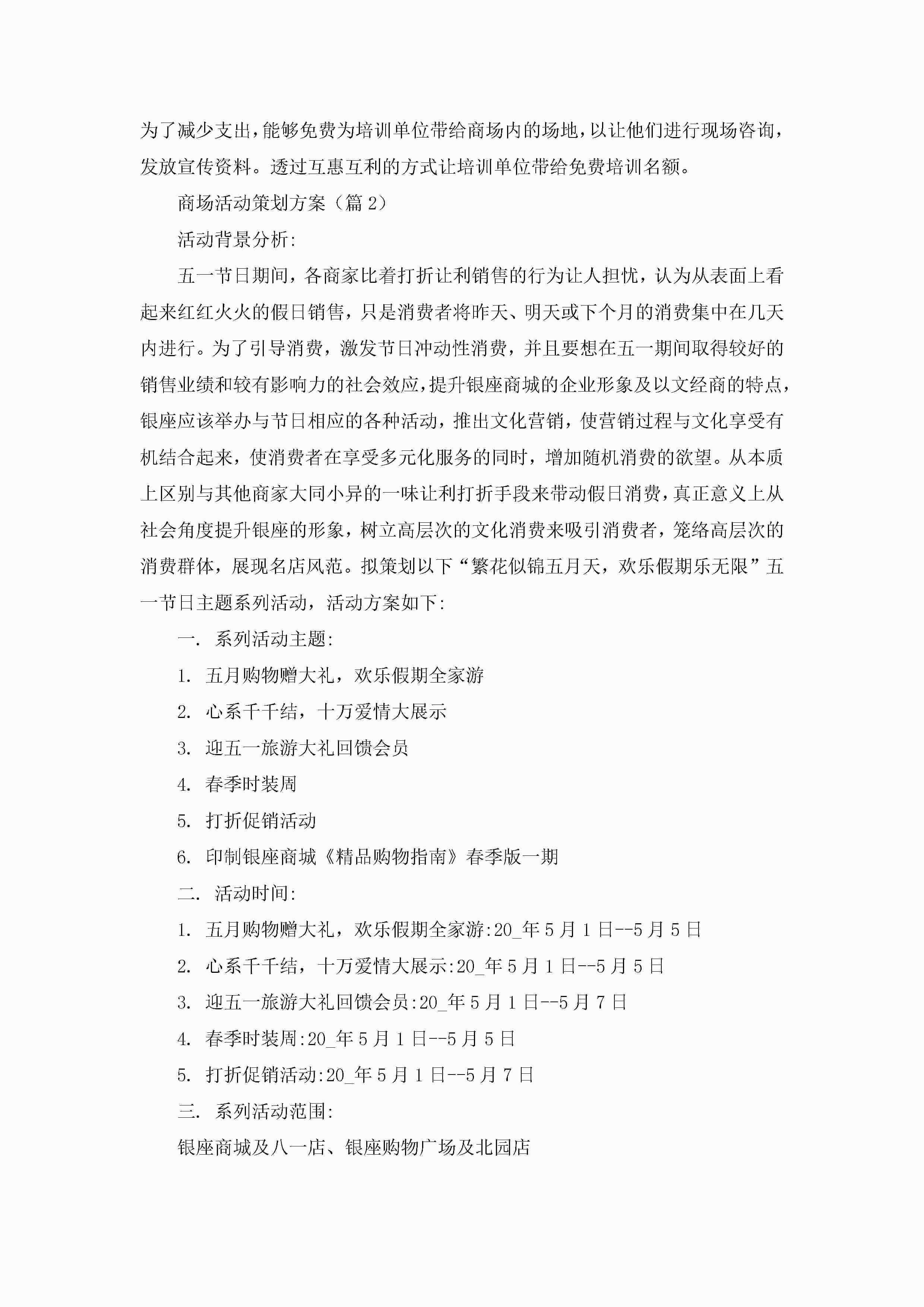 商场活动策划方案5篇jugei3月23日 01:49发布关注199 商场活动策划方案5篇此内容为付费资源,请付费后查看¥10.9 单篇文档限时特惠¥15个人会员开通企业会员开通立即下载无需登陆!可直接快捷下载单个模板付费资源© 版权声明THE ENDWord模板# 实用文档# 策划书# 工作文档# 策划方案 如有问题,可点击最底部“联系我们”联系客服 分享QQ空间微博QQ好友海报分享复制链接收藏