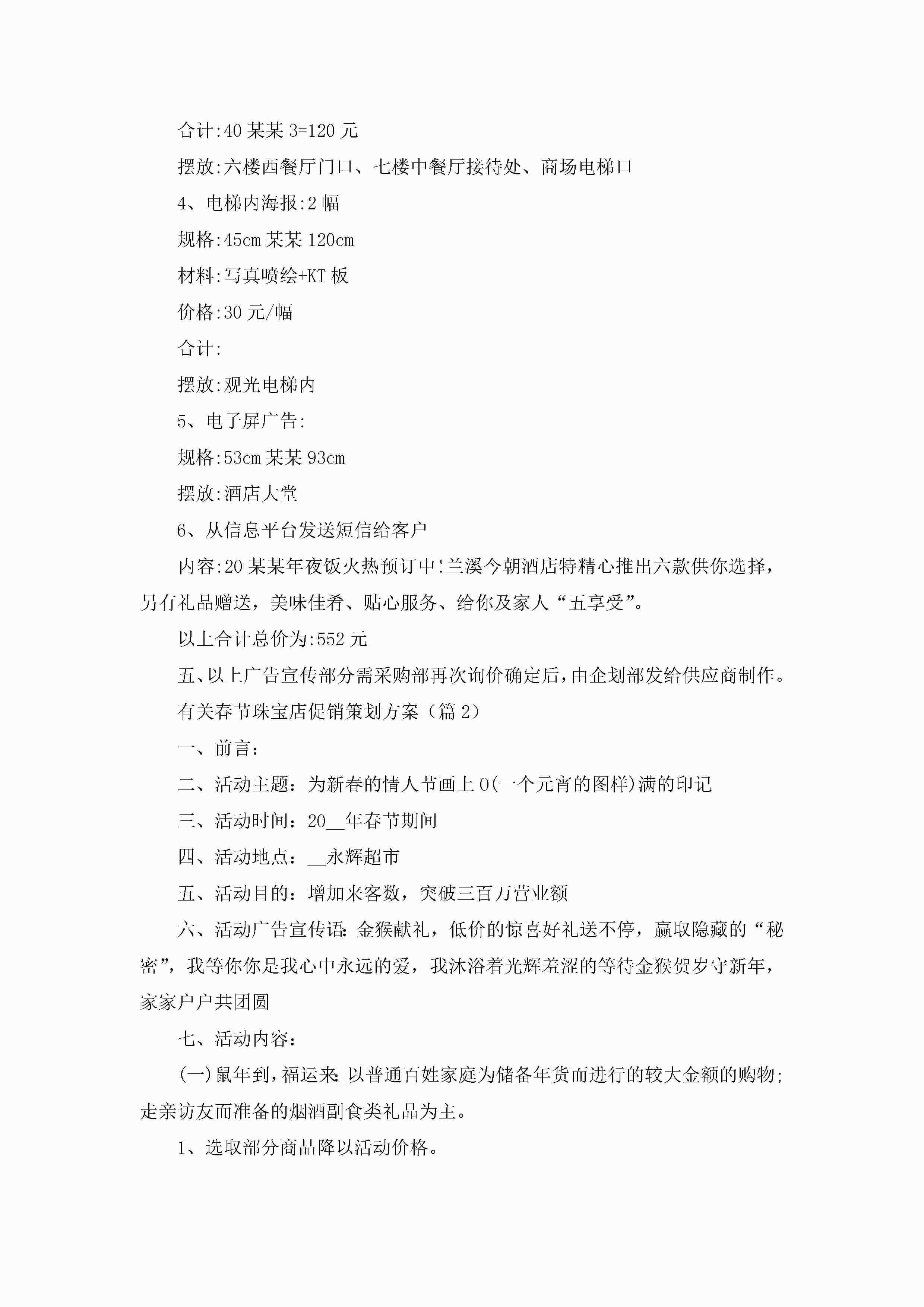 有关春节珠宝店促销策划方案3篇jugei3月23日 01:49发布关注201 有关春节珠宝店促销策划方案3篇此内容为付费资源,请付费后查看¥10.9 单篇文档限时特惠¥15个人会员开通企业会员开通立即下载无需登陆!可直接快捷下载单个模板付费资源© 版权声明THE ENDWord模板# 实用文档# 策划书# 工作文档# 策划方案 如有问题,可点击最底部“联系我们”联系客服 分享QQ空间微博QQ好友海报分享复制链接收藏