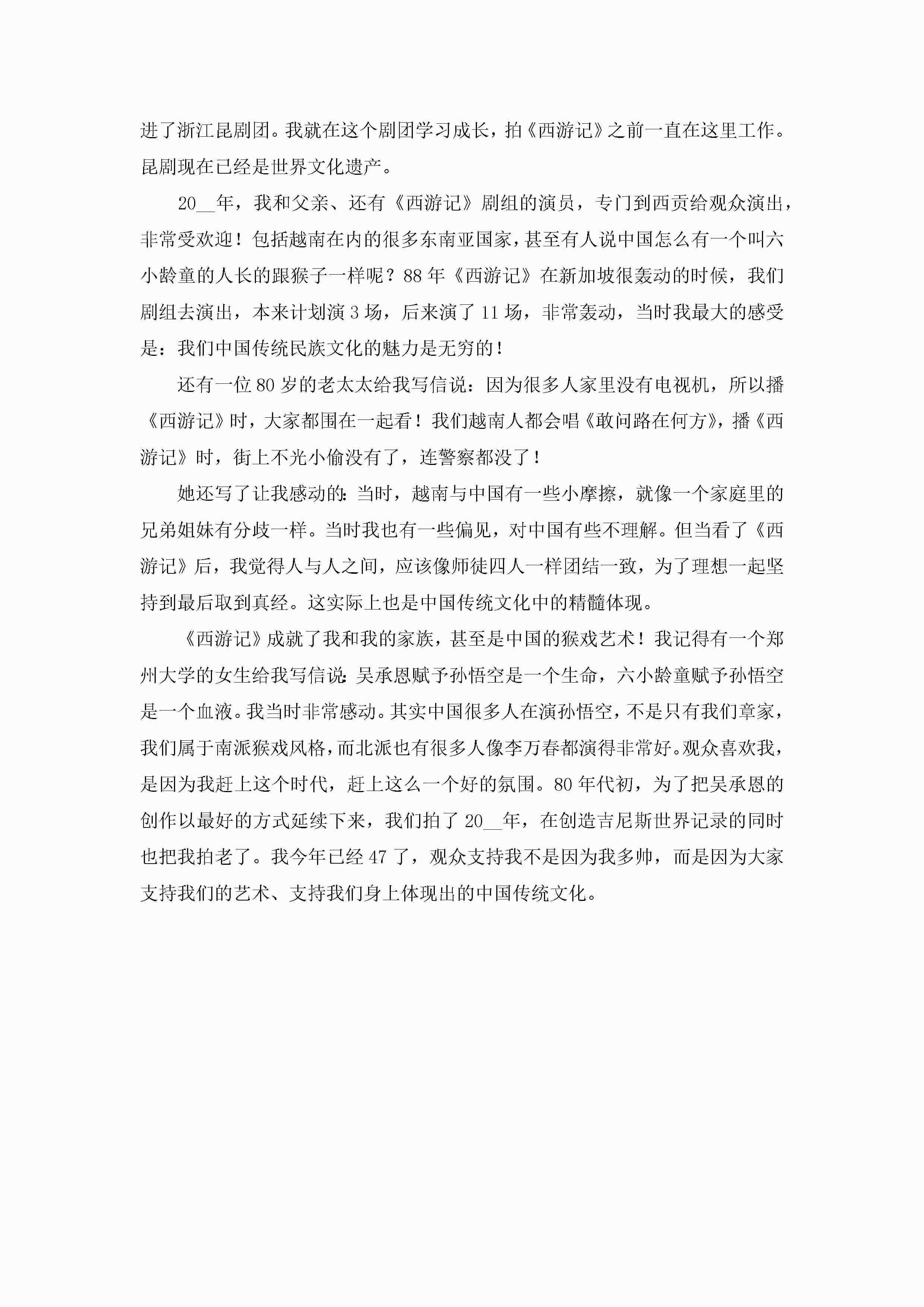 传承传统文化主题演讲稿5篇jugei3月23日 01:49发布关注200 传承传统文化主题演讲稿5篇此内容为付费资源,请付费后查看¥10.9 单篇文档限时特惠¥15个人会员开通企业会员开通立即下载无需登陆!可直接快捷下载单个模板付费资源© 版权声明THE ENDWord模板# 实用文档# 演讲稿# 经典演讲稿# 实用写作 如有问题,可点击最底部“联系我们”联系客服 分享QQ空间微博QQ好友海报分享复制链接收藏
