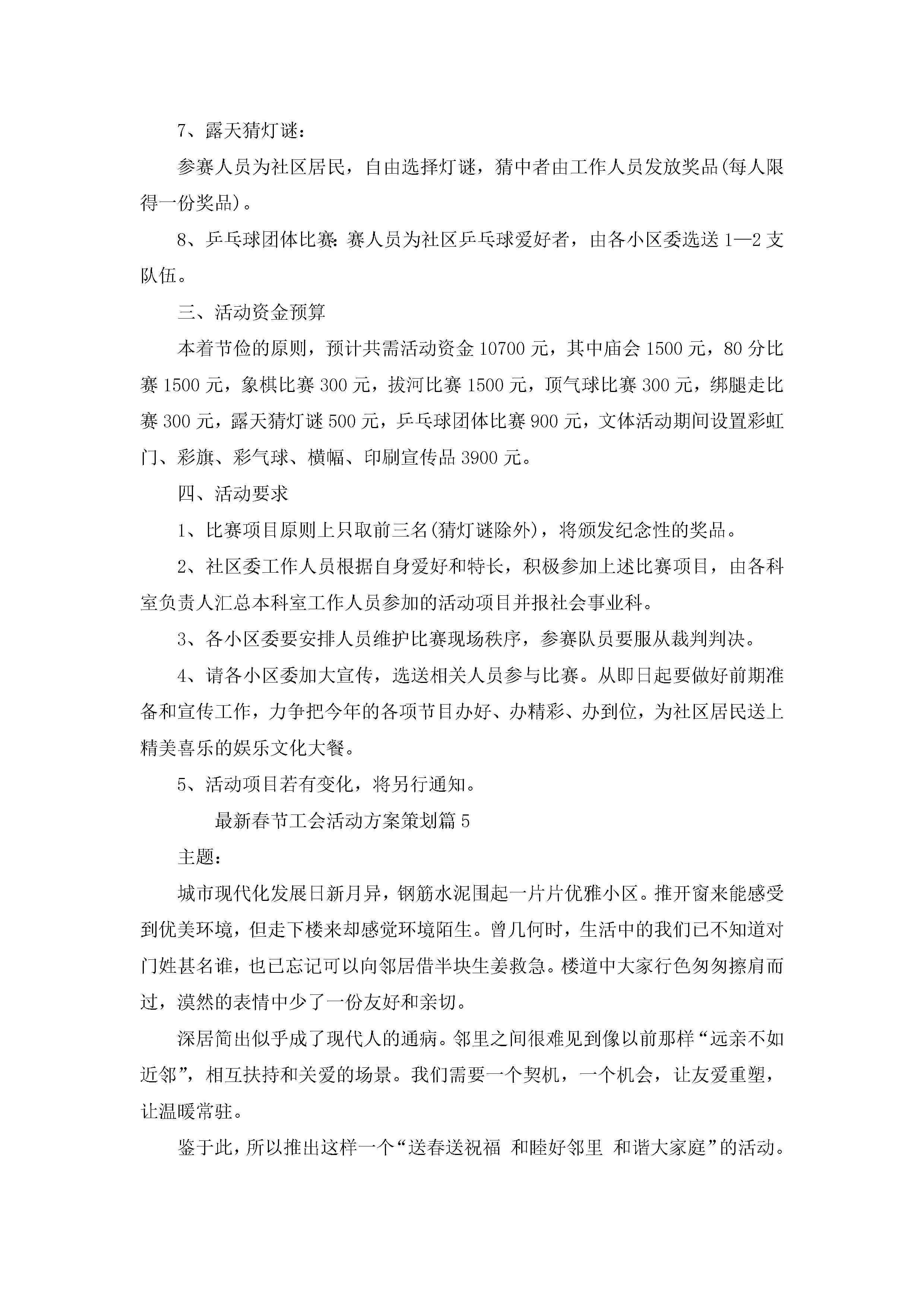 最新春节工会活动方案策划模板5篇jugei3月23日 01:49发布关注226 最新春节工会活动方案策划模板5篇此内容为付费资源,请付费后查看¥10.9 单篇文档限时特惠¥15个人会员开通企业会员开通立即下载无需登陆!可直接快捷下载单个模板付费资源© 版权声明THE ENDWord模板# 实用文档# 策划书# 策划方案# 春节工会活动方案策划 如有问题,可点击最底部“联系我们”联系客服 分享QQ空间微博QQ好友海报分享复制链接收藏