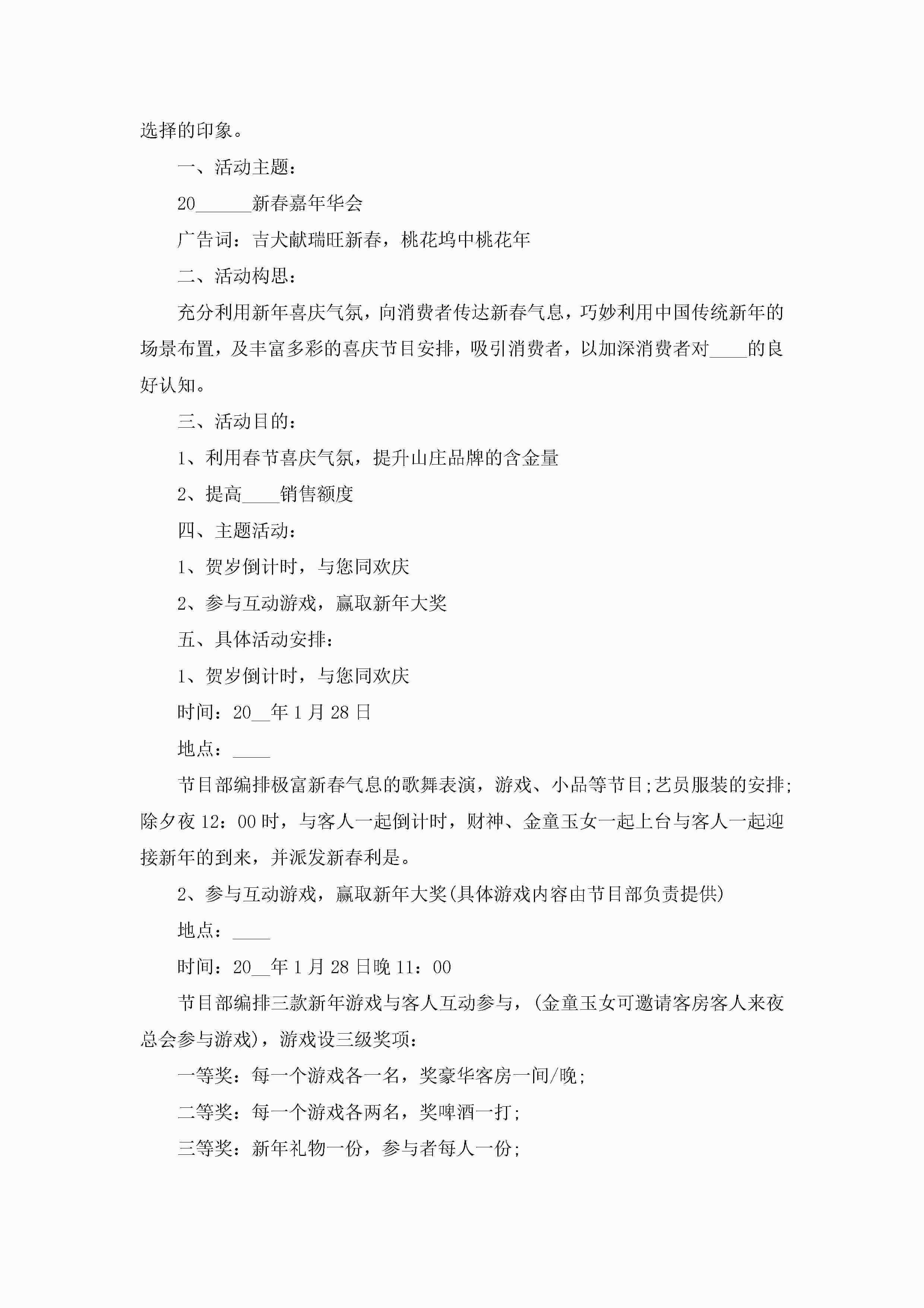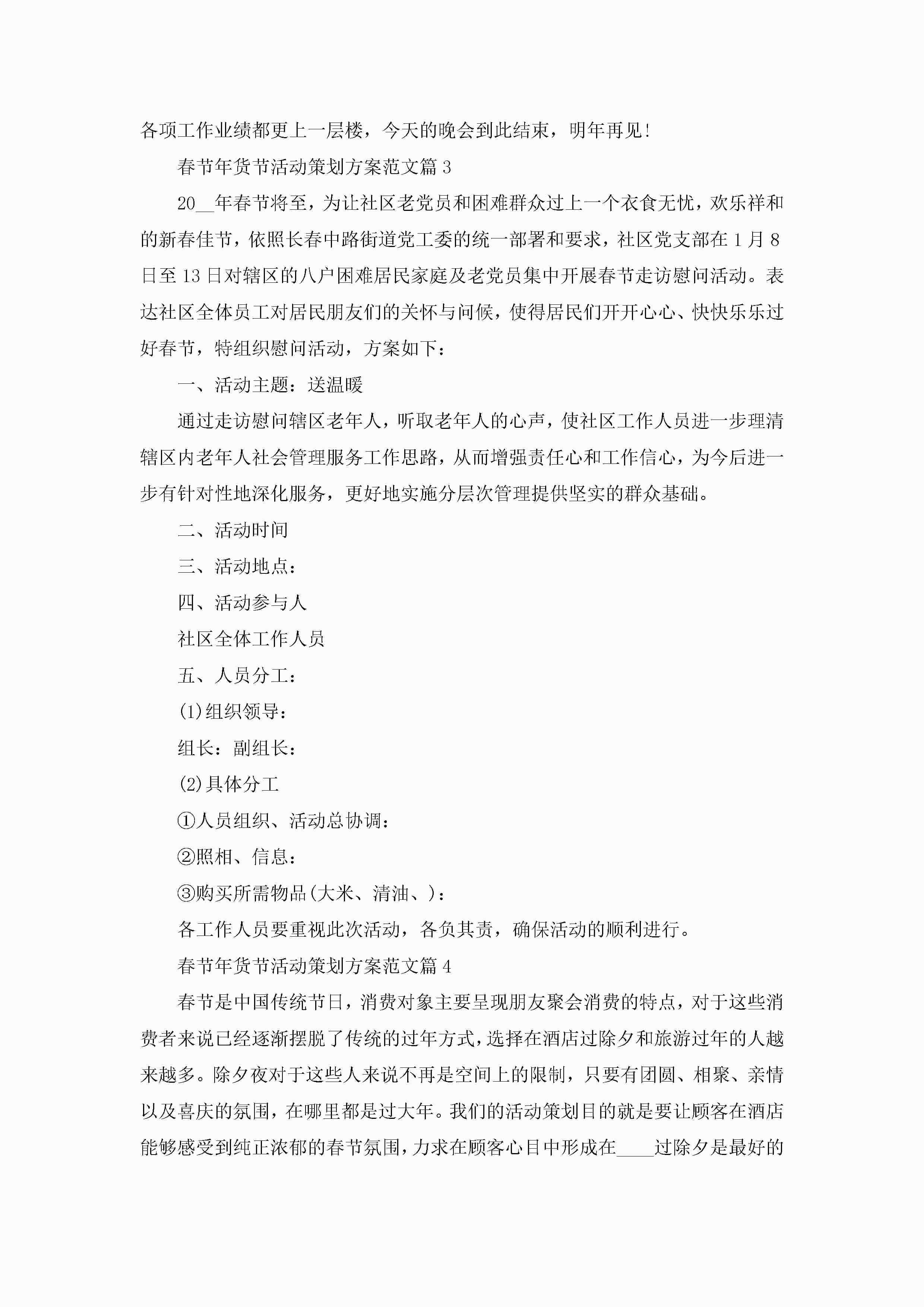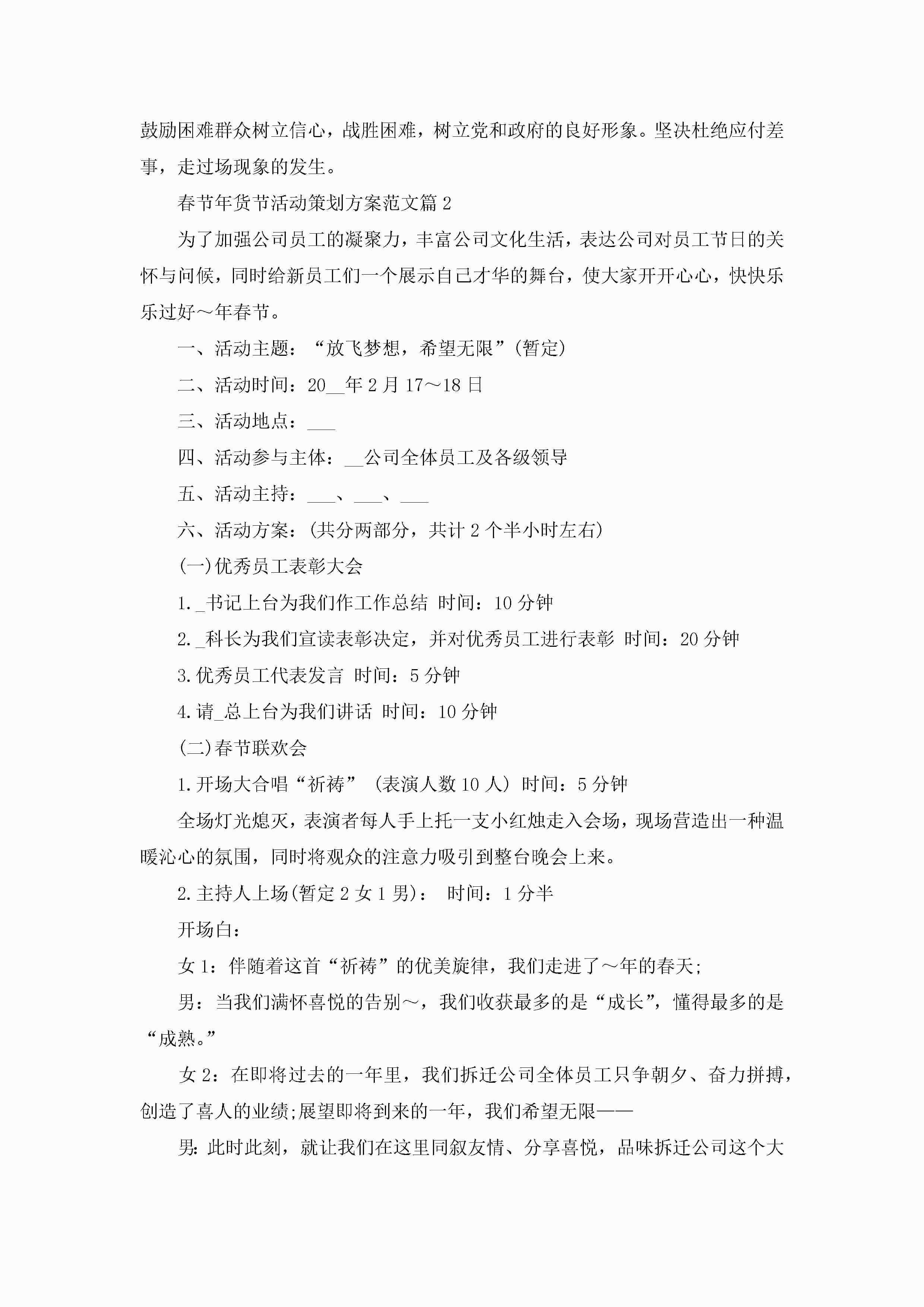 关于春节年货节活动策划方案范文5篇jugei3月23日 01:49发布关注437 关于春节年货节活动策划方案范文5篇此内容为付费资源,请付费后查看¥10.9 单篇文档限时特惠¥15个人会员开通企业会员开通立即下载无需登陆!可直接快捷下载单个模板付费资源© 版权声明THE ENDWord模板# 实用文档# 策划书# 工作文档# 策划方案# 春节年货节活动策划方案 如有问题,可点击最底部“联系我们”联系客服 分享QQ空间微博QQ好友海报分享复制链接收藏