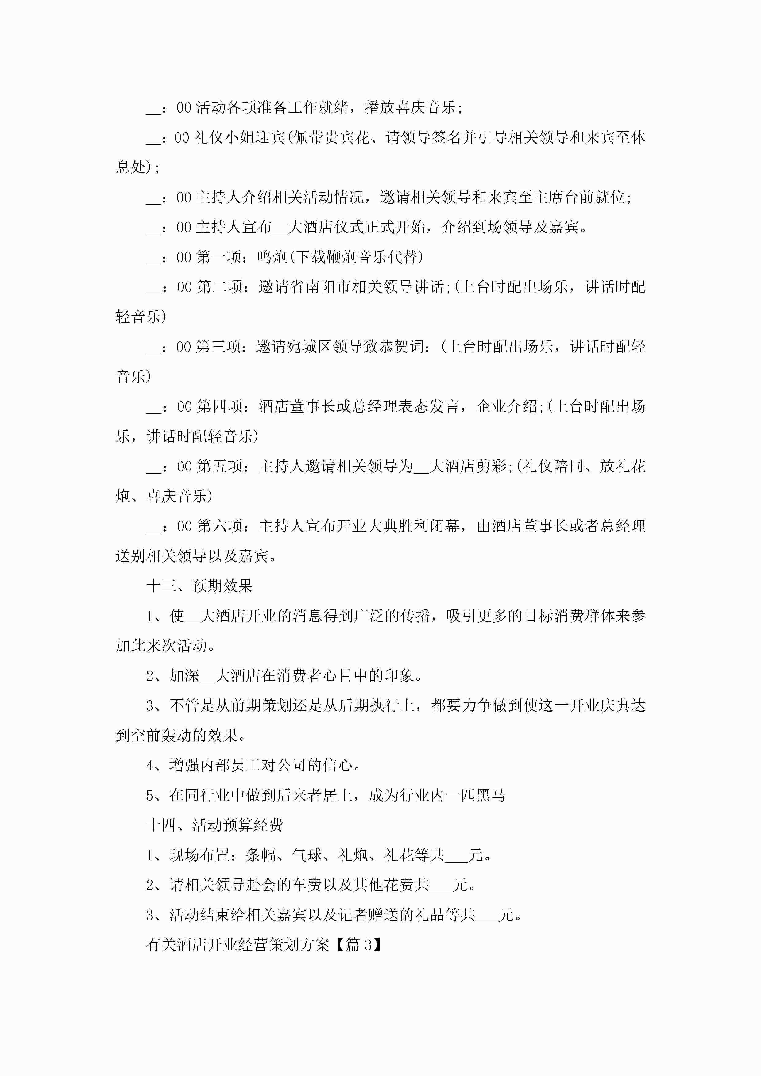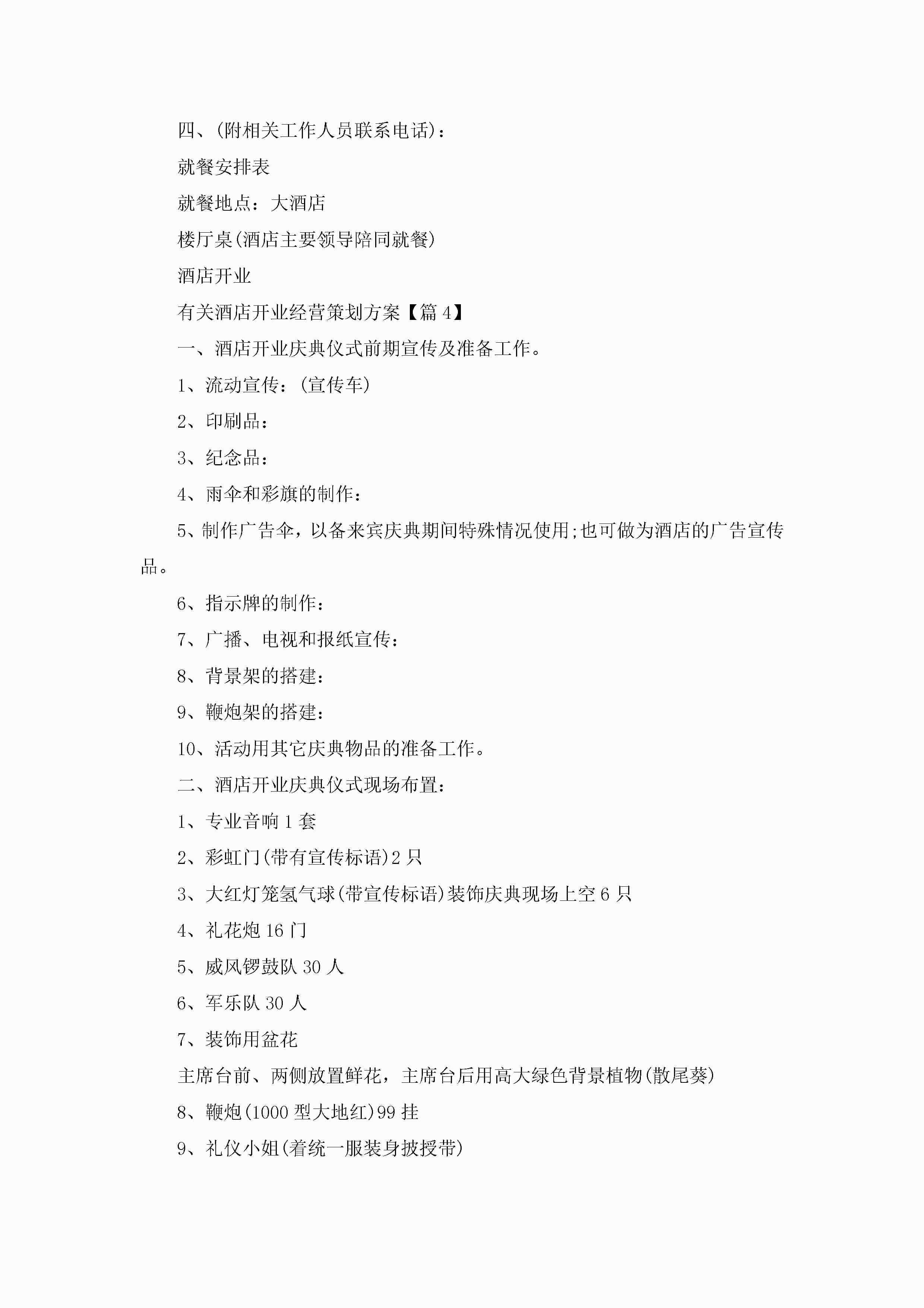 有关酒店开业经营策划方案5篇jugei3月23日 01:49发布关注210 有关酒店开业经营策划方案5篇此内容为付费资源,请付费后查看¥10.9 单篇文档限时特惠¥15个人会员开通企业会员开通立即下载无需登陆!可直接快捷下载单个模板付费资源© 版权声明THE ENDWord模板# 实用文档# 策划书# 策划方案# 酒店开业经营策划方案 如有问题,可点击最底部“联系我们”联系客服 分享QQ空间微博QQ好友海报分享复制链接收藏