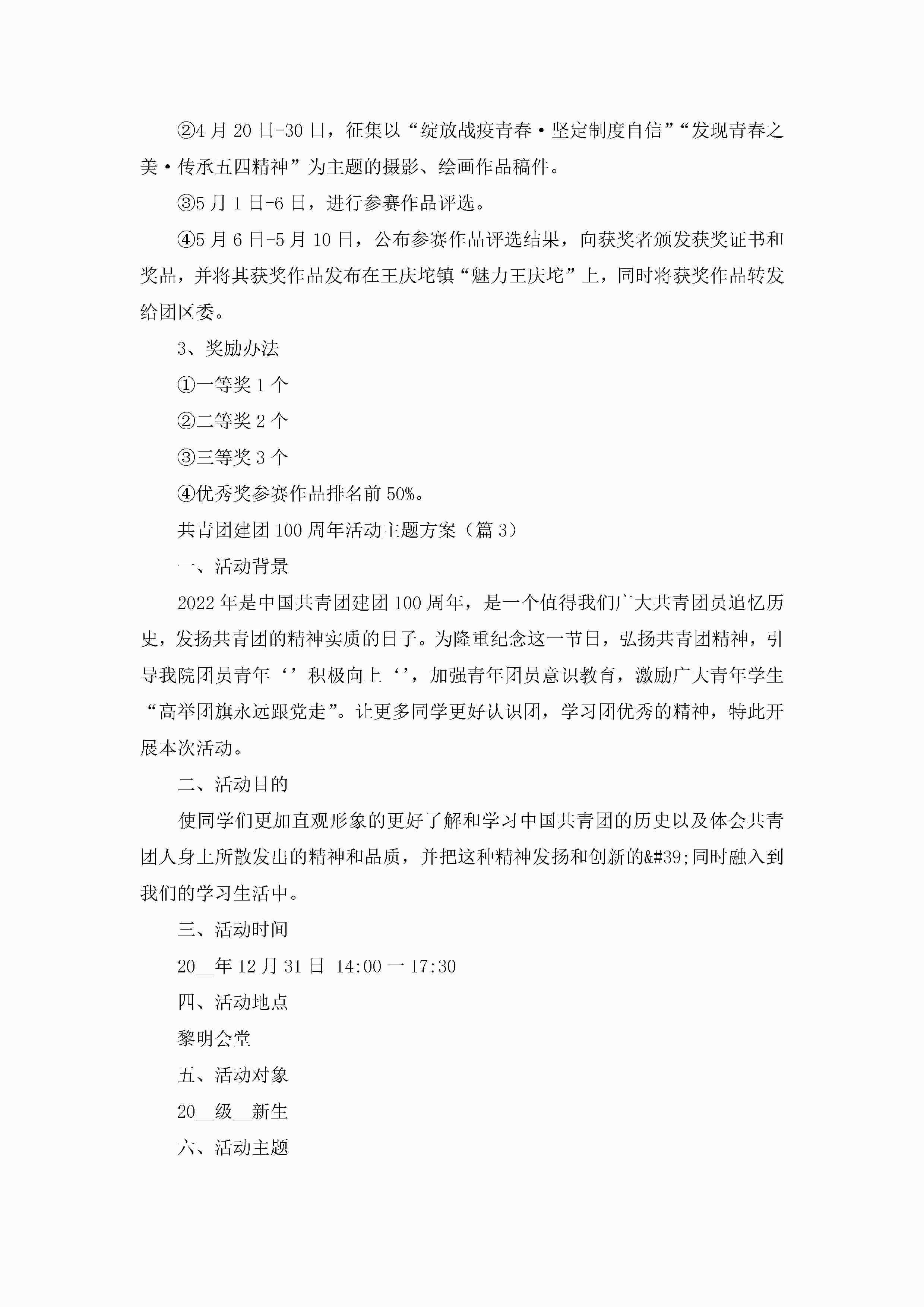 共青团建团100周年活动主题方案5篇jugei3月23日 01:49发布关注216 共青团建团100周年活动主题方案5篇此内容为付费资源,请付费后查看¥10.9 单篇文档限时特惠¥15个人会员开通企业会员开通立即下载无需登陆!可直接快捷下载单个模板付费资源© 版权声明THE ENDWord模板# 实用文档# 策划书# 工作文档# 策划方案 如有问题,可点击最底部“联系我们”联系客服 分享QQ空间微博QQ好友海报分享复制链接收藏