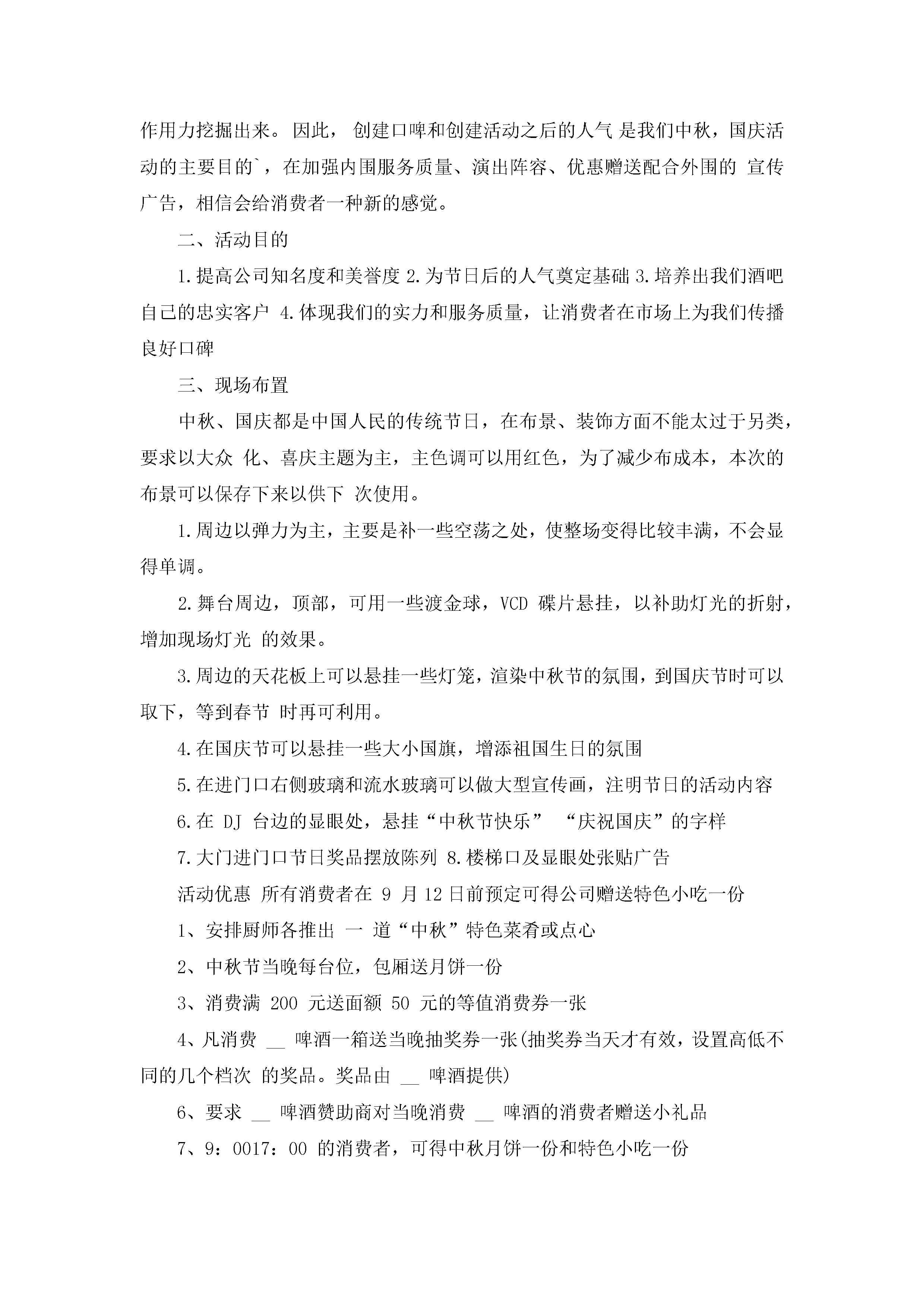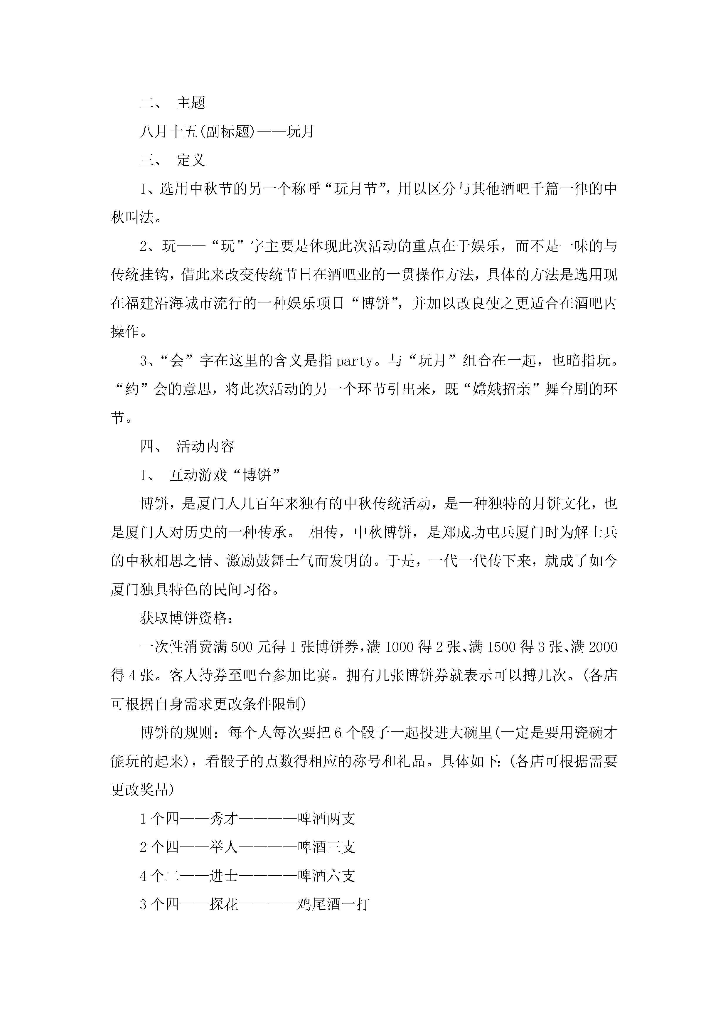 中秋节酒吧策划方案范本5篇jugei3月23日 01:49发布关注211 中秋节酒吧策划方案范本5篇此内容为付费资源,请付费后查看¥10.9 单篇文档限时特惠¥15个人会员开通企业会员开通立即下载无需登陆!可直接快捷下载单个模板付费资源© 版权声明THE ENDWord模板# 实用文档# 策划书# 策划方案# 中秋节酒吧策划方案 如有问题,可点击最底部“联系我们”联系客服 分享QQ空间微博QQ好友海报分享复制链接收藏