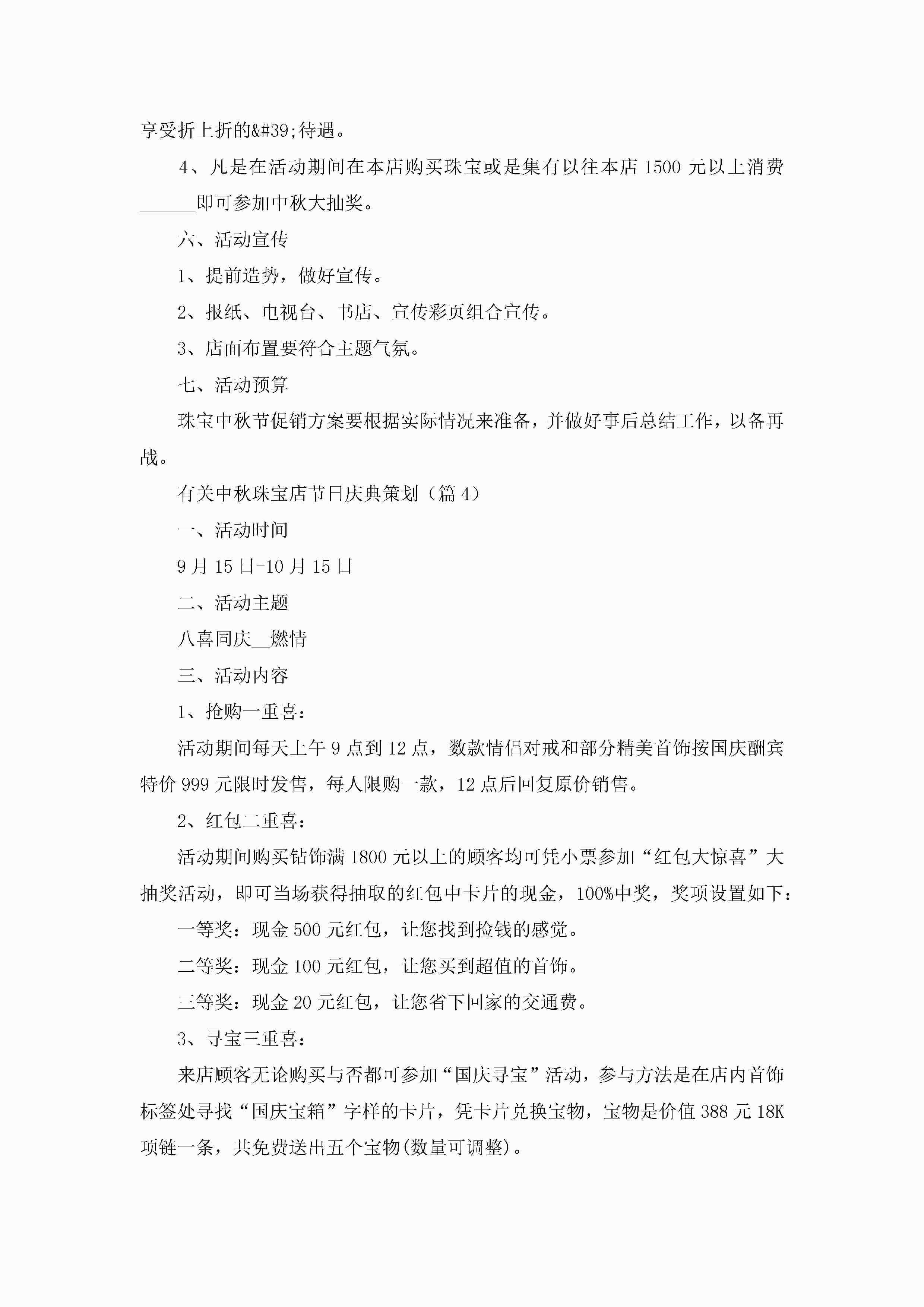 有关中秋珠宝店节日庆典策划范文5篇jugei3月23日 01:50发布关注249 有关中秋珠宝店节日庆典策划范文5篇此内容为付费资源,请付费后查看¥10.9 单篇文档限时特惠¥15个人会员开通企业会员开通立即下载无需登陆!可直接快捷下载单个模板付费资源© 版权声明THE ENDWord模板# 实用文档# 策划书# 工作文档# 策划方案 如有问题,可点击最底部“联系我们”联系客服 分享QQ空间微博QQ好友海报分享复制链接收藏