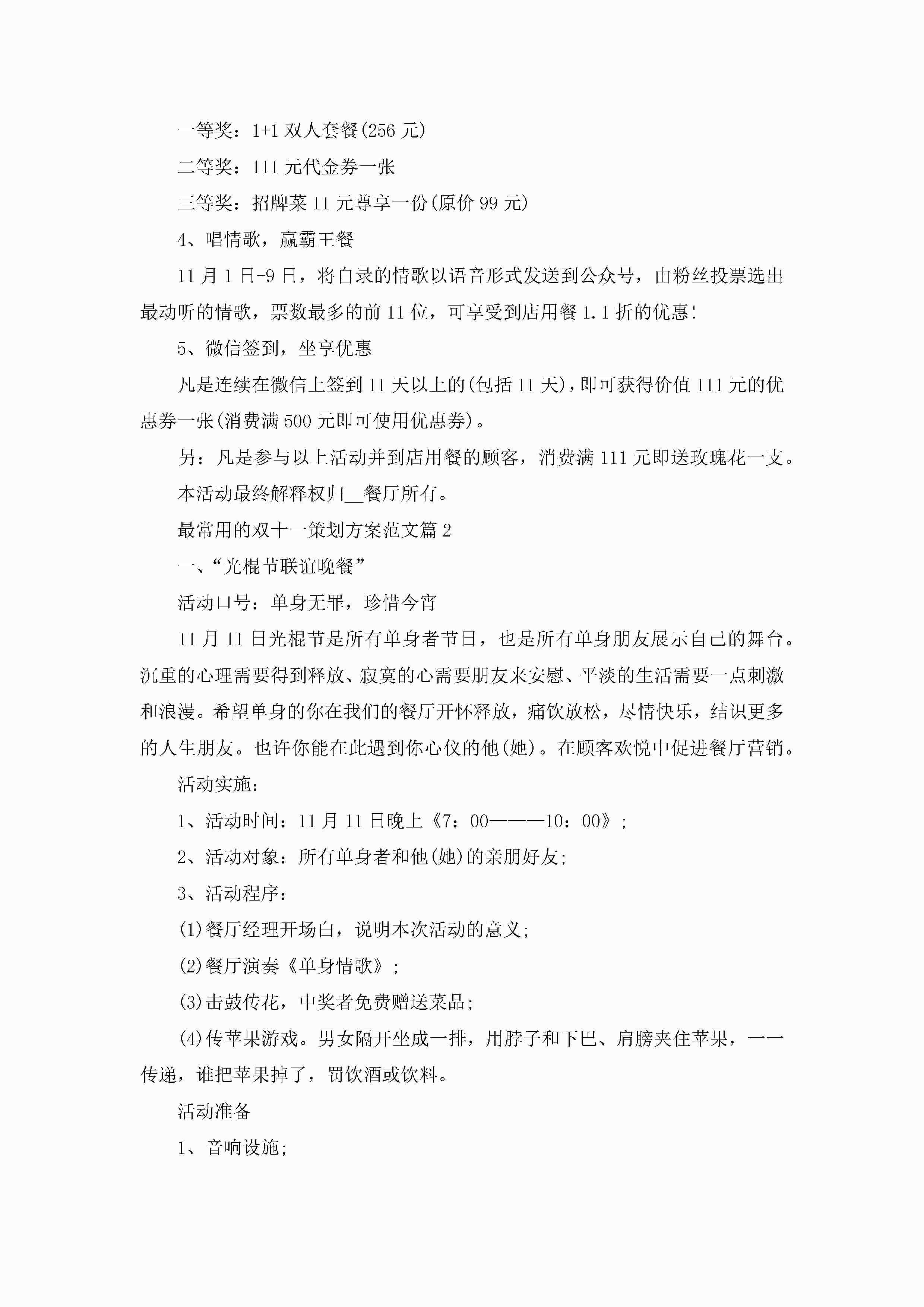 最常用的双十一策划方案范文5篇jugei3月23日 01:50发布关注198 最常用的双十一策划方案范文5篇此内容为付费资源,请付费后查看¥10.9 单篇文档限时特惠¥15个人会员开通企业会员开通立即下载无需登陆!可直接快捷下载单个模板付费资源© 版权声明THE ENDWord模板# 实用文档# 策划书# 工作文档# 策划方案 如有问题,可点击最底部“联系我们”联系客服 分享QQ空间微博QQ好友海报分享复制链接收藏