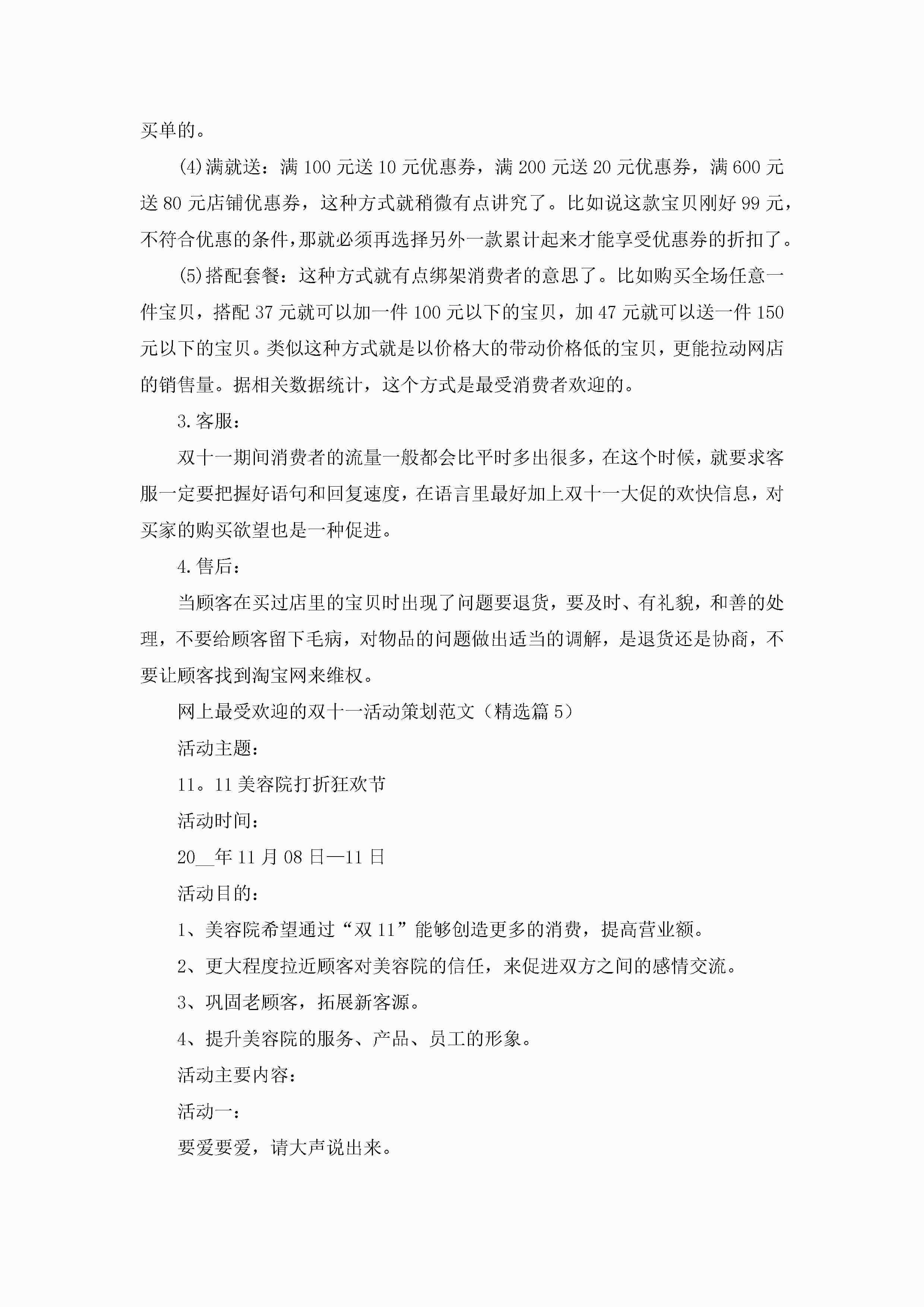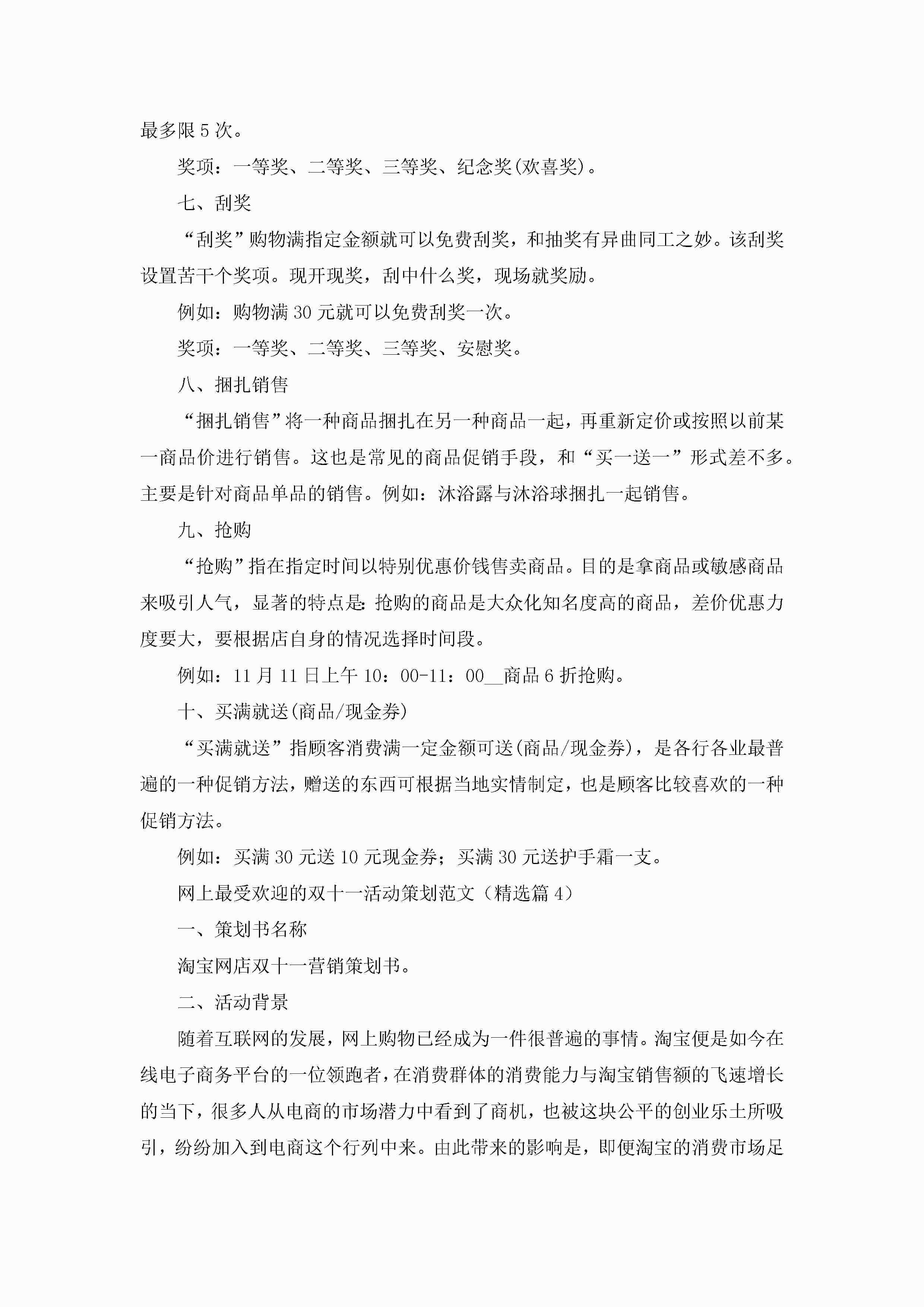 网上最受欢迎的双十一活动策划范文5篇jugei3月23日 01:50发布关注205 网上最受欢迎的双十一活动策划范文5篇此内容为付费资源,请付费后查看¥10.9 单篇文档限时特惠¥15个人会员开通企业会员开通立即下载无需登陆!可直接快捷下载单个模板付费资源© 版权声明THE ENDWord模板# 实用文档# 策划书# 工作文档# 策划方案 如有问题,可点击最底部“联系我们”联系客服 分享QQ空间微博QQ好友海报分享复制链接收藏