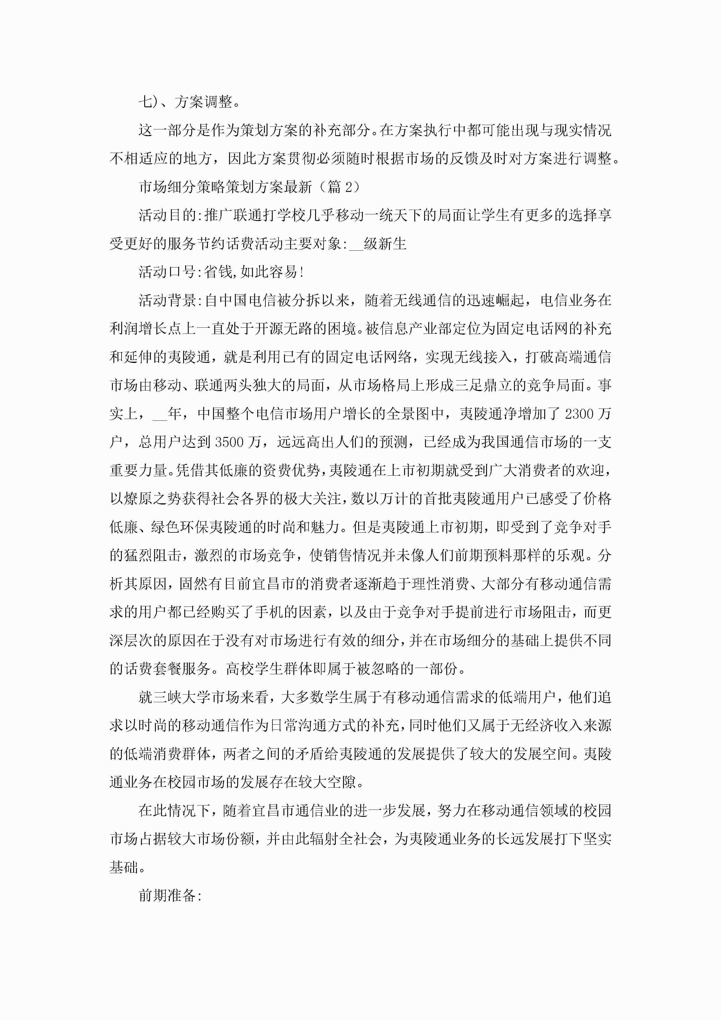 市场细分策略策划方案最新5篇jugei3月23日 01:50发布关注200 市场细分策略策划方案最新5篇此内容为付费资源,请付费后查看¥10.9 单篇文档限时特惠¥15个人会员开通企业会员开通立即下载无需登陆!可直接快捷下载单个模板付费资源© 版权声明THE ENDWord模板# 实用文档# 策划书# 工作文档# 策划方案 如有问题,可点击最底部“联系我们”联系客服 分享QQ空间微博QQ好友海报分享复制链接收藏