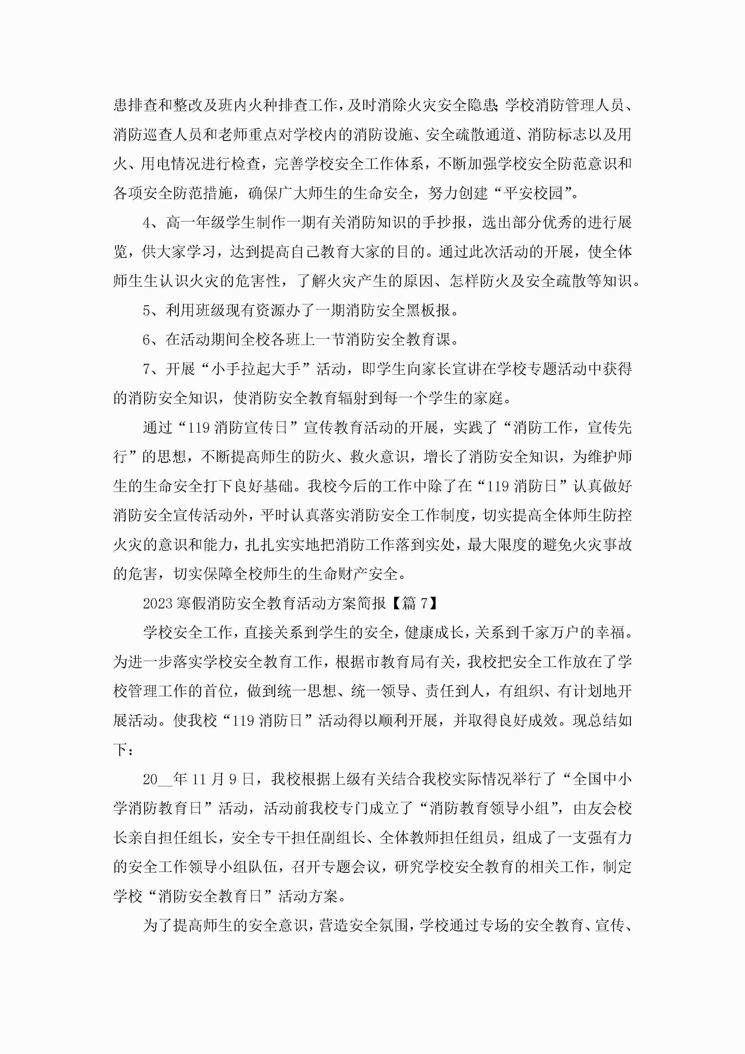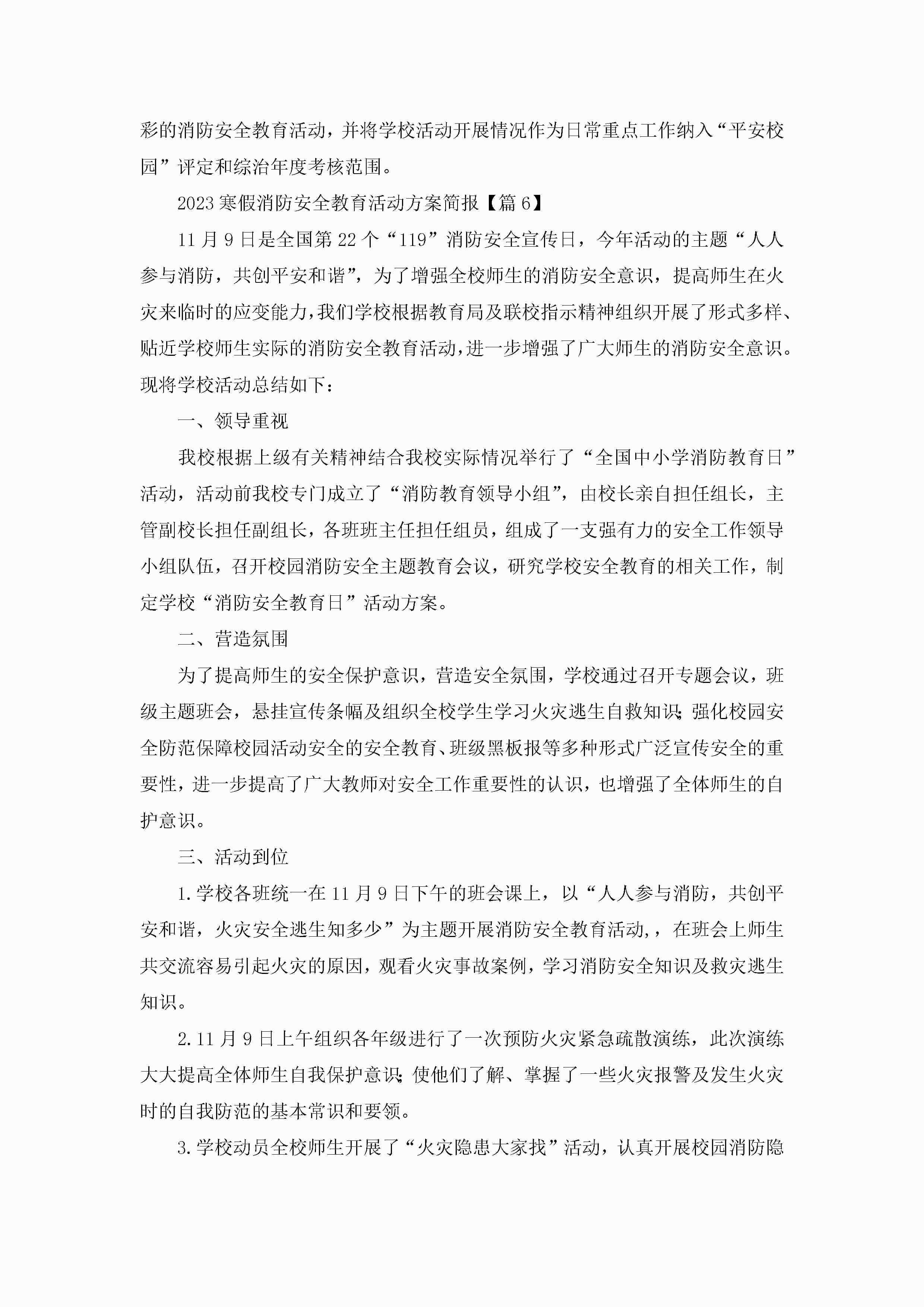 2023寒假消防安全教育活动方案简报(通用7篇)jugei3月23日 01:50发布关注206 2023寒假消防安全教育活动方案简报(通用7篇)此内容为付费资源,请付费后查看¥10.9 单篇文档限时特惠¥15个人会员开通企业会员开通立即下载无需登陆!可直接快捷下载单个模板付费资源© 版权声明THE ENDWord模板# 实用文档# 策划书# 工作文档# 策划方案 如有问题,可点击最底部“联系我们”联系客服 分享QQ空间微博QQ好友海报分享复制链接收藏