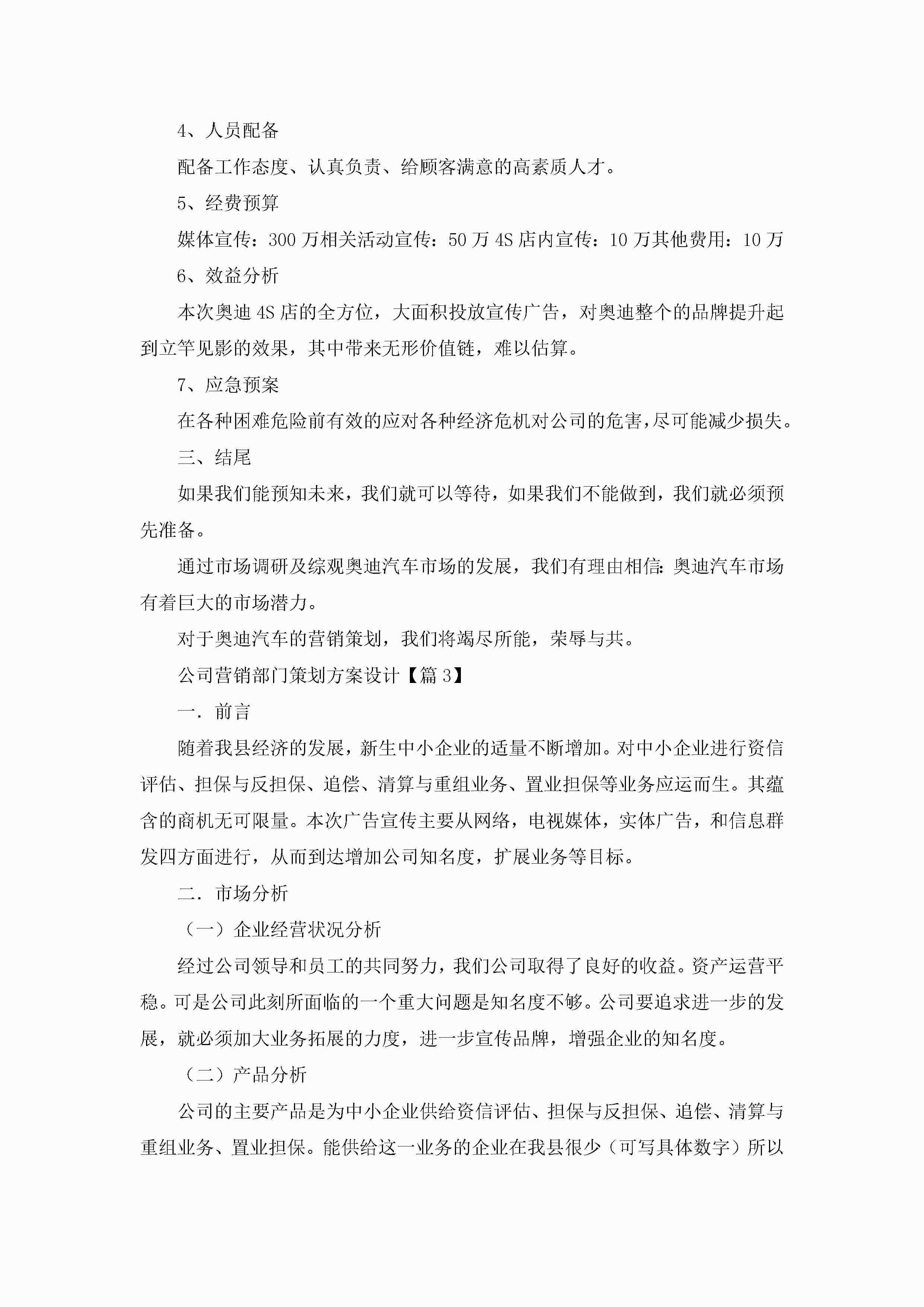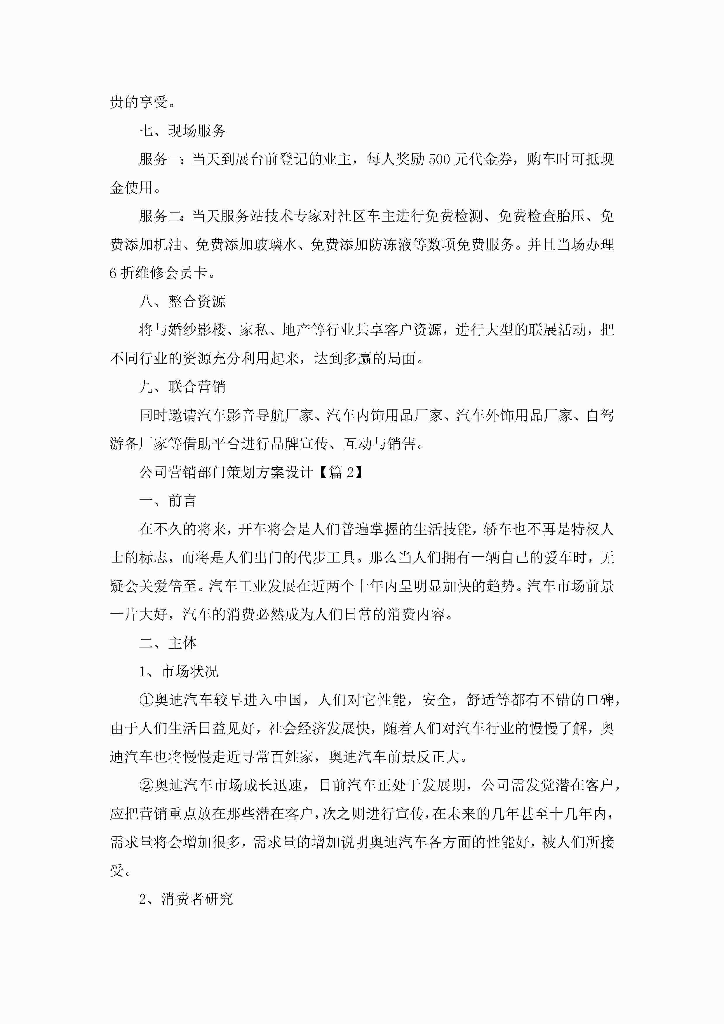 公司营销部门策划方案设计5篇jugei3月23日 01:51发布关注504 公司营销部门策划方案设计5篇此内容为付费资源,请付费后查看¥10.9 单篇文档限时特惠¥15个人会员开通企业会员开通立即下载无需登陆!可直接快捷下载单个模板付费资源© 版权声明THE ENDWord模板# 实用文档# 策划书# 工作文档# 营销策划 如有问题,可点击最底部“联系我们”联系客服 分享QQ空间微博QQ好友海报分享复制链接收藏