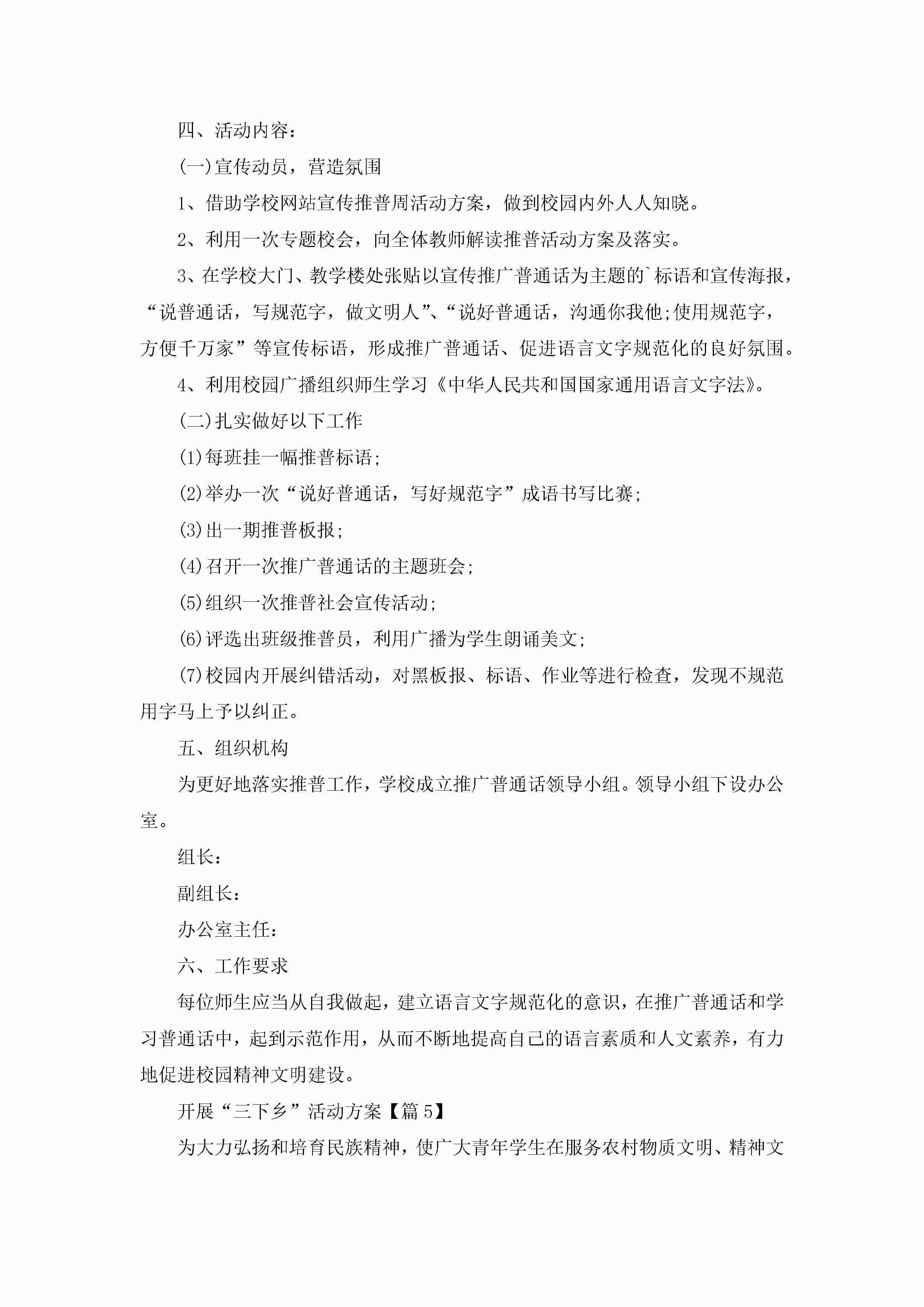 2023开展“三下乡”活动方案范文5篇jugei3月23日 01:51发布关注450 2023开展“三下乡”活动方案范文5篇此内容为付费资源,请付费后查看¥10.9 单篇文档限时特惠¥15个人会员开通企业会员开通立即下载无需登陆!可直接快捷下载单个模板付费资源© 版权声明THE ENDWord模板# 实用文档# 策划书# 工作文档# 策划方案# 开展“三下乡”活动方案 如有问题,可点击最底部“联系我们”联系客服 分享QQ空间微博QQ好友海报分享复制链接收藏